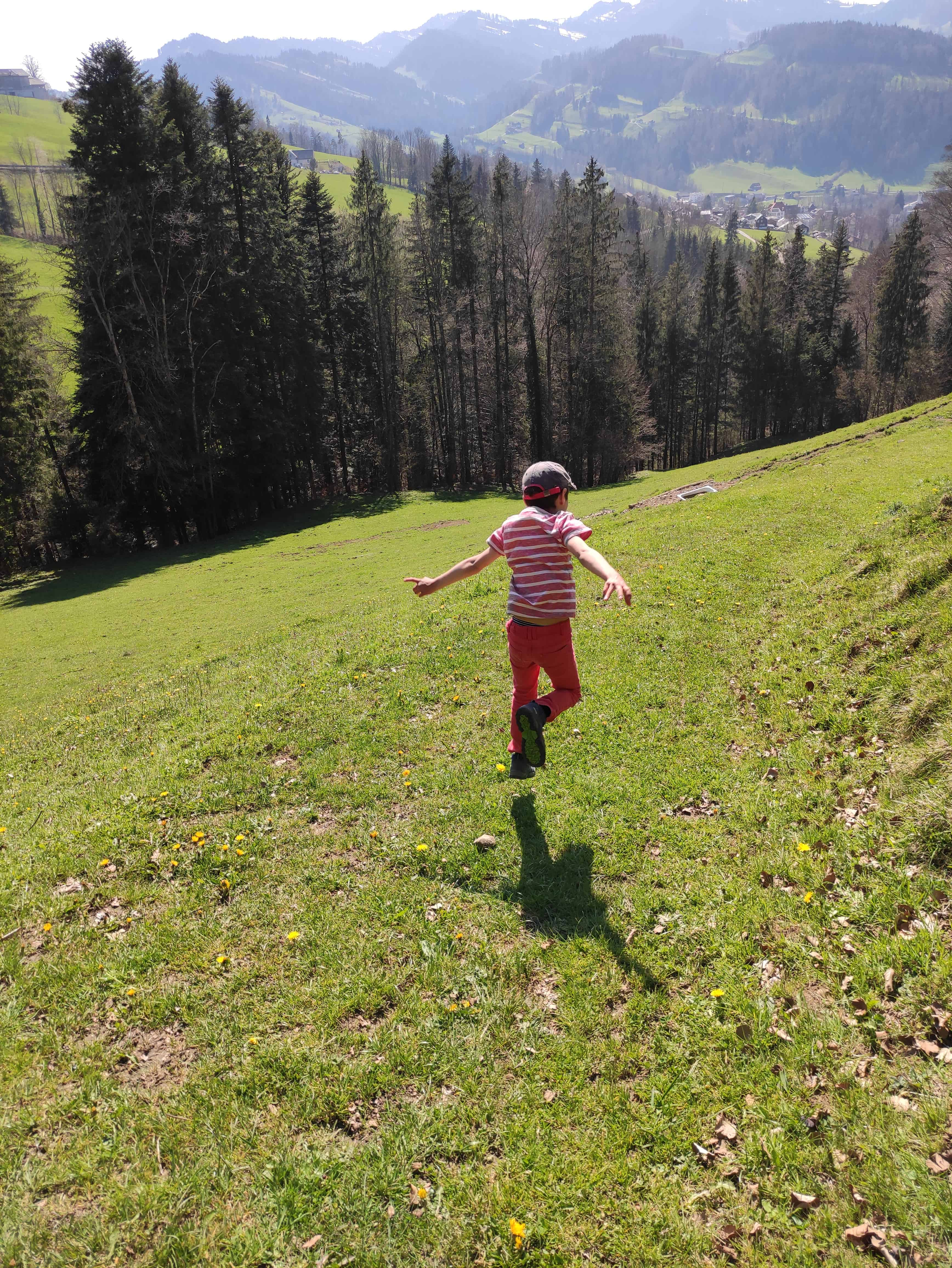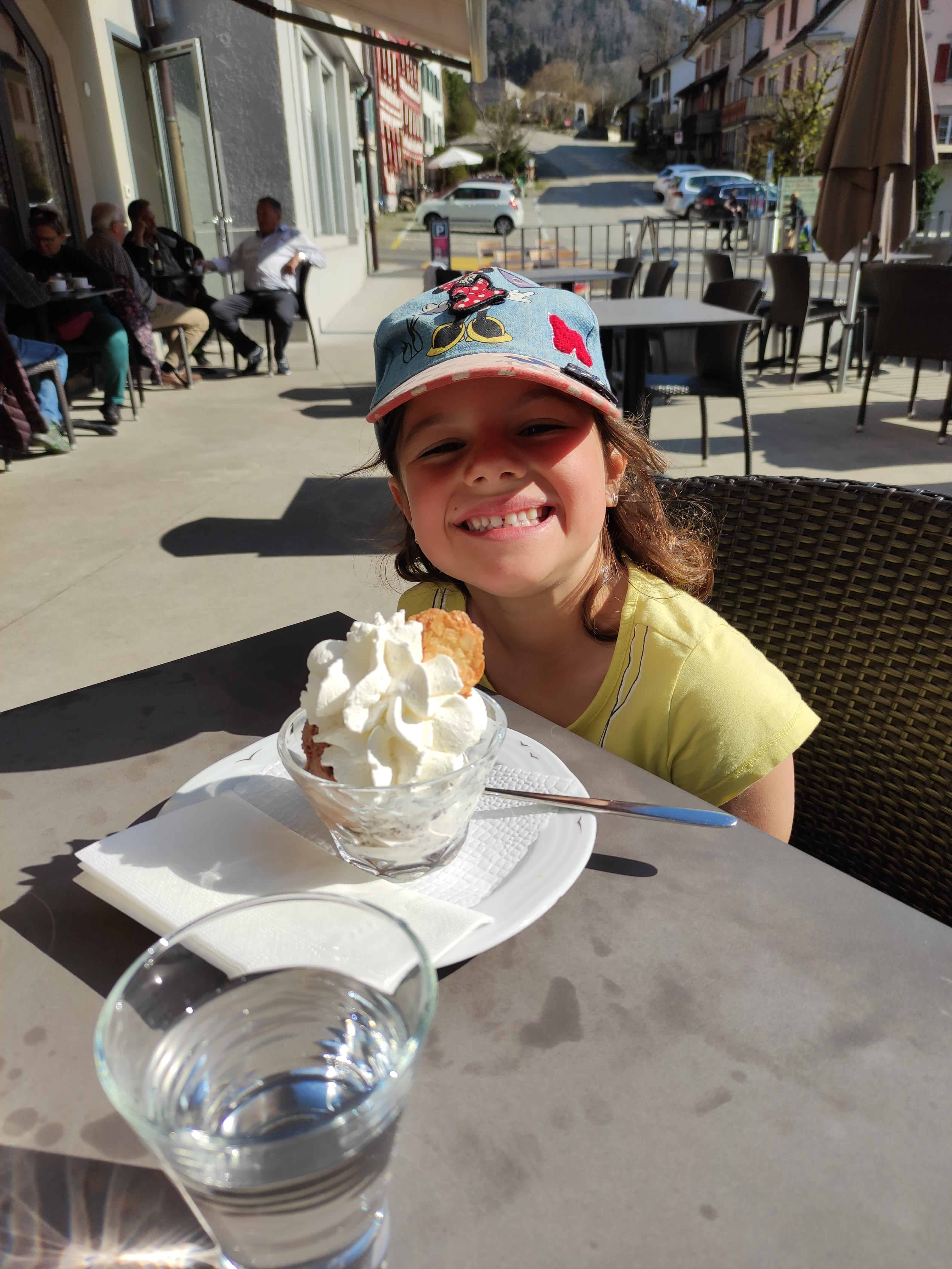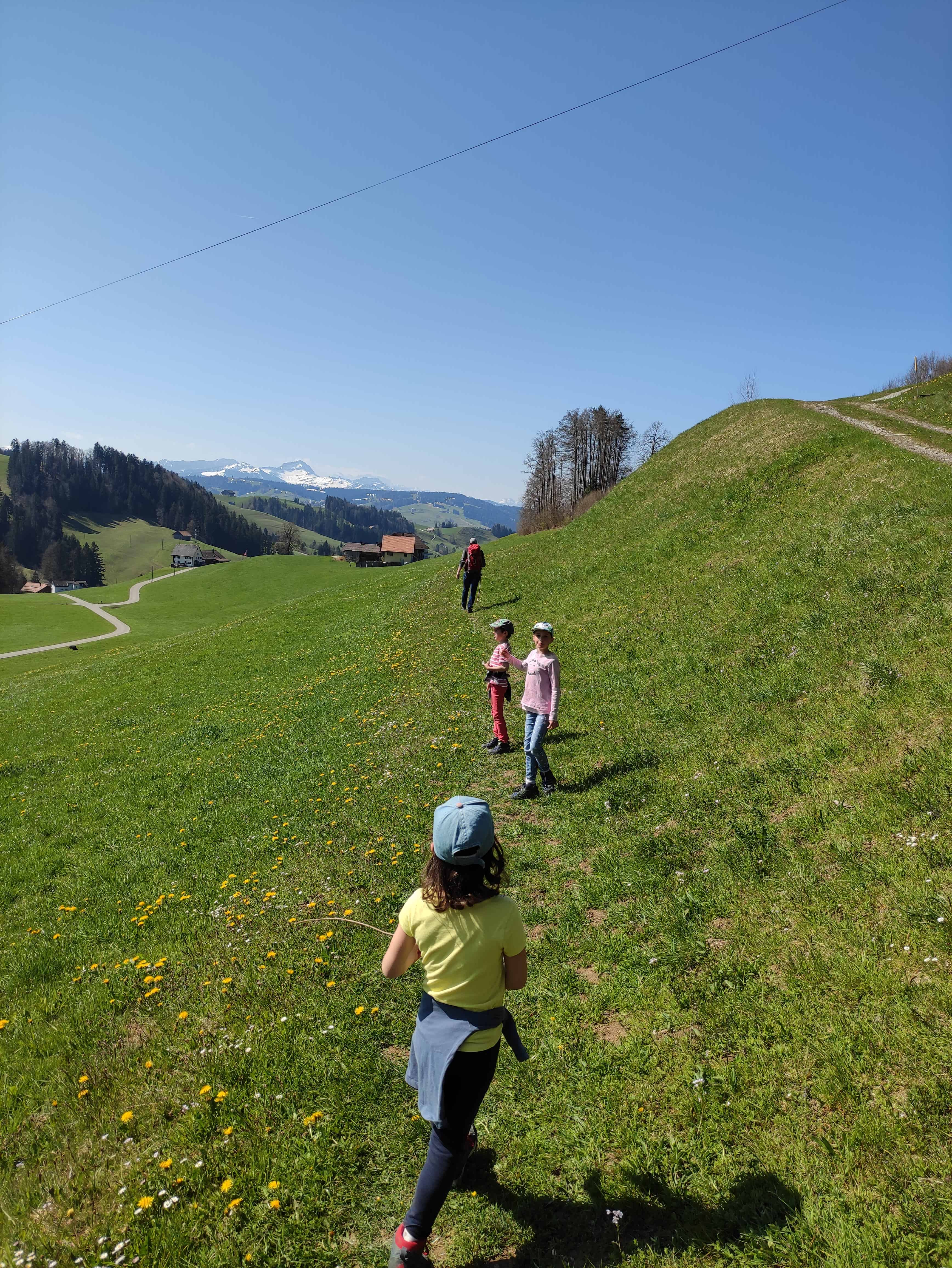Die Strecke zwischen Degersheim und Brunnadern ist extrem schön. Die Landschaft ist vielfältig, die Tour abwechslungsreich. Die Strecke führt bergaufwärts, dann wieder bergabwärt. Es geht über Berg und Tal. Die Aussicht, vor allem auf der Wilkethöchi, ist einmalig. In Brunnadern haben wir einen Zwischenstopp auf dem Spielplatz gemacht. Wir hätten die Tour an dieser Stelle bestens ab- resp. unterbrechen können. Der Wille, die gesamte Strecke zu absolvieren, war aber zu gross. So haben wir ab Brunnadern die Strecke von nochmals 5.5 km , 250 Höhenmetern aufwärts und 260 wieder runter und rund 1.5 h unter die Füsse genommen. WIR HABEN ES GESCHAFFT! Um 16.30 sind wir in Lichtensteig angekommen und haben uns eine doppelte Portion Glacé gegönnt.