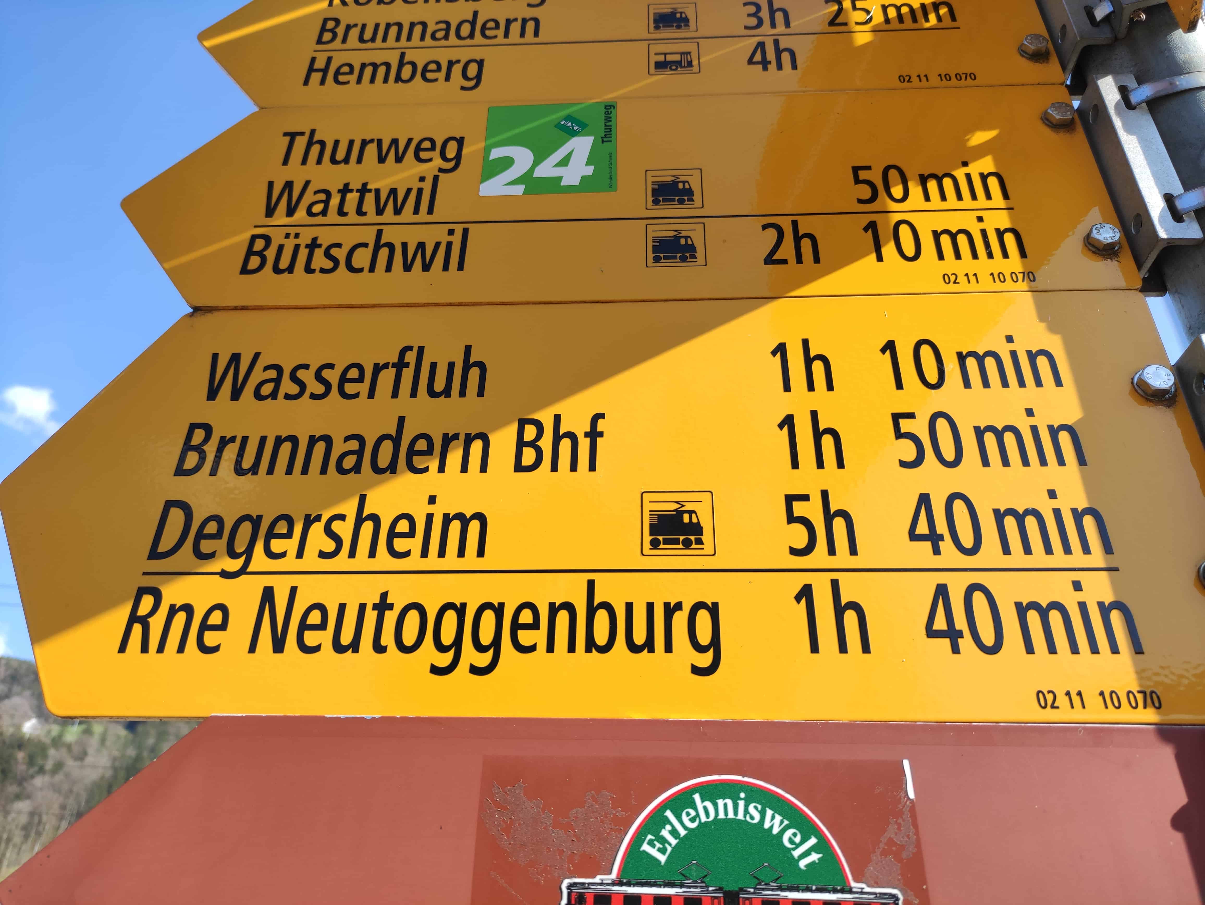 Degersheim Bhf. ab 09.15, Lichtensteig Städtli an 16.15, 7:15 Gesamtdauer