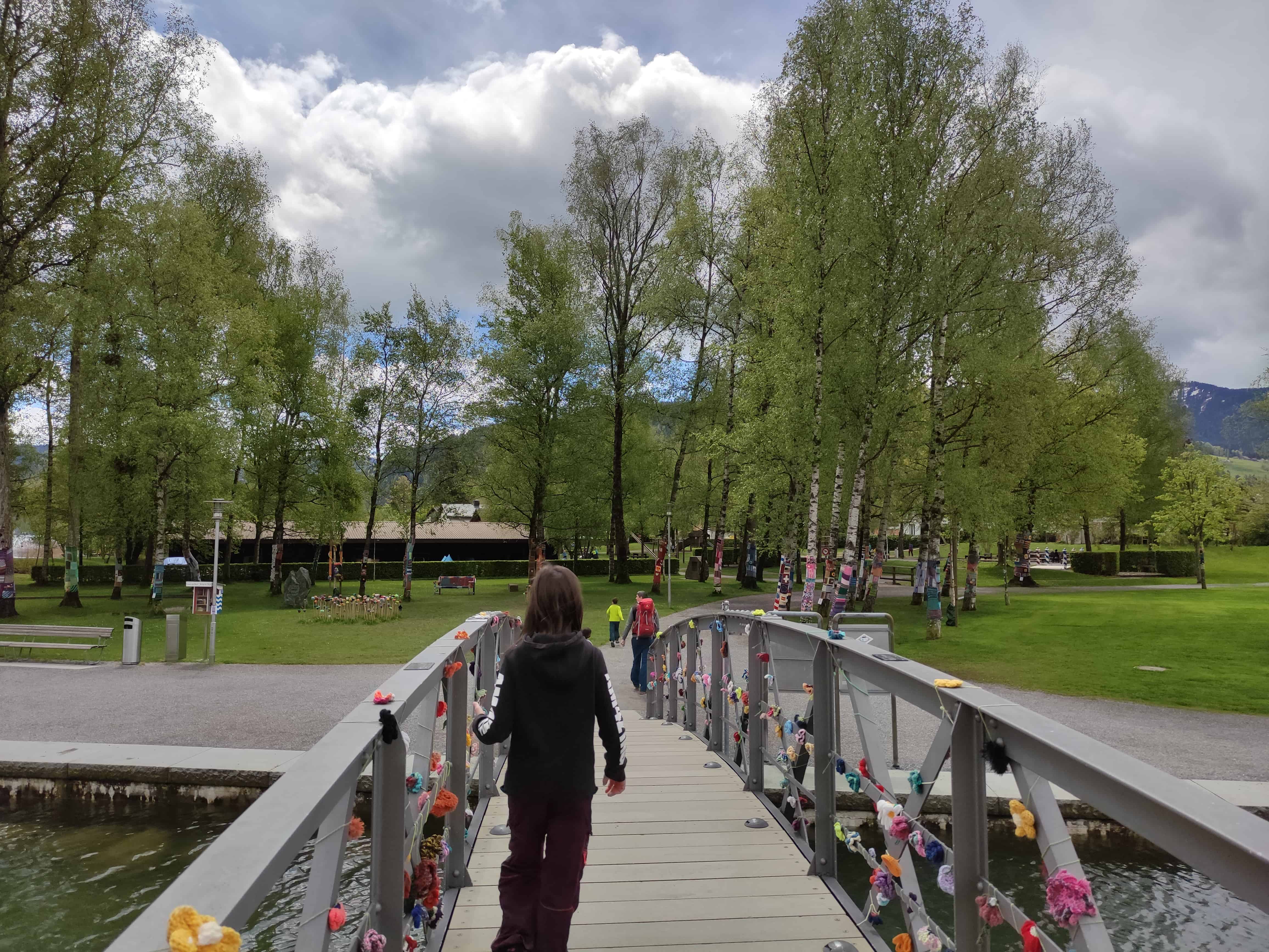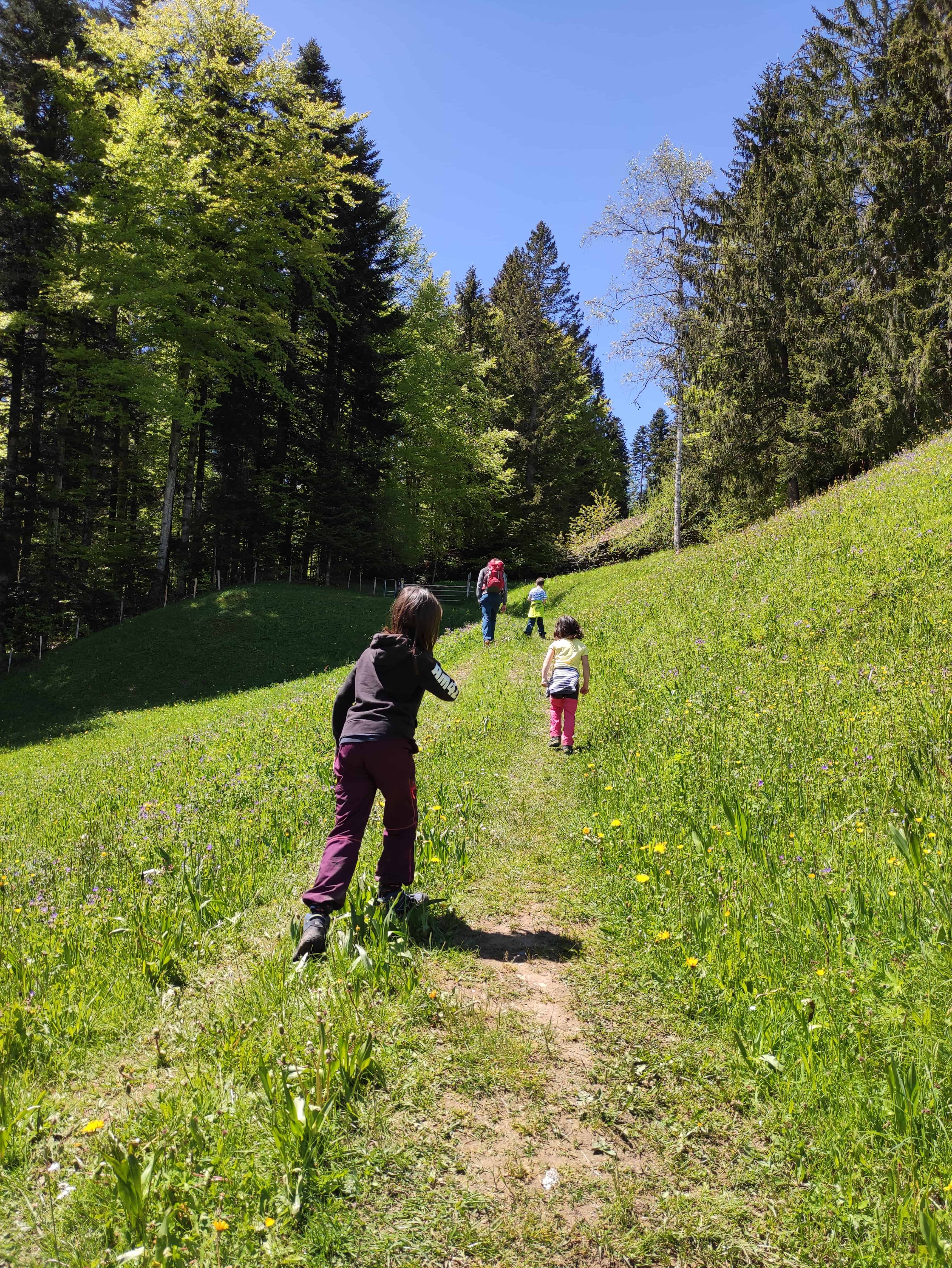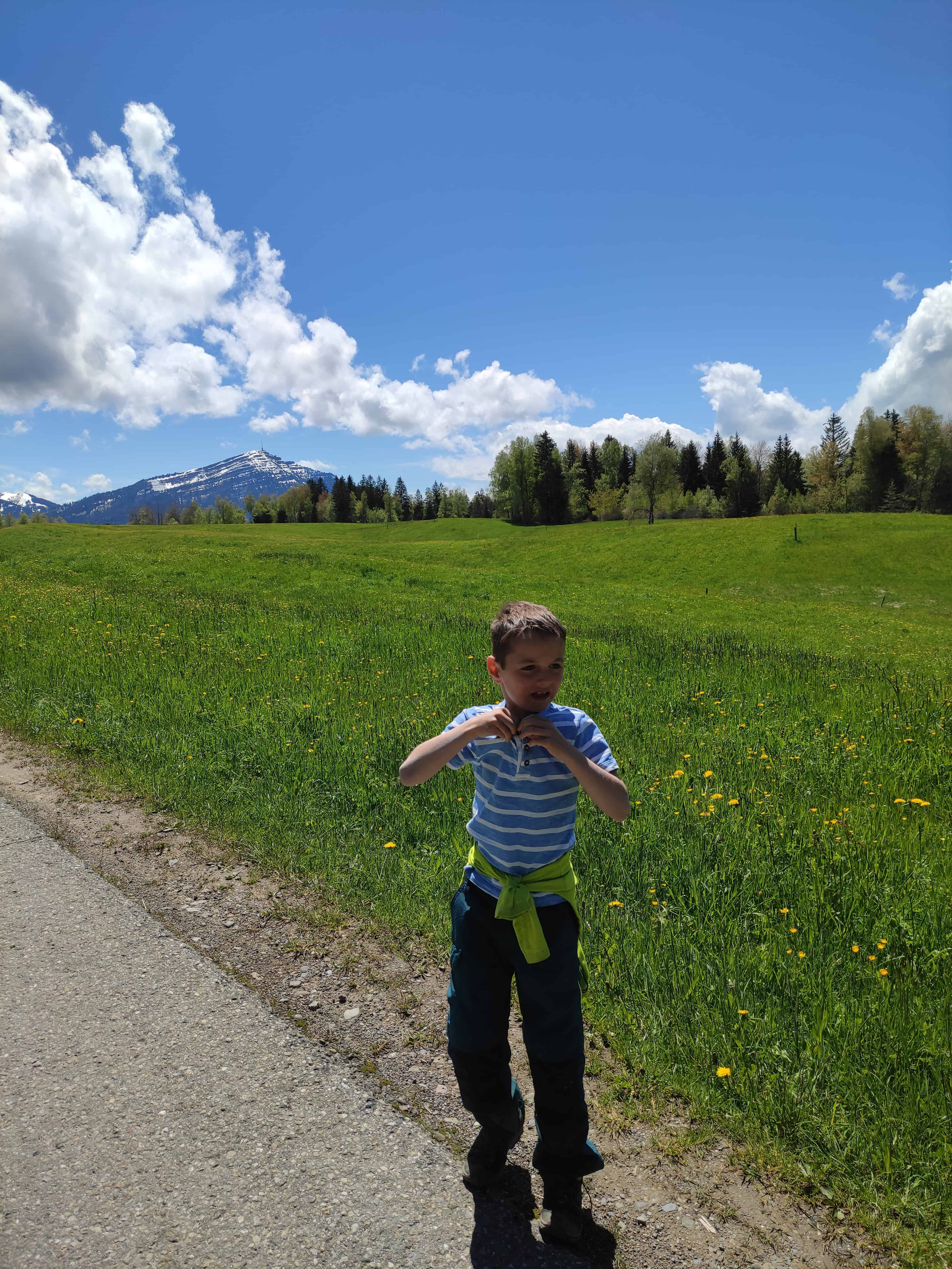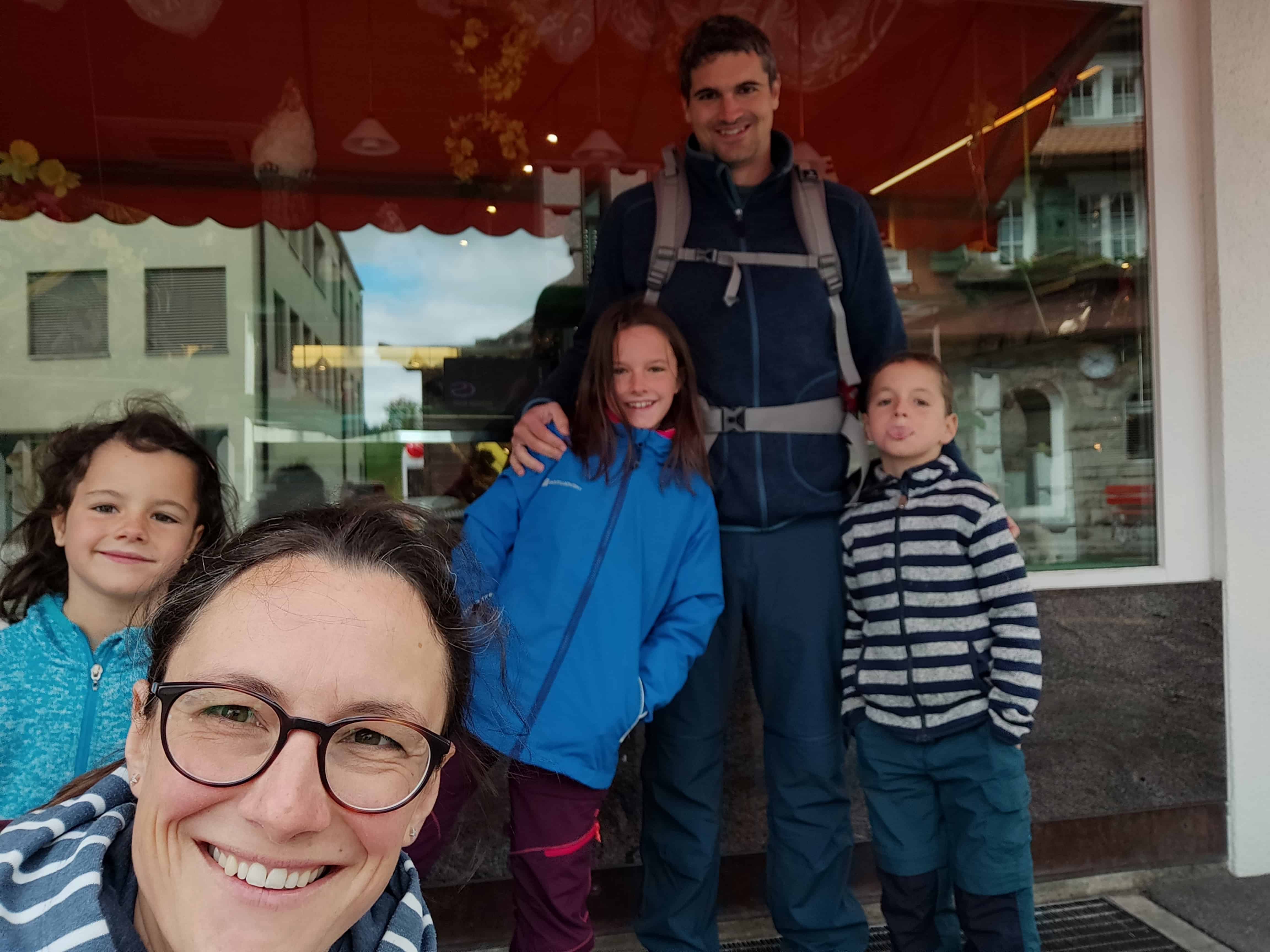 Aus dem Rucksack. In Unterägeri haben wir in der Bäckerein Zumbach, die Bekannten von uns gehört, frischen Zopf (noch heiss!) gekauft. Am Ufer des Ägerisees haben wir auf dem Spielplatz das Picknick gegessen. Unterwegs sind Gummibärli immer eine gute Belohnung.