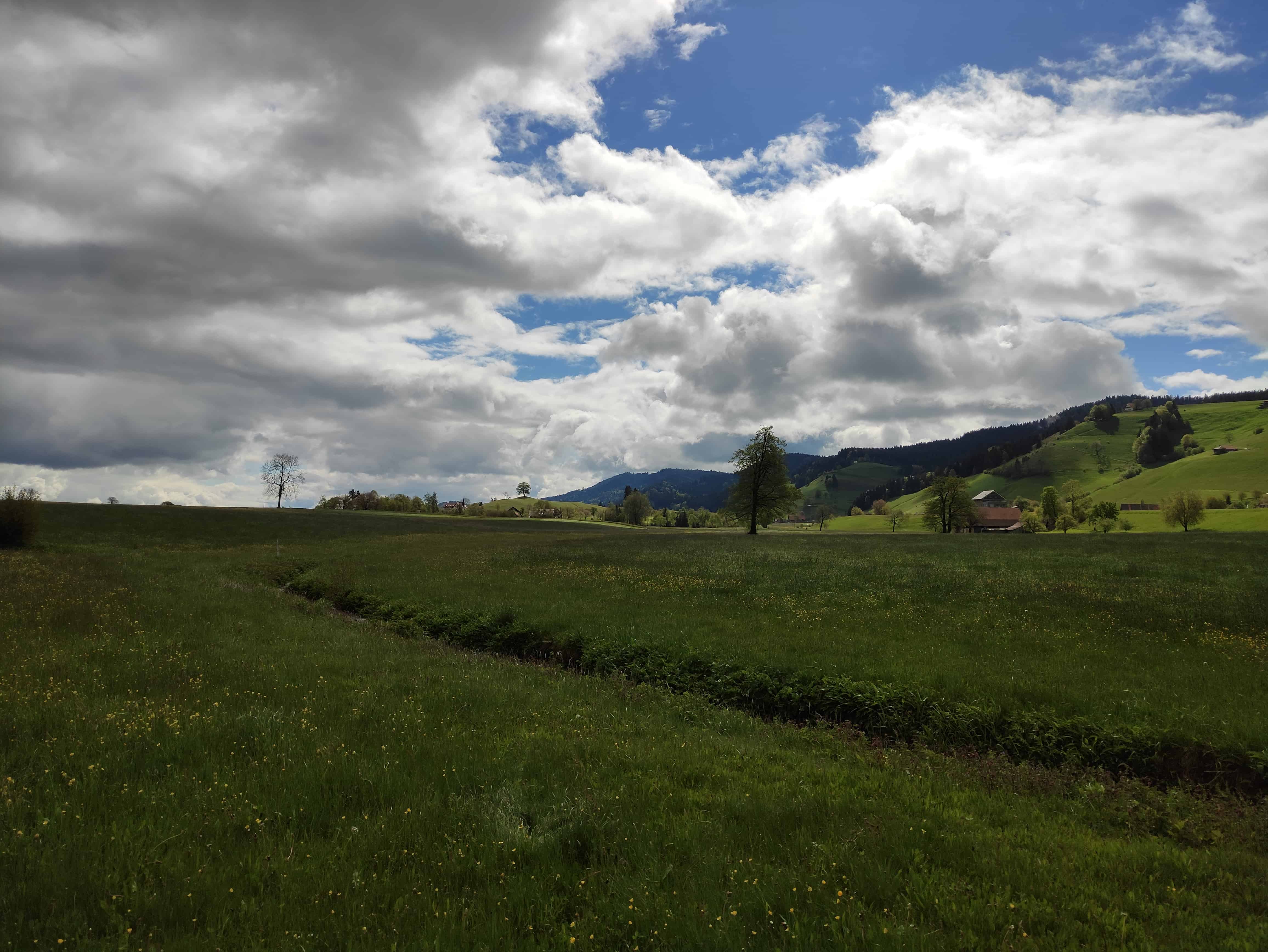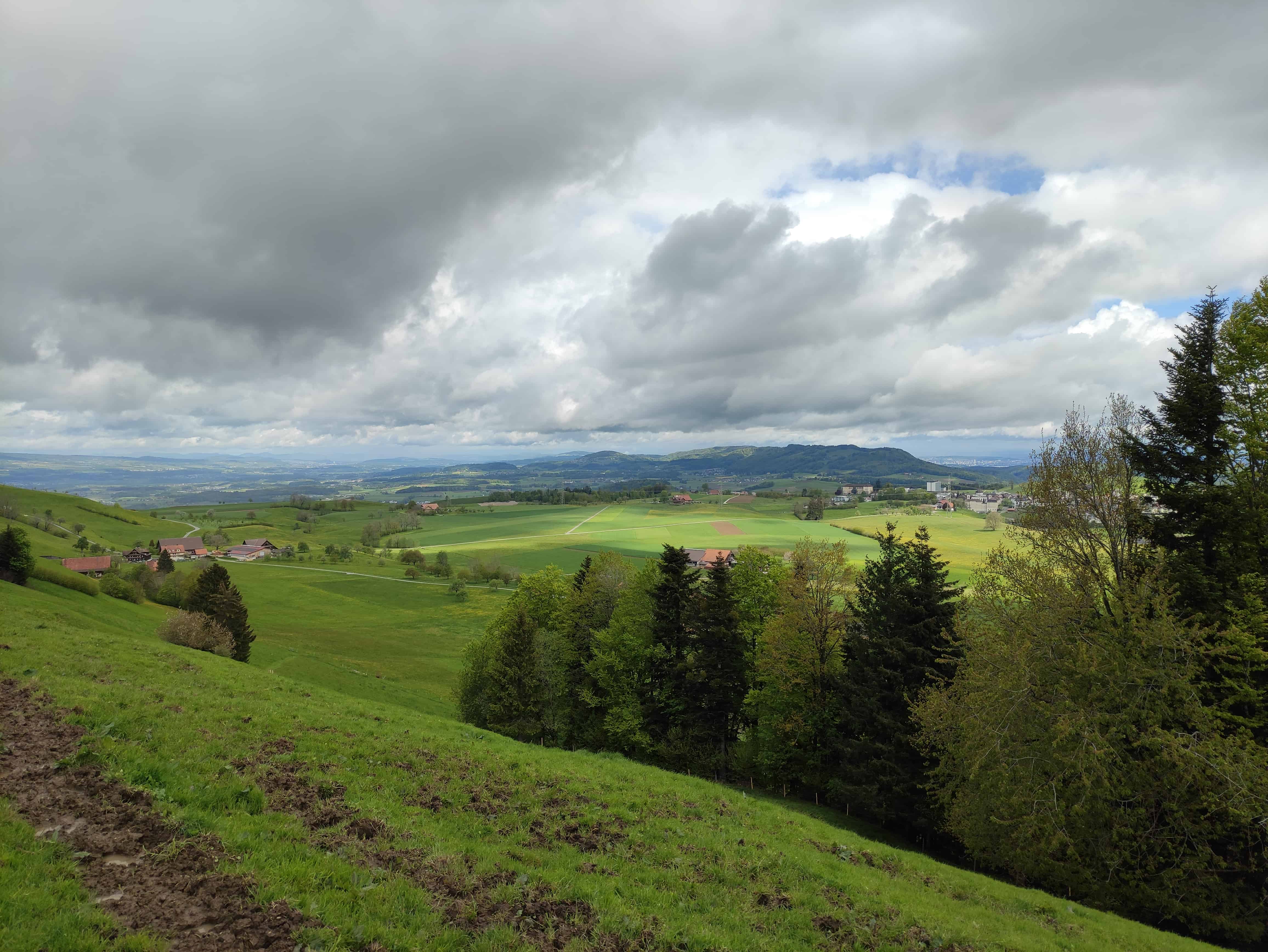 Der Start war kühl und windig. Eine dunkle, bedrohende Regenwolke sass uns im Nacken. Immmer wieder kam aber auch die Sonne hervor, bis sie sich nach einem Regenschauer am Mittag dann definitiv durchsetzte. Anfänglich lag die Temperatur bei 6°C, am Schluss dann bei 18°C.