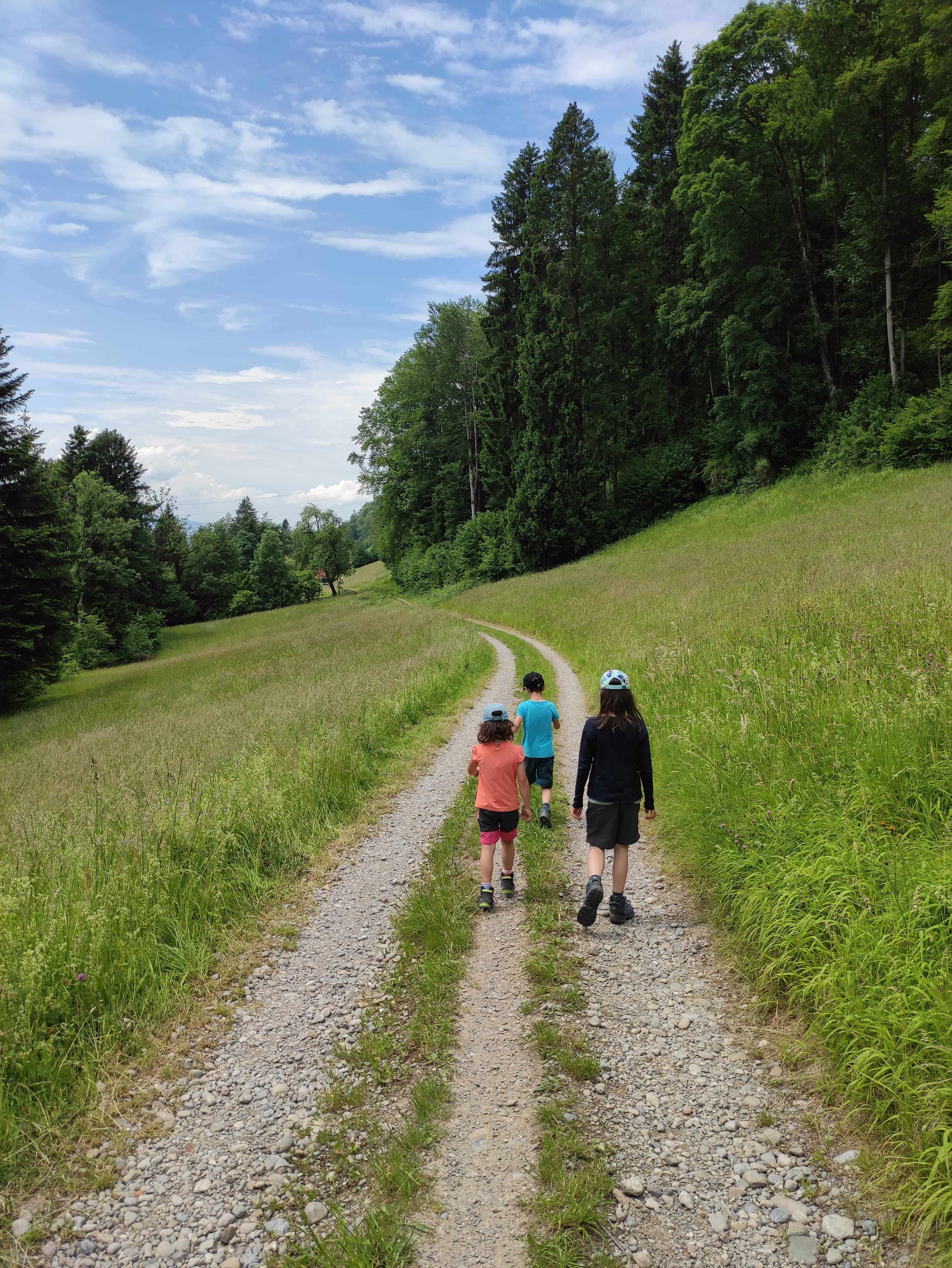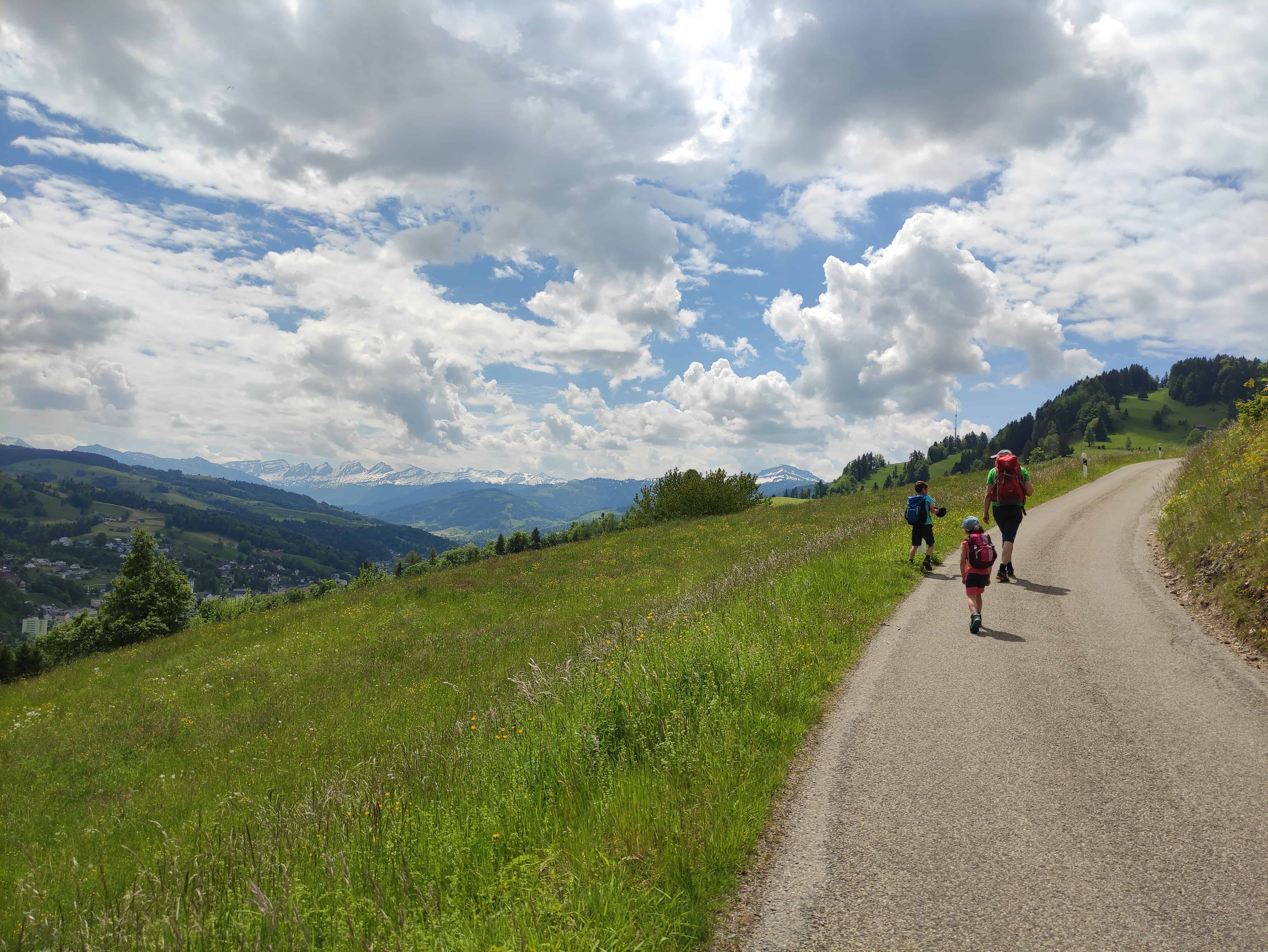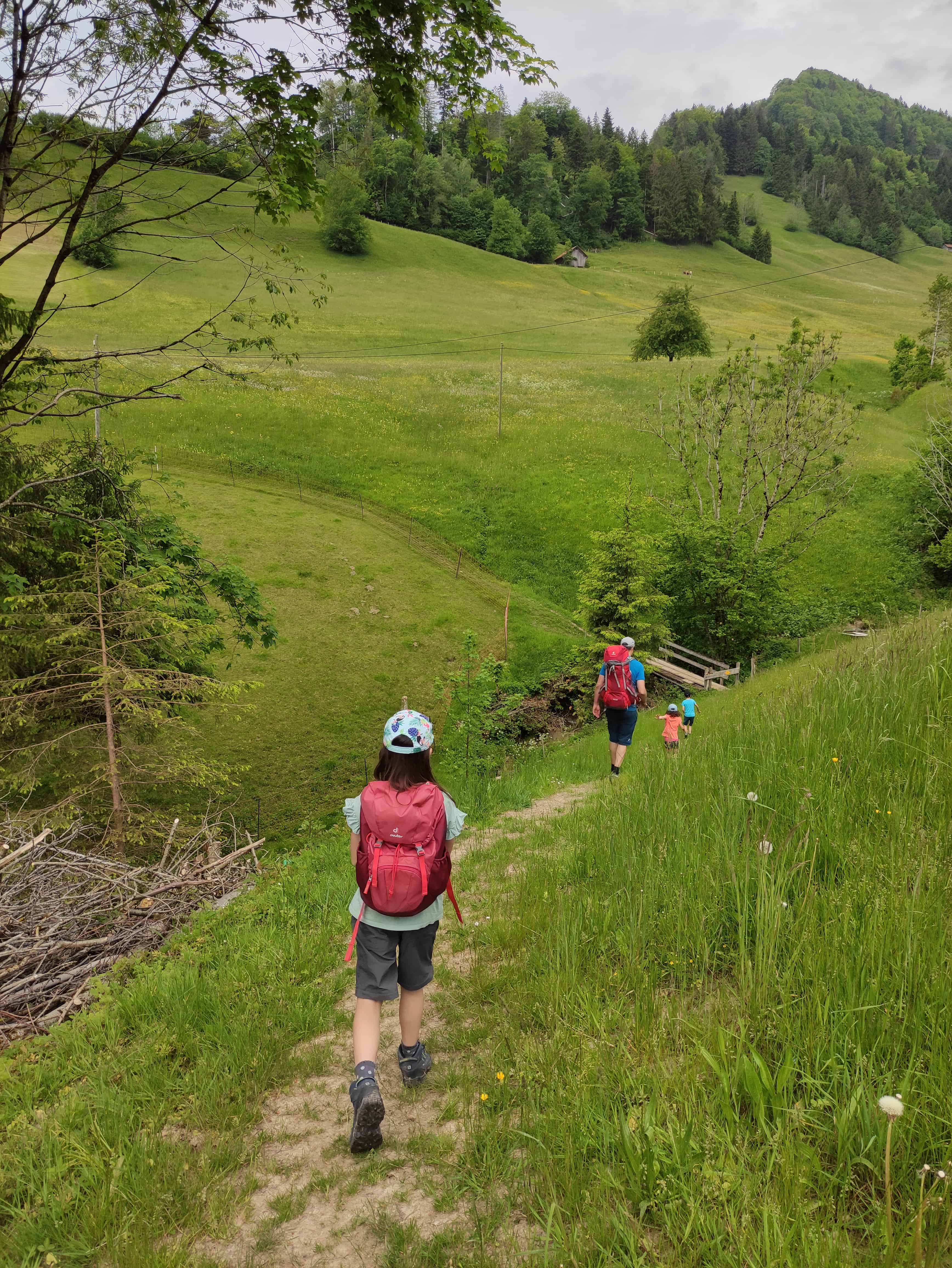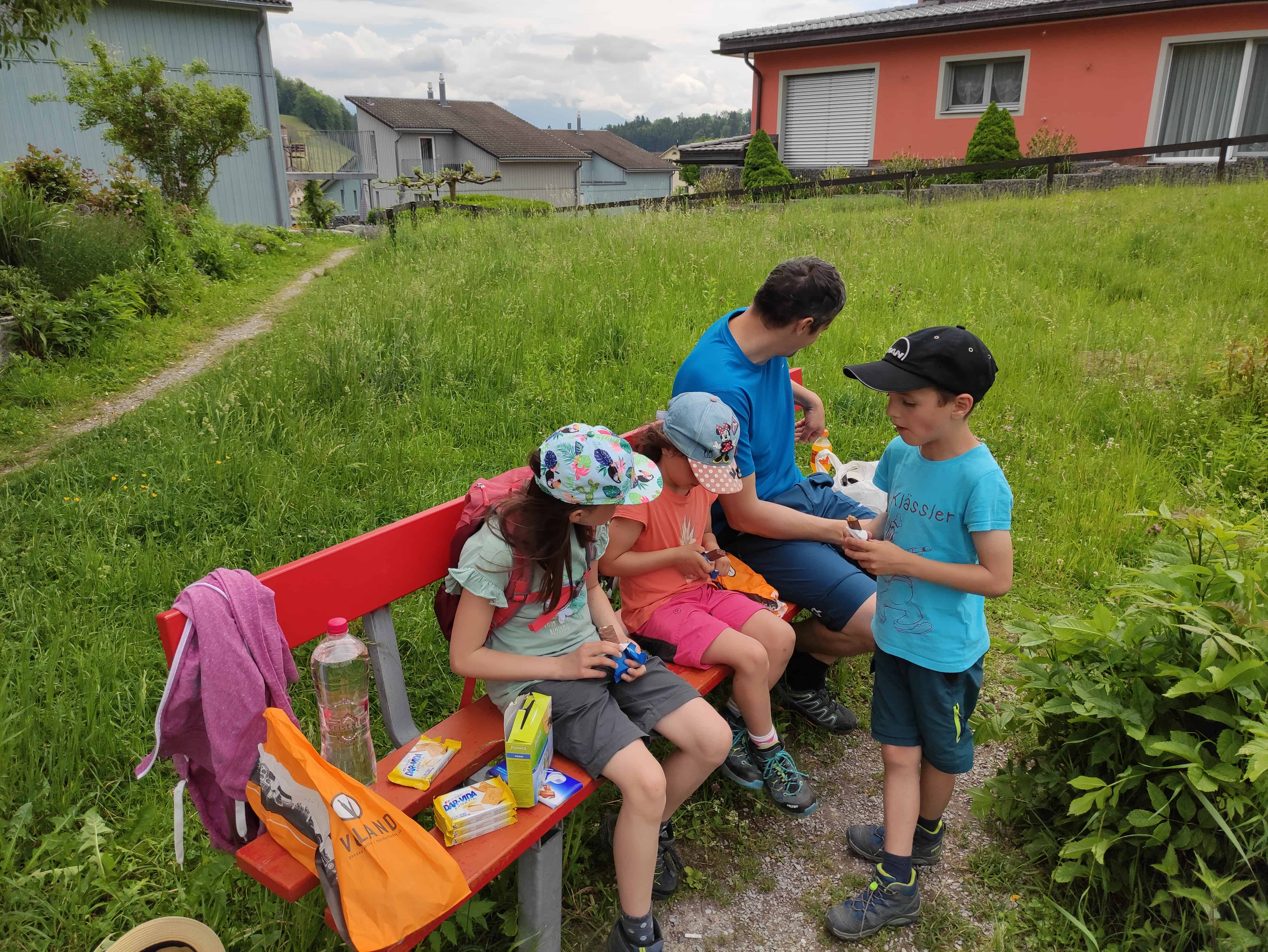 Der Weg auf die Chrüzegg hinauf ist steil. Und das wohl von jeder Seite, denn auch der Abstieg ging «stozig» runter. Die Übernachtung auf der Chrüzegg war ein Erlebnis für Gross und Klein. Die Aussicht von der Chrüzegg in alle Himmelsrichtungen ist einmalig schön. Zu sehen, woher wir kamen und wohin wir gehen würden, ist grossartig. Für einmal ohne Anfahrtsweg direkt loslaufen zu können, haben wir sehr geschätzt. Von Laupen ZH nach Rapperswil zieht sich die Strecke. Einmal mehr sind die Kinder über sich hinausgewachsen und haben diese wirklich lange Etappe mit Bravour gemeistert. Ein Gummibärli zwischendurch kann Wunder wirken! Bemerkenswert ist übrigens auch der Muskelkater in den Hüften der 10 Looser-Beine am darauffolgenden Tag…