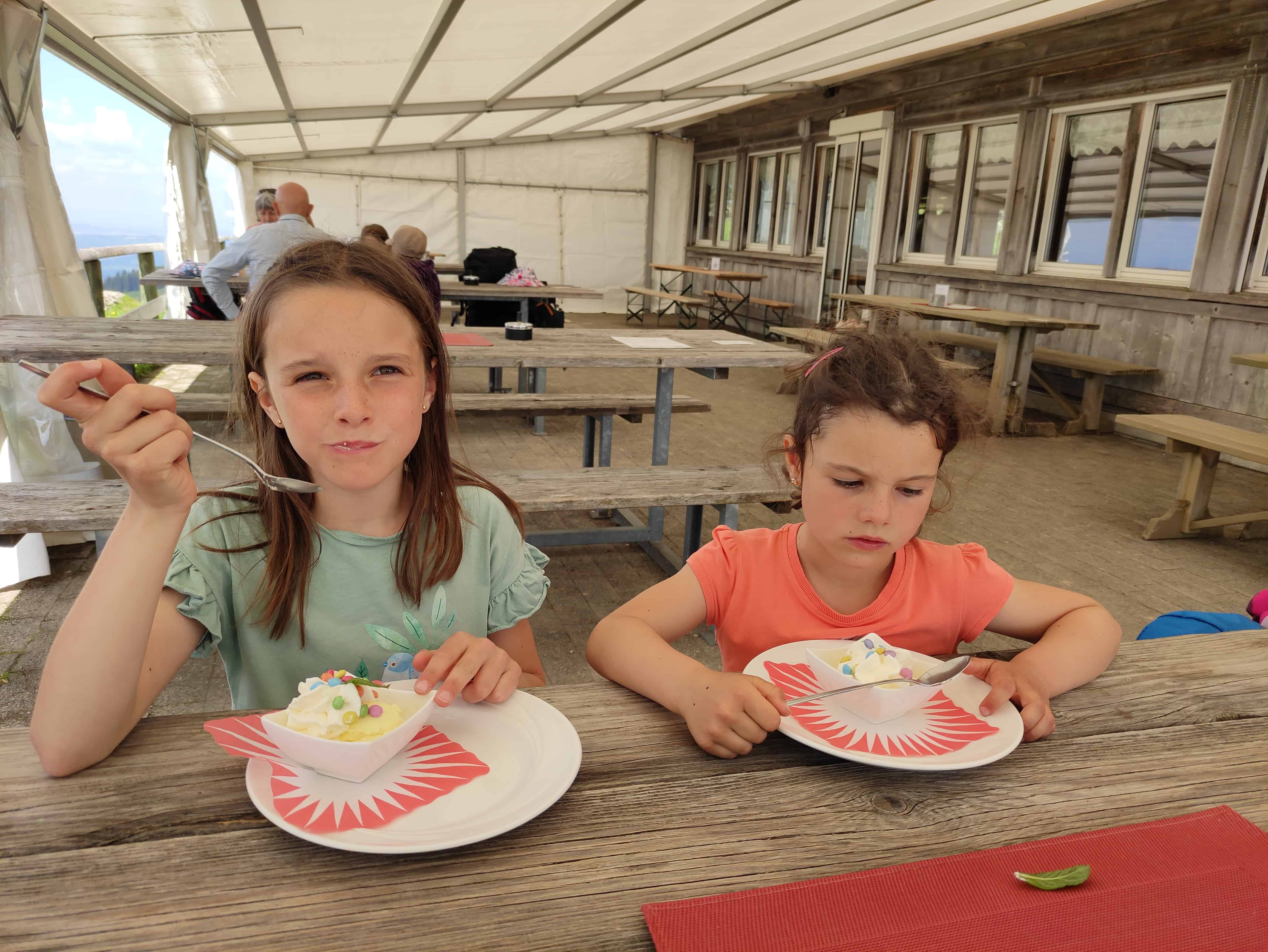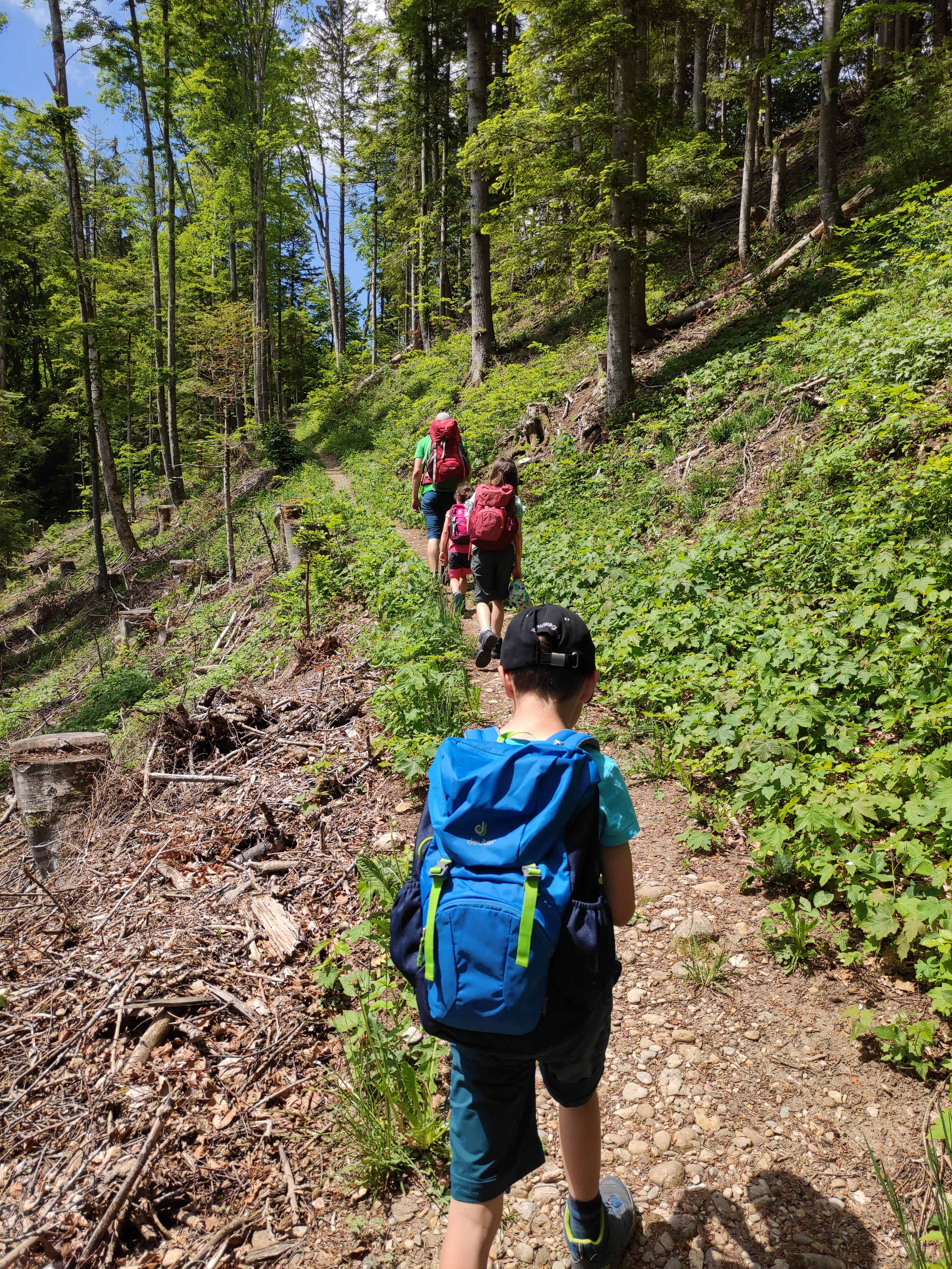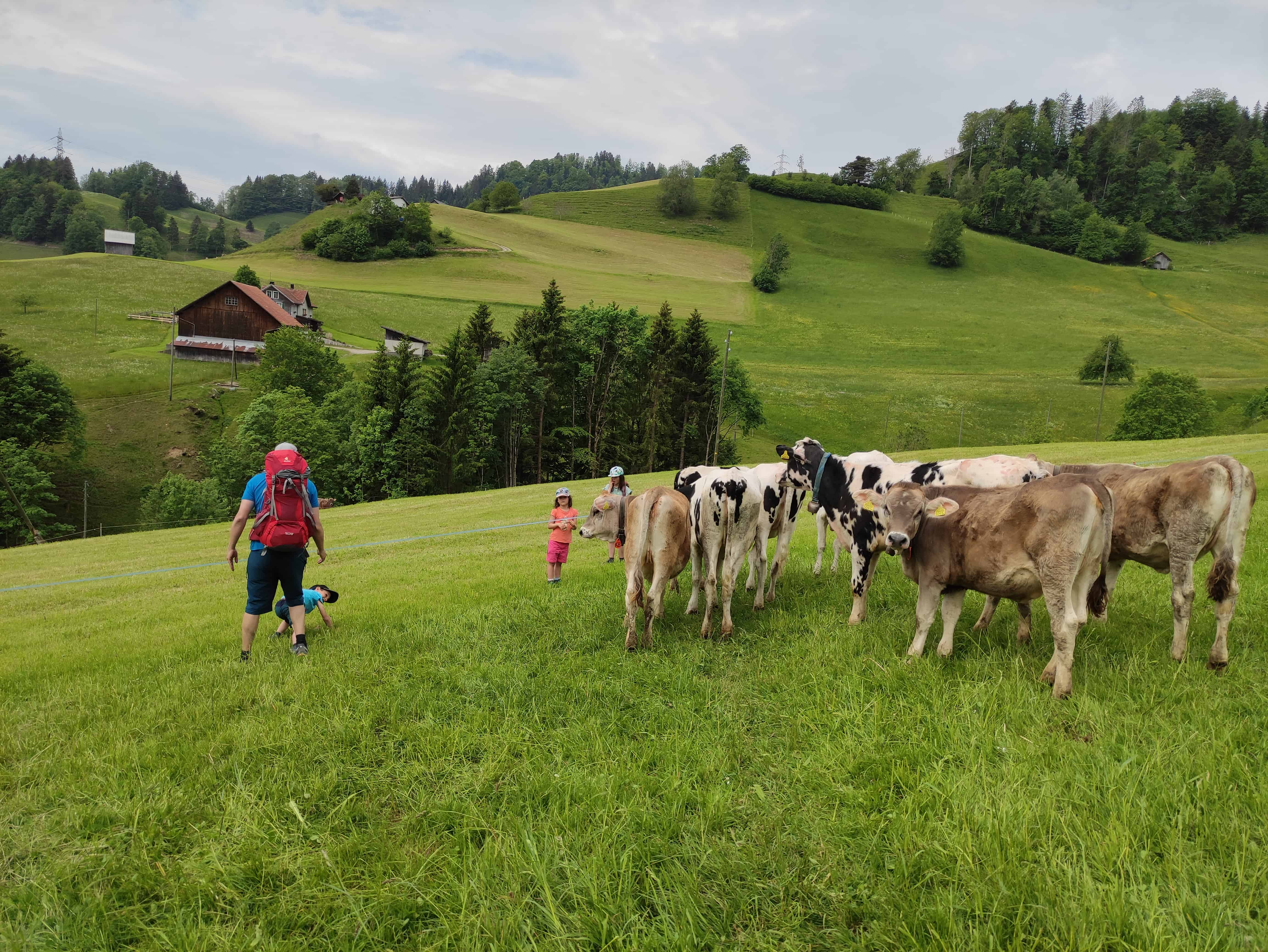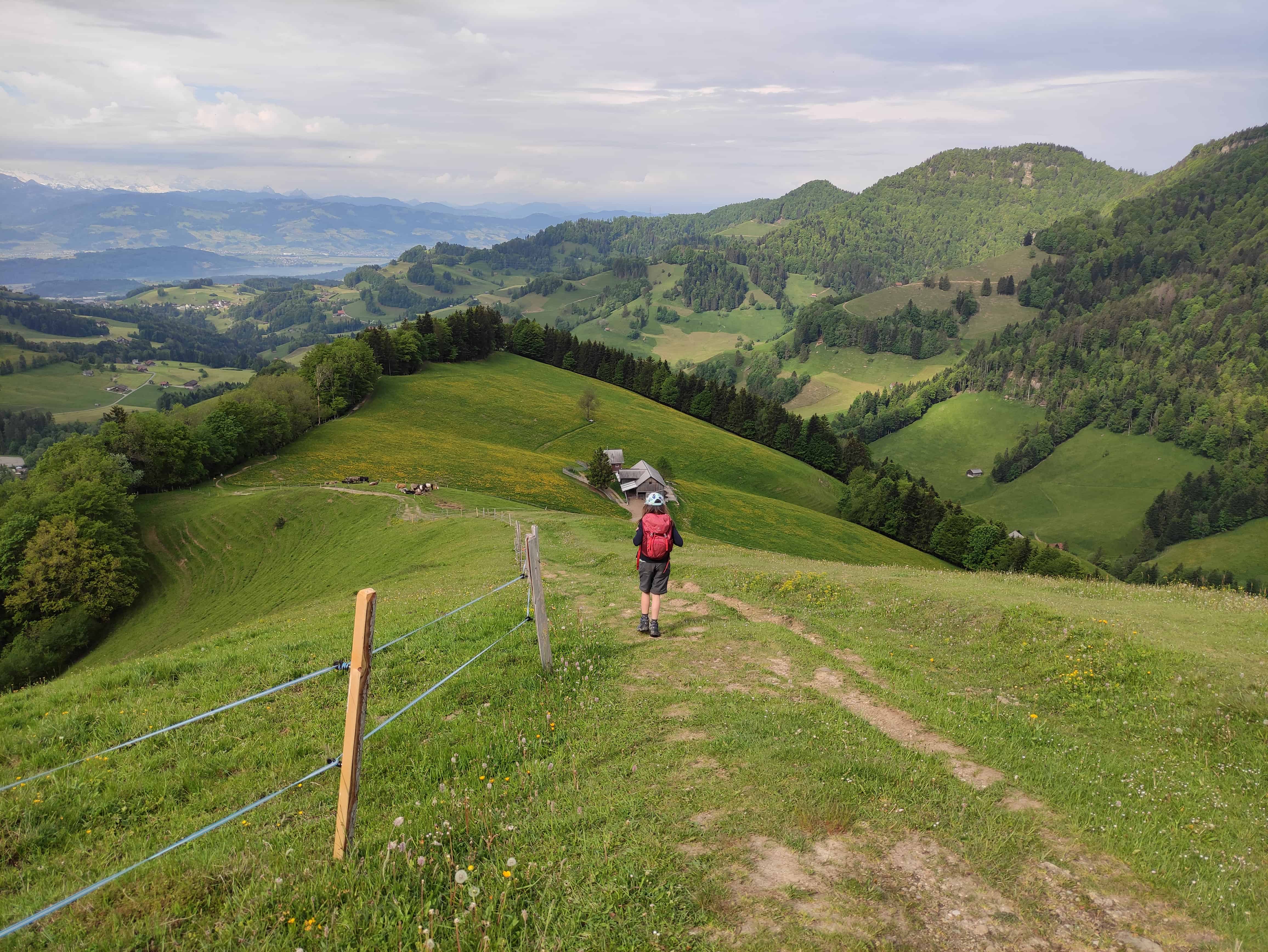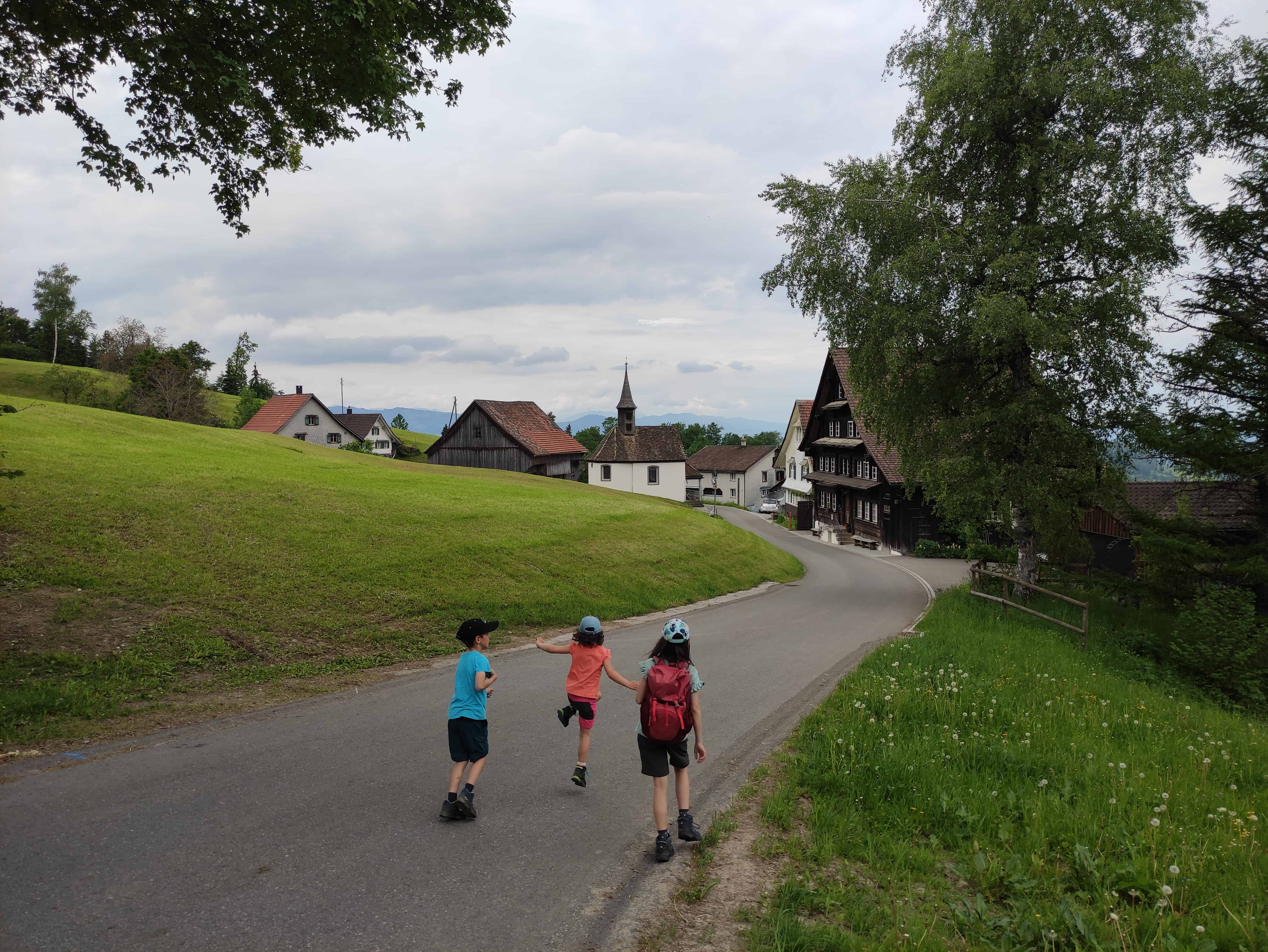 Der Weg auf die Chrüzegg hinauf ist steil. Und das wohl von jeder Seite, denn auch der Abstieg ging «stozig» runter. Die Übernachtung auf der Chrüzegg war ein Erlebnis für Gross und Klein. Die Aussicht von der Chrüzegg in alle Himmelsrichtungen ist einmalig schön. Zu sehen, woher wir kamen und wohin wir gehen würden, ist grossartig. Für einmal ohne Anfahrtsweg direkt loslaufen zu können, haben wir sehr geschätzt. Von Laupen ZH nach Rapperswil zieht sich die Strecke. Einmal mehr sind die Kinder über sich hinausgewachsen und haben diese wirklich lange Etappe mit Bravour gemeistert. Ein Gummibärli zwischendurch kann Wunder wirken! Bemerkenswert ist übrigens auch der Muskelkater in den Hüften der 10 Looser-Beine am darauffolgenden Tag…