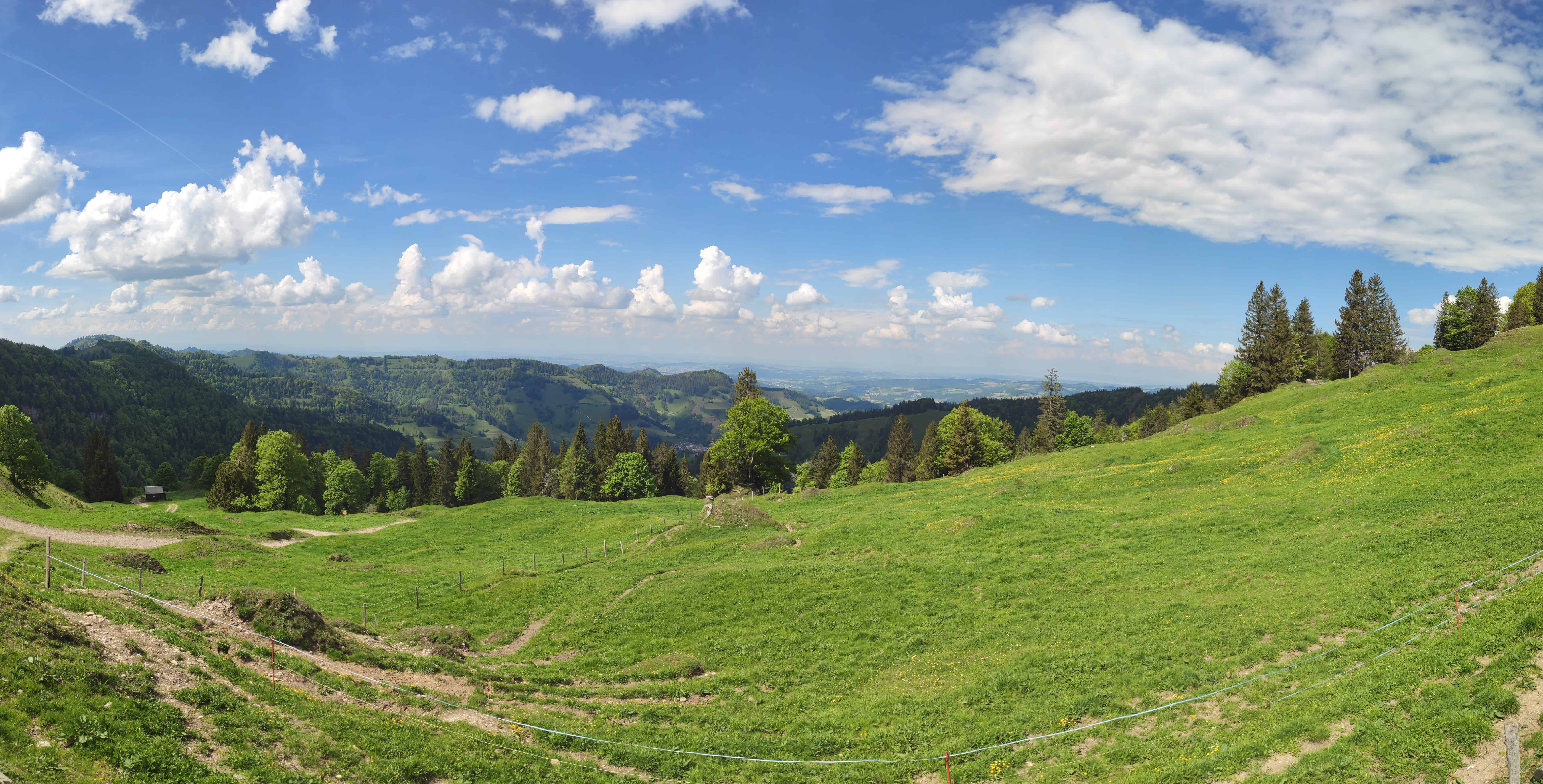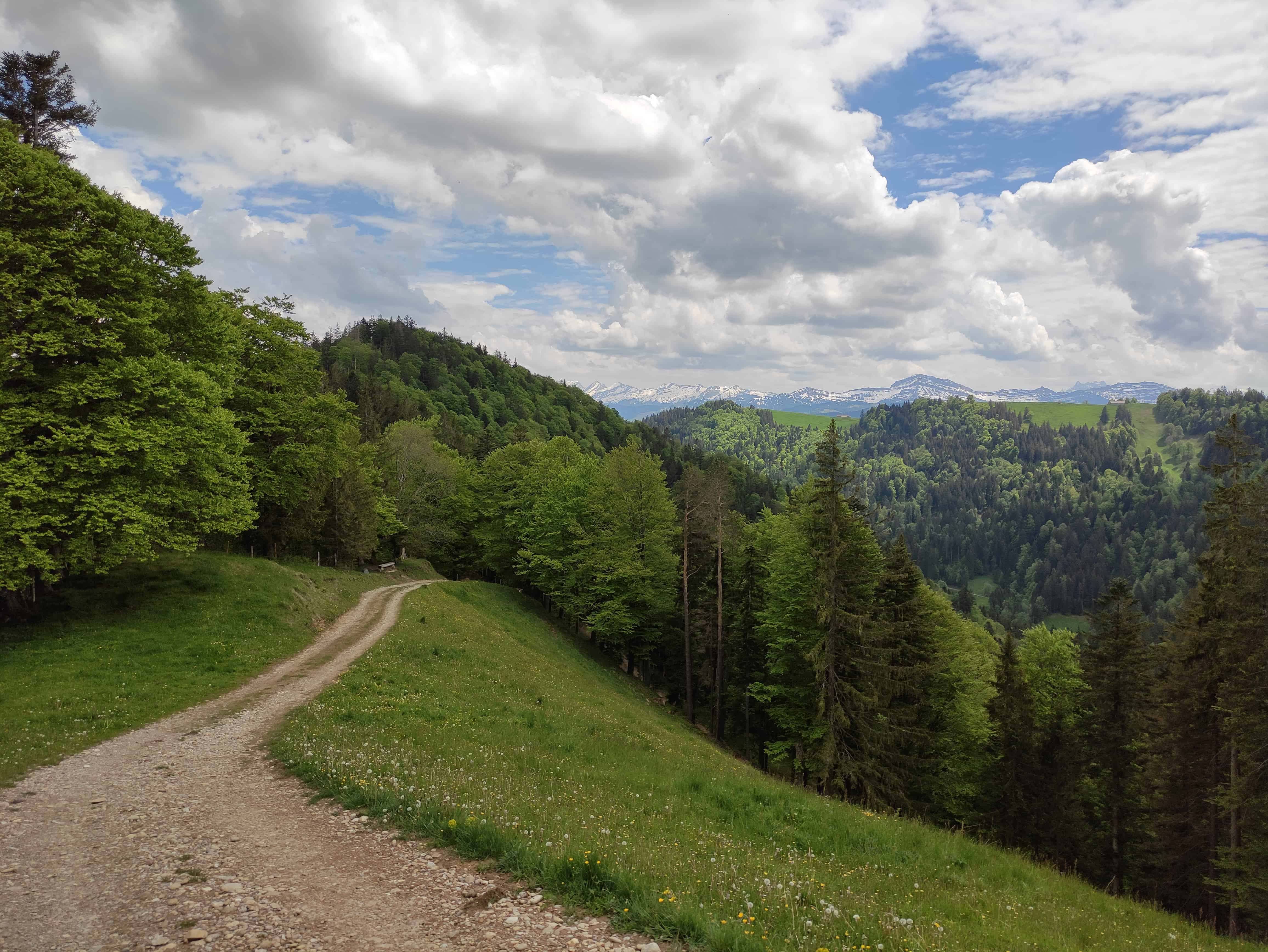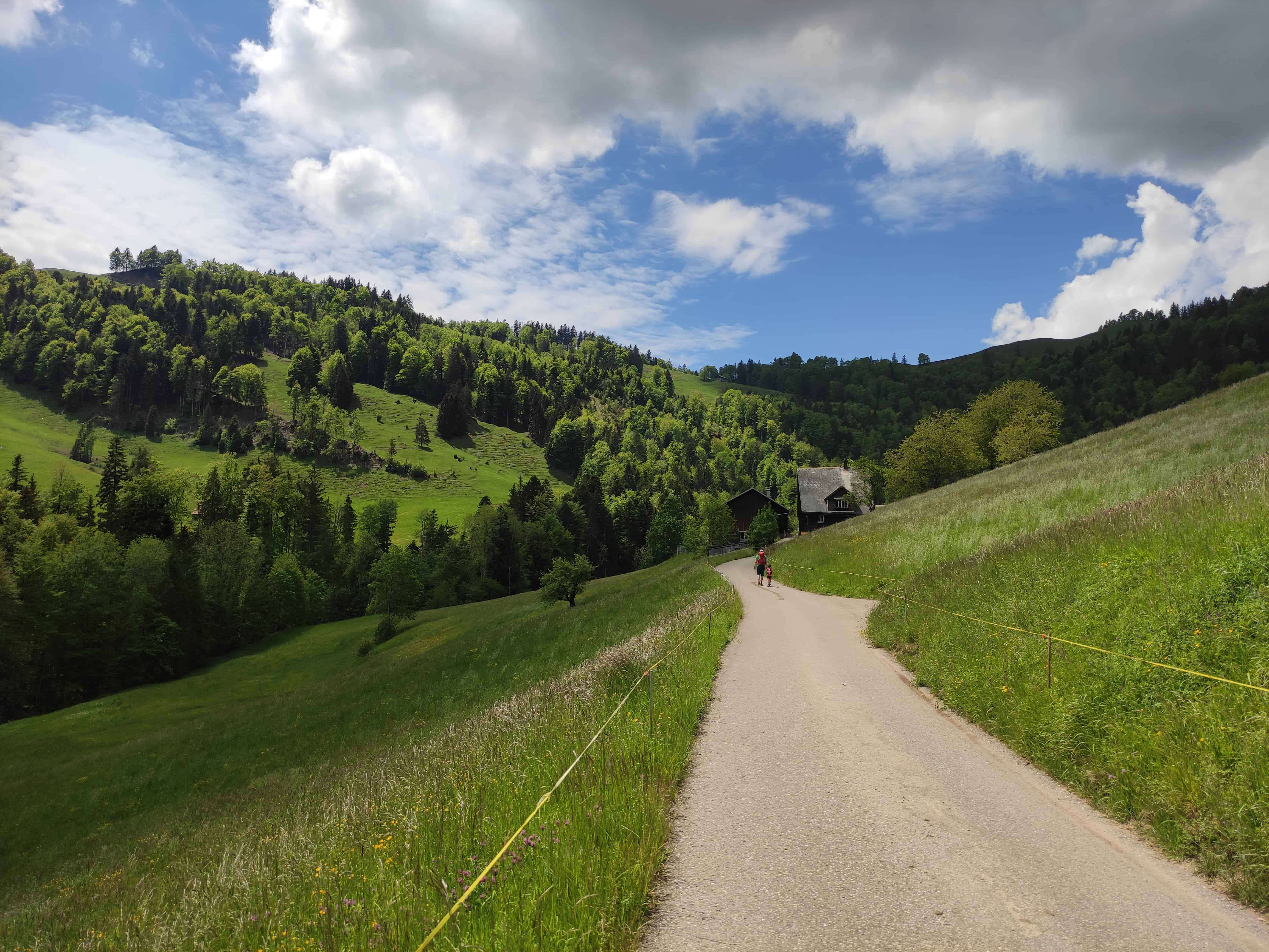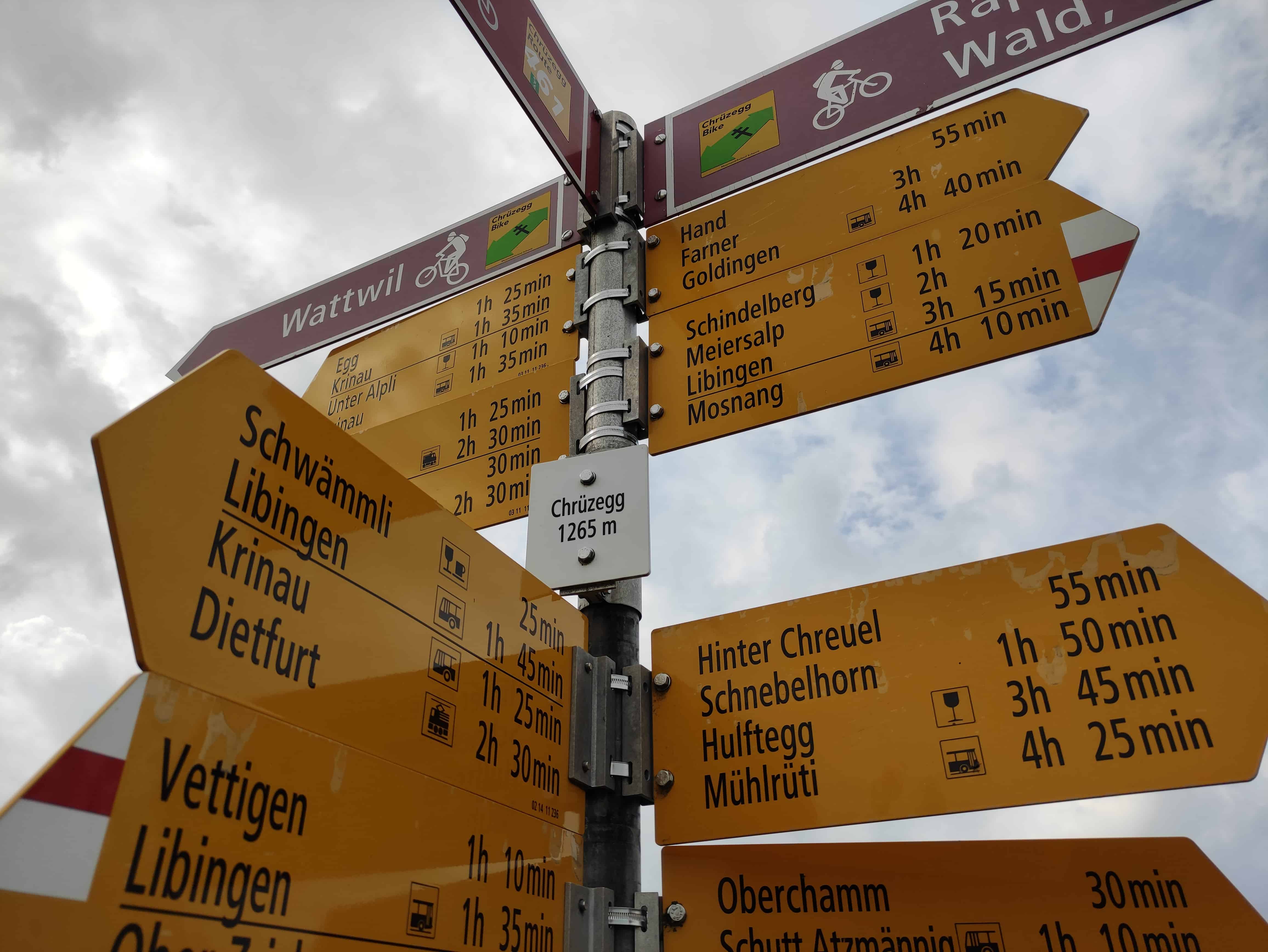 Lichtensteig – Chrüzegg 5.5 km, 718 Höhenmeter rauf, 80 Höhenmeter runter; Chrüzegg – Rapperswil 21.5 km, 330 Höhenmeter rauf, 1150 Höhenmeter runter