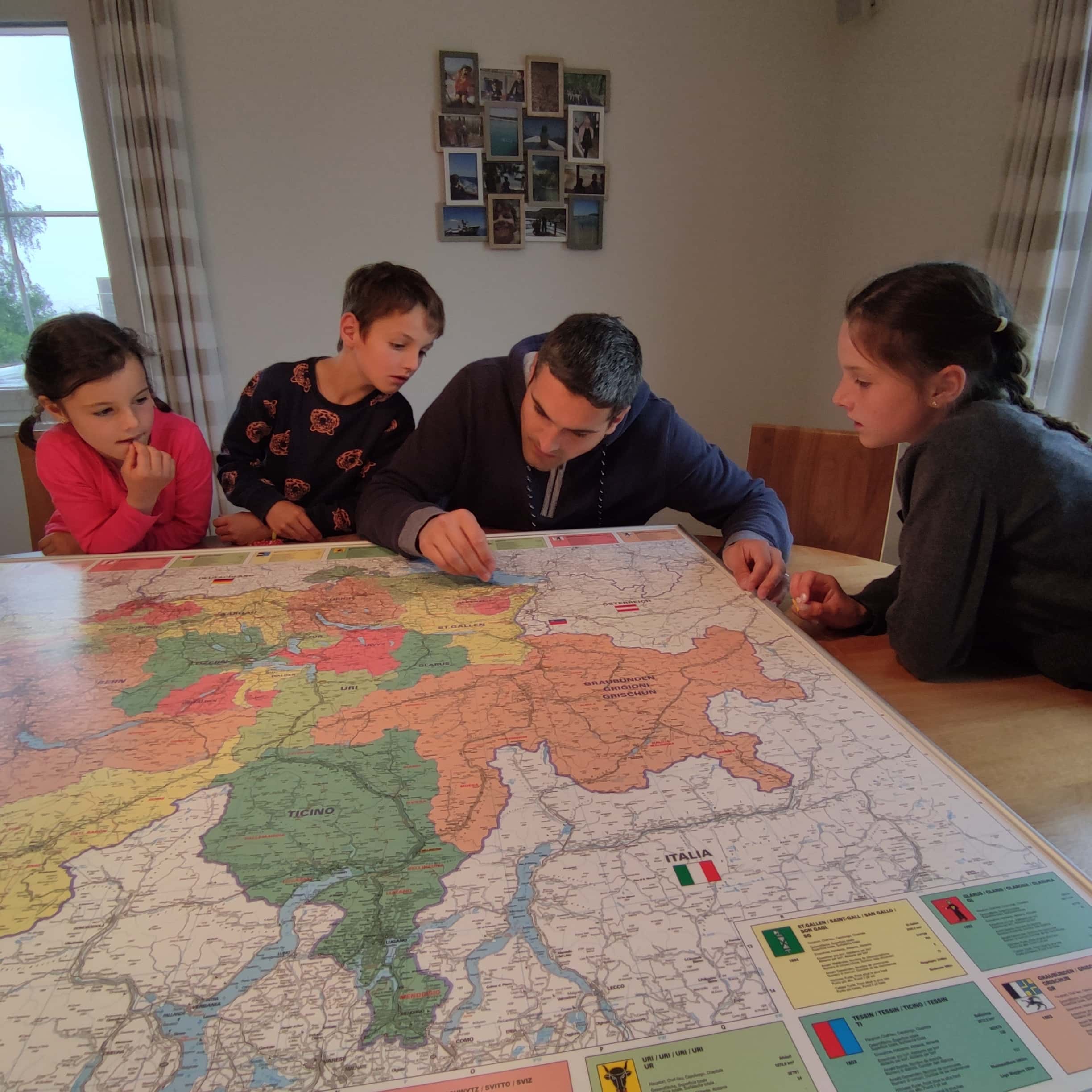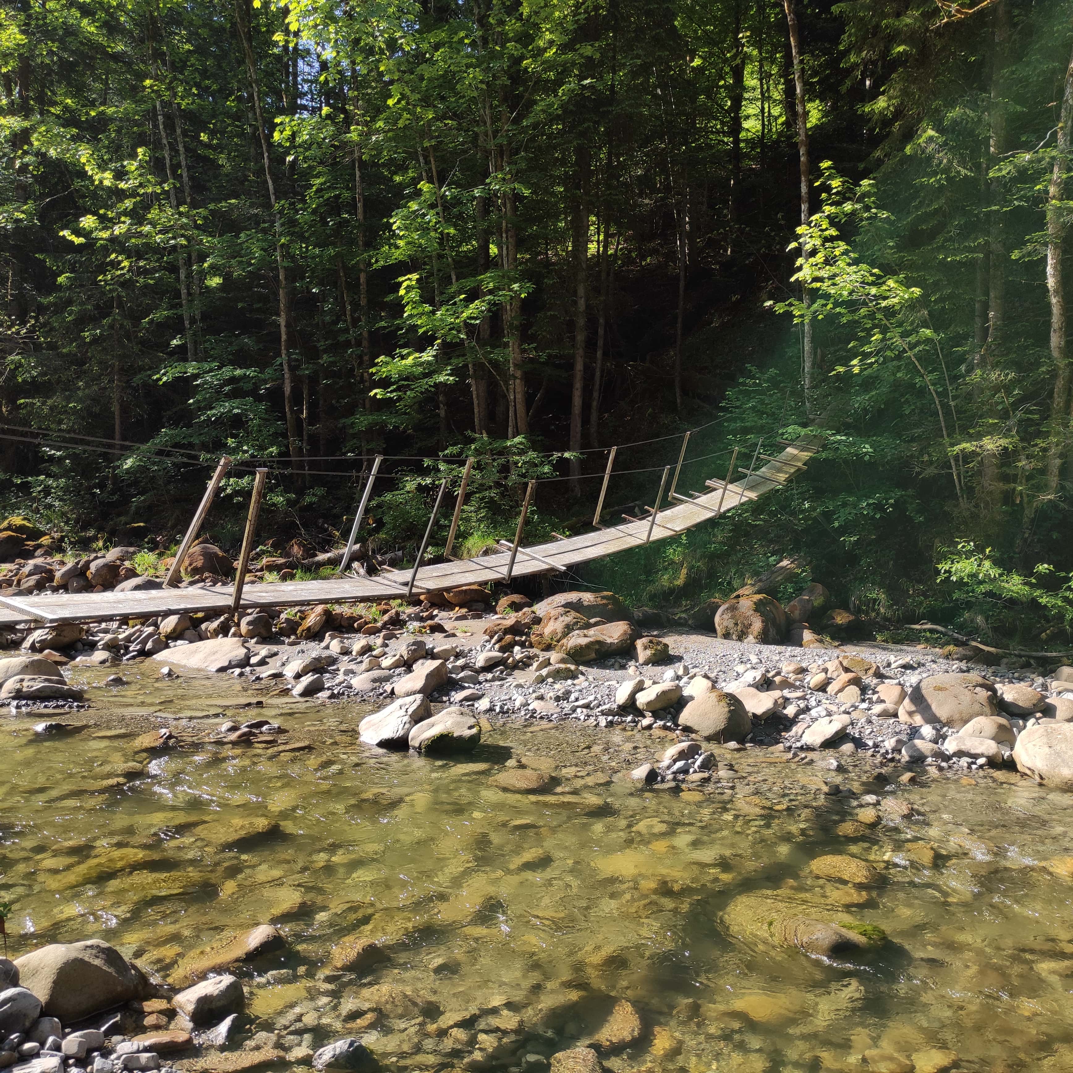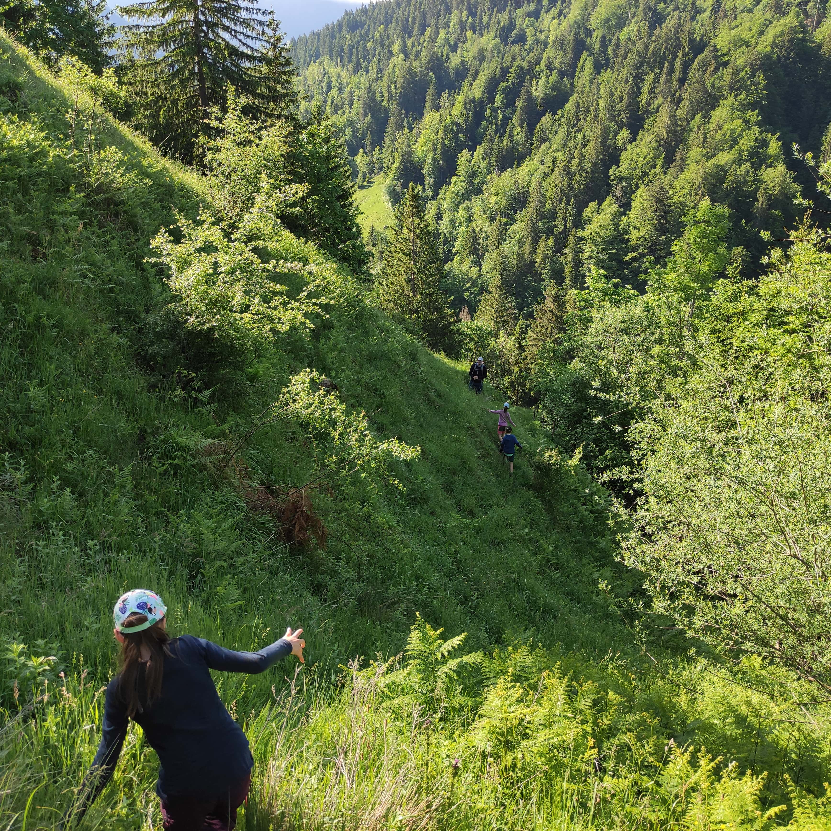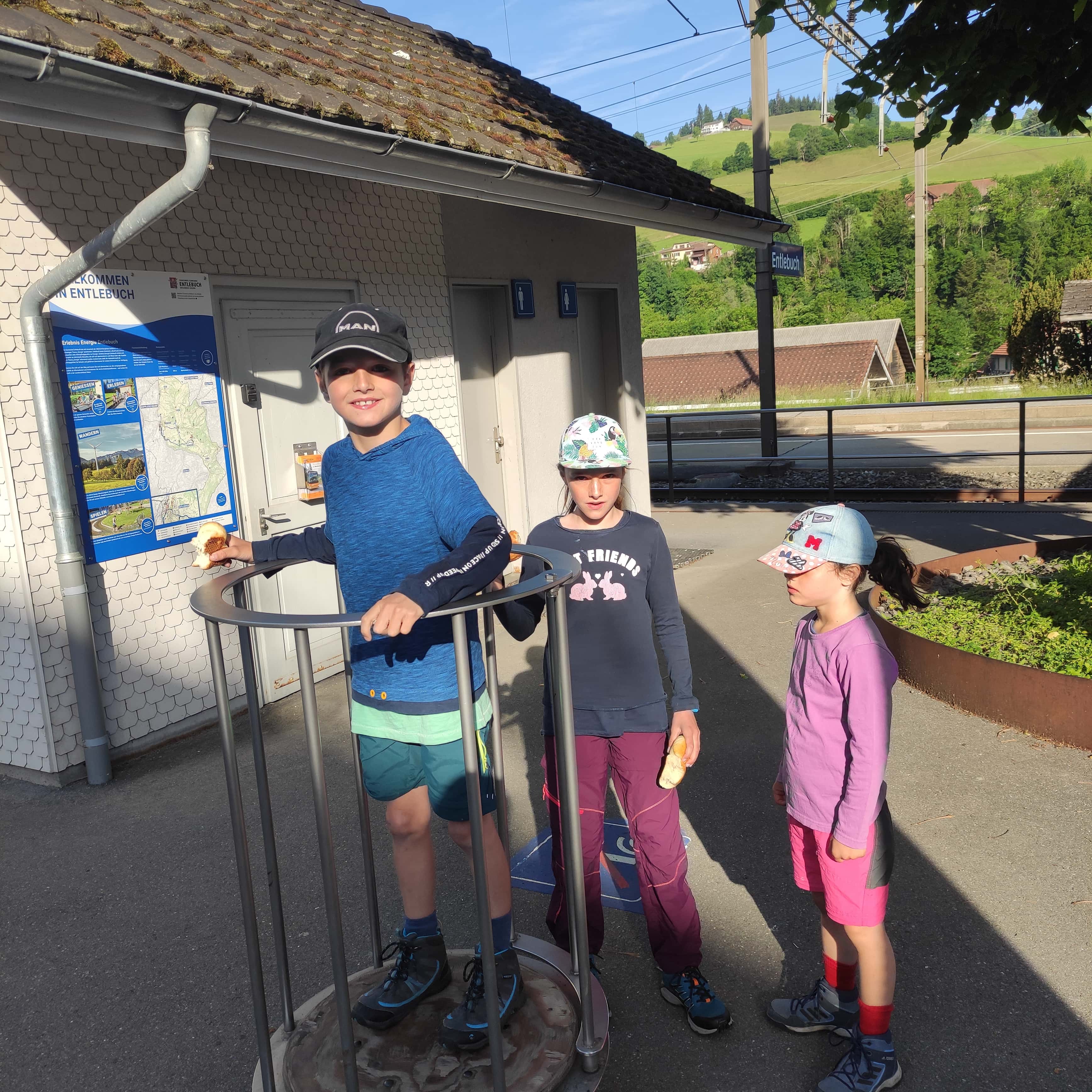 Die erste Etappe dieser Wandersaison. Dort, wo vor 40 Jahren schon kein Weg war, gab es auch – oh Wunder – auch heute keinen mehr. Wobei wir die Grosse Entle immerhin über eine Brücke überqueren konnten. Die Brücke war aber alles andere als vertrauenserweckend. Sie hat aber gehalten und wir sind trockenen Fusses ans andere Ufer gekommen. Auf der anderen Seite kraxelten wir 180 Höhenmeter durch Weide und Sumpf – vermutlich sind die letzten Spaziergänger vor mehr als 40 Jahren hier durchgegangen. Wer das wohl war?! Die Gegend des Biosphärenpark Entlebuch ist landschaftlich sehr schön – wir sind froh, dass wir diese Gegend kennengelernt haben. Leider bekam Louisa Schmerzen im Knie, die sich verstärkt haben im Laufe der Tour. Sie hat durchgehalten. Für die nächste Etappe, die für den folgenden Tag geplant war, hat es dann aber nicht mehr gereicht. Wir sind nach Hause zurückgekehrt und hoffen, dass sich das Knie schnell wieder erholt. Unser Wohnwagen als Standquartier bewährt sich. Die Etappen sind nun immer weiter von Stein entfernt, weshalb wir froh sind über unser fahrbares Schlafzimmer. Zu Hause haben wir endlich begonnen, die Strecke auf der Schweizer Karte auszustecken, damit die Kinder (und auch wir Eltern!) erkennen, was sie eigentlich schon geleistet haben.