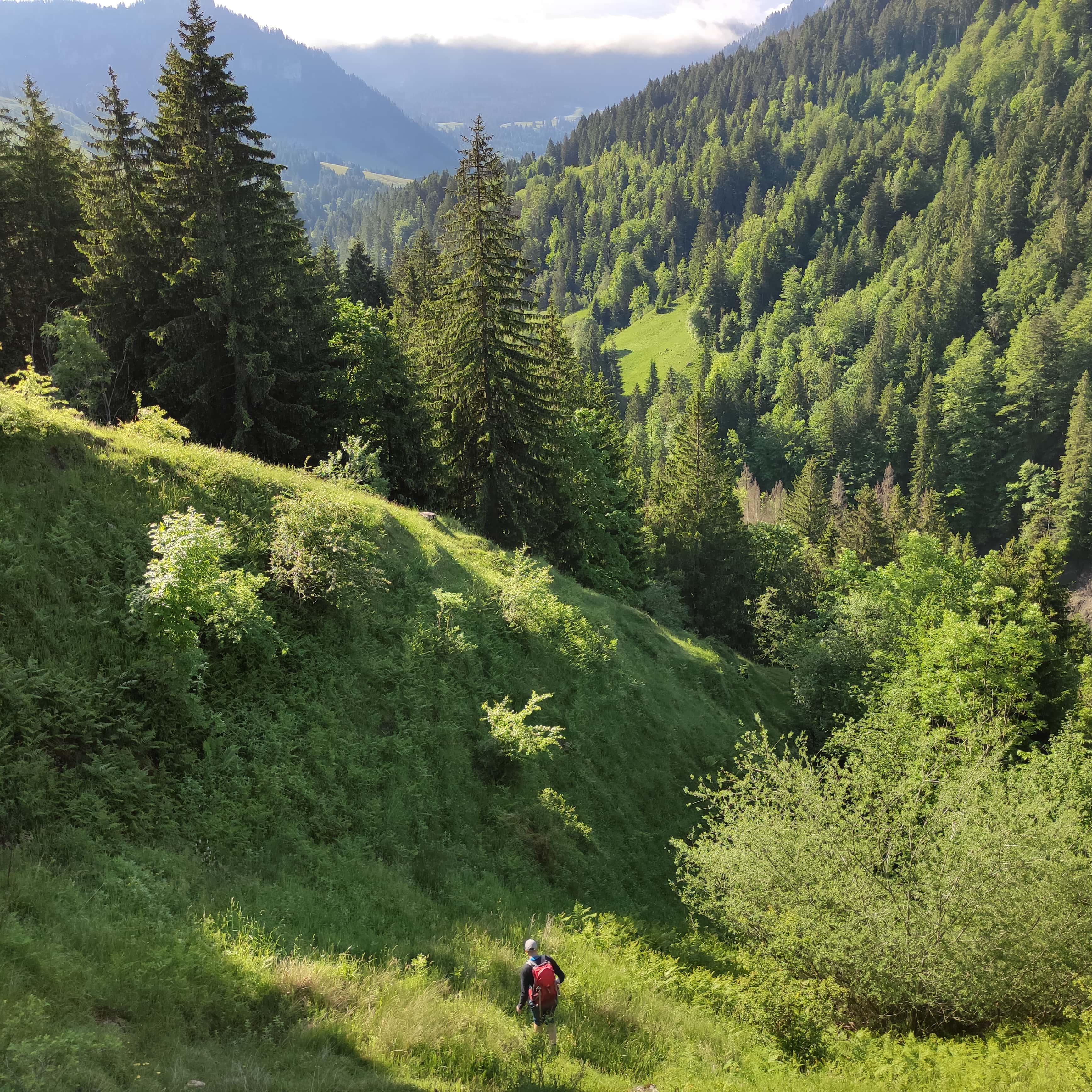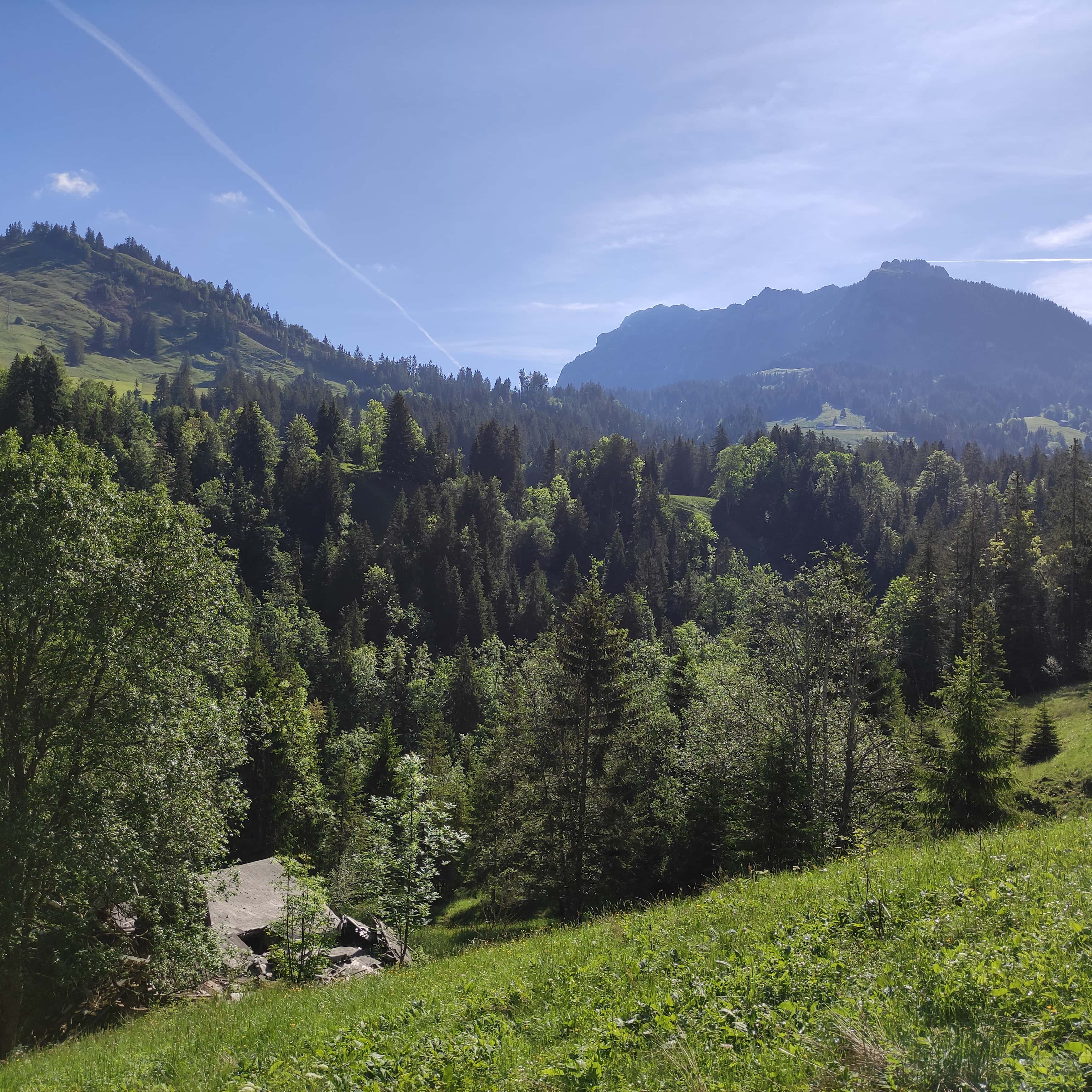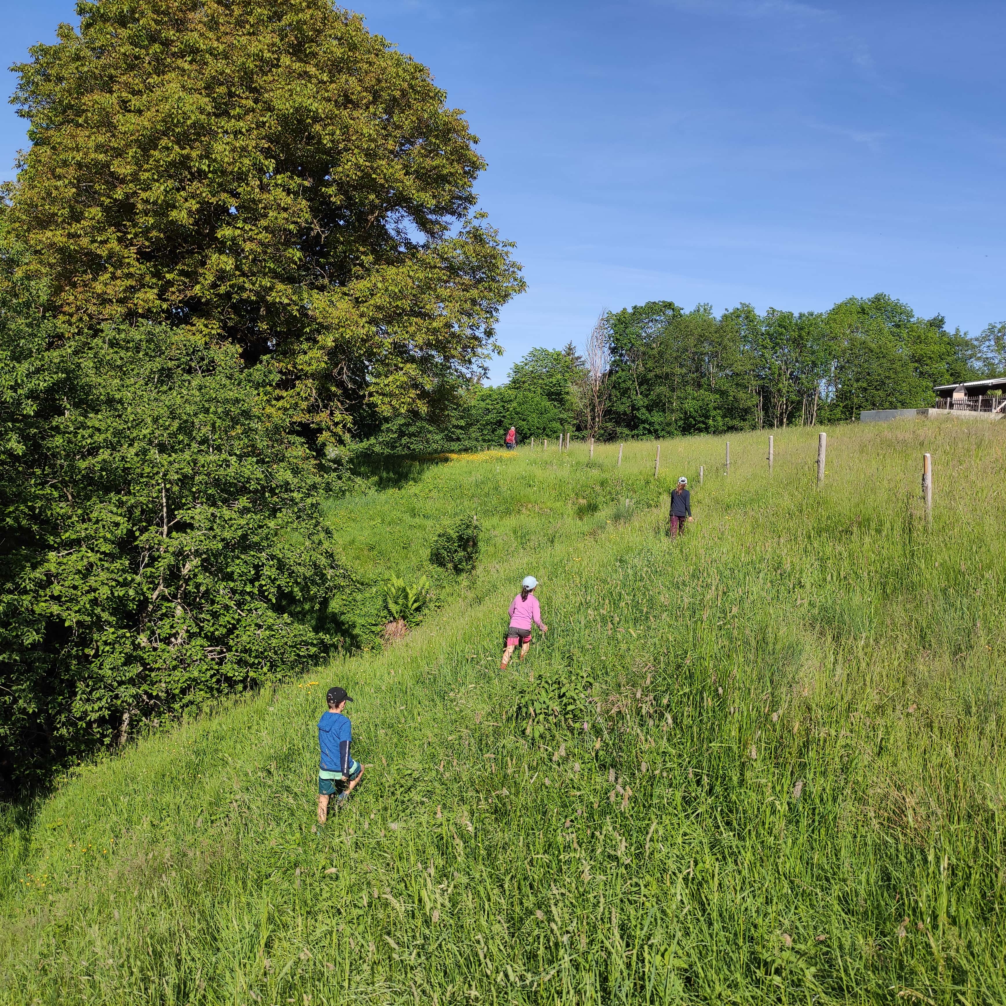 Die erste Etappe dieser Wandersaison. Dort, wo vor 40 Jahren schon kein Weg war, gab es auch – oh Wunder – auch heute keinen mehr. Wobei wir die Grosse Entle immerhin über eine Brücke überqueren konnten. Die Brücke war aber alles andere als vertrauenserweckend. Sie hat aber gehalten und wir sind trockenen Fusses ans andere Ufer gekommen. Auf der anderen Seite kraxelten wir 180 Höhenmeter durch Weide und Sumpf – vermutlich sind die letzten Spaziergänger vor mehr als 40 Jahren hier durchgegangen. Wer das wohl war?! Die Gegend des Biosphärenpark Entlebuch ist landschaftlich sehr schön – wir sind froh, dass wir diese Gegend kennengelernt haben. Leider bekam Louisa Schmerzen im Knie, die sich verstärkt haben im Laufe der Tour. Sie hat durchgehalten. Für die nächste Etappe, die für den folgenden Tag geplant war, hat es dann aber nicht mehr gereicht. Wir sind nach Hause zurückgekehrt und hoffen, dass sich das Knie schnell wieder erholt. Unser Wohnwagen als Standquartier bewährt sich. Die Etappen sind nun immer weiter von Stein entfernt, weshalb wir froh sind über unser fahrbares Schlafzimmer. Zu Hause haben wir endlich begonnen, die Strecke auf der Schweizer Karte auszustecken, damit die Kinder (und auch wir Eltern!) erkennen, was sie eigentlich schon geleistet haben.