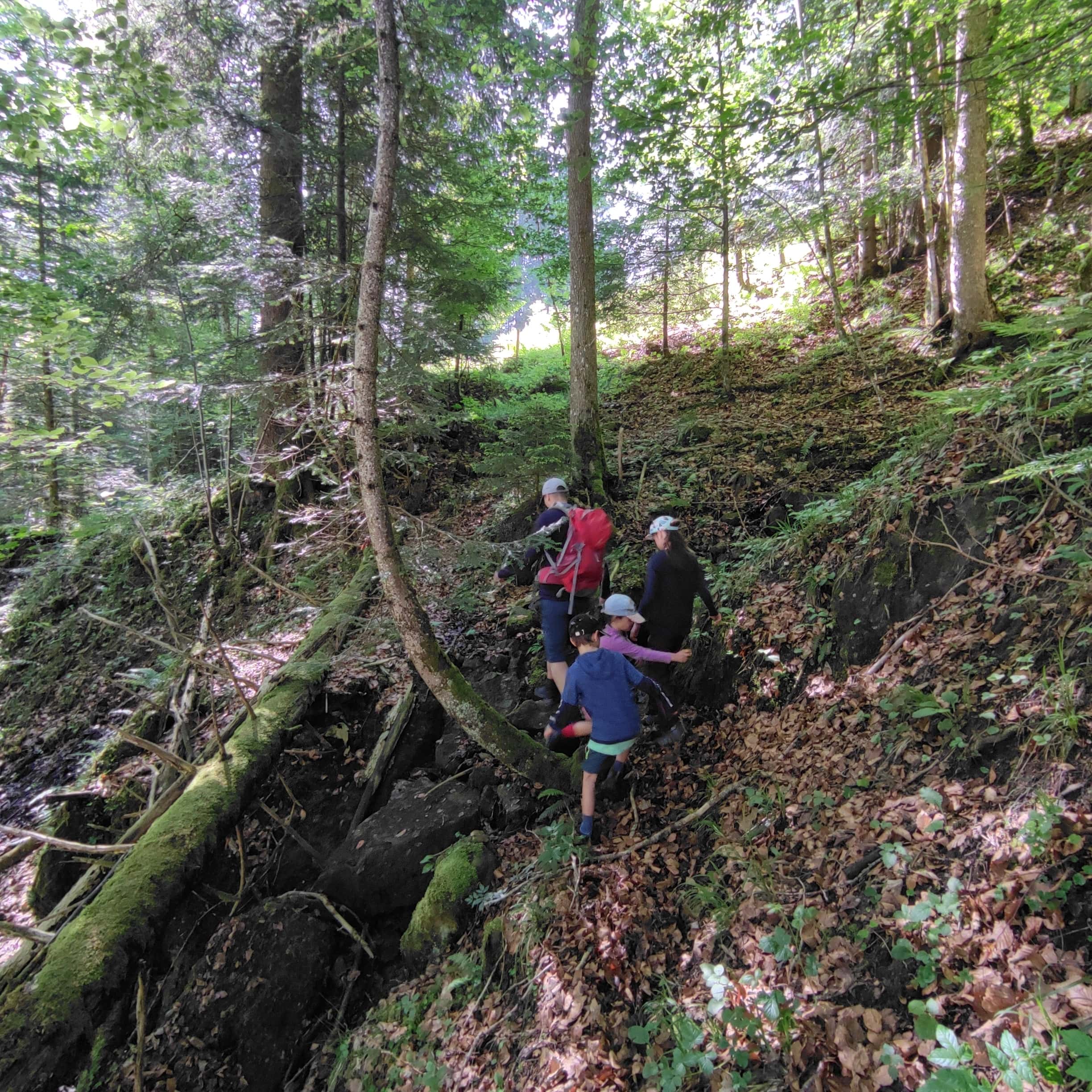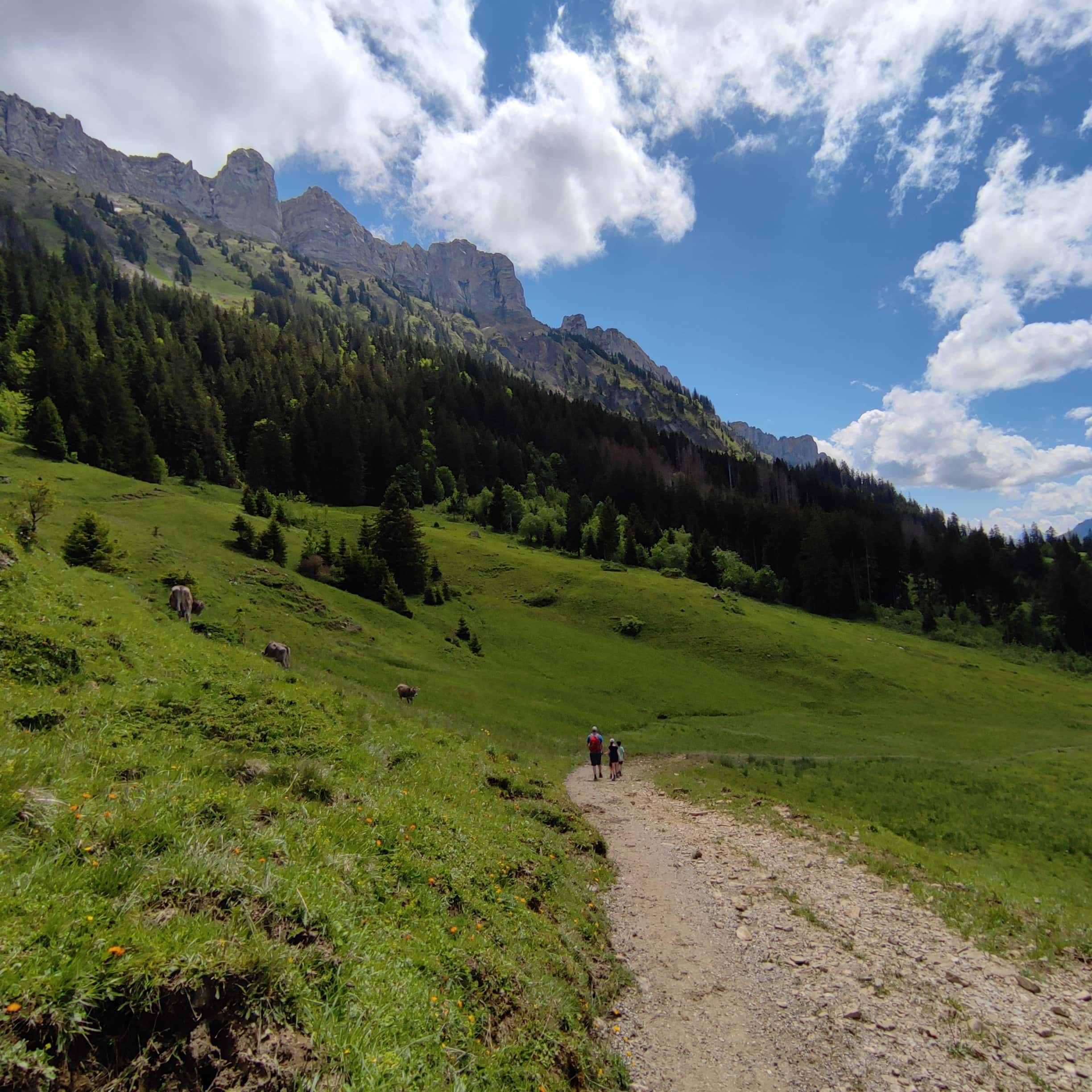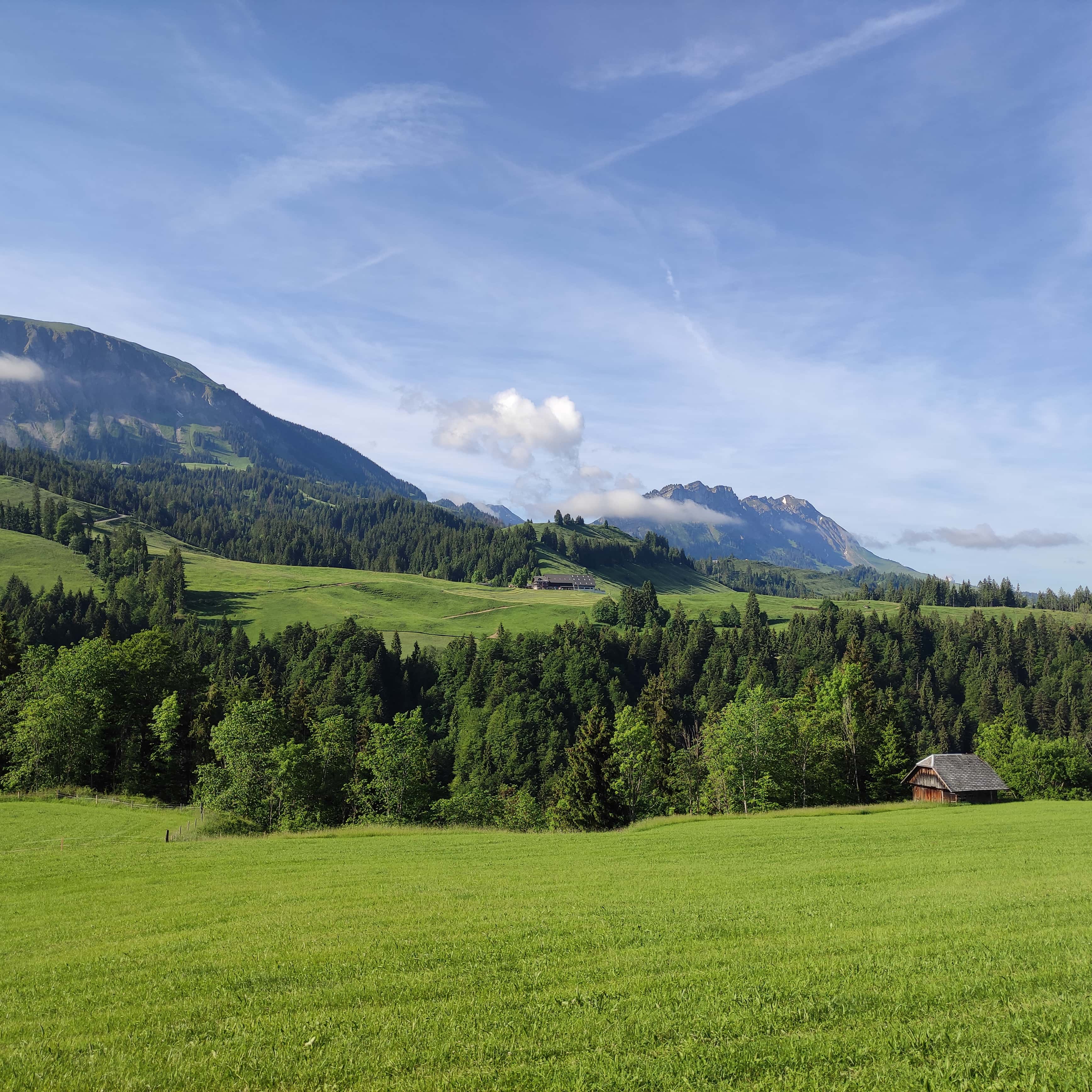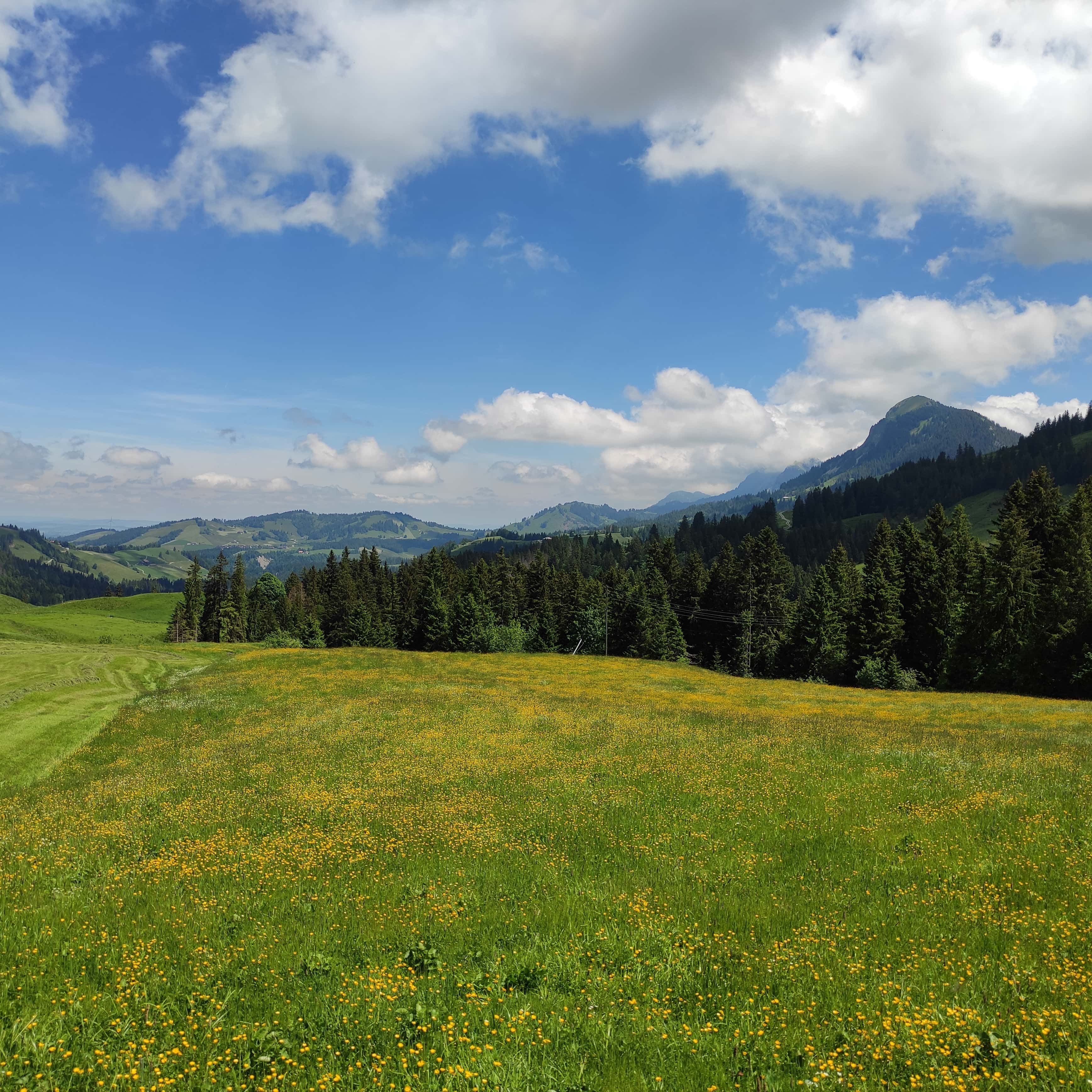 Die erste Etappe dieser Wandersaison. Dort, wo vor 40 Jahren schon kein Weg war, gab es auch – oh Wunder – auch heute keinen mehr. Wobei wir die Grosse Entle immerhin über eine Brücke überqueren konnten. Die Brücke war aber alles andere als vertrauenserweckend. Sie hat aber gehalten und wir sind trockenen Fusses ans andere Ufer gekommen. Auf der anderen Seite kraxelten wir 180 Höhenmeter durch Weide und Sumpf – vermutlich sind die letzten Spaziergänger vor mehr als 40 Jahren hier durchgegangen. Wer das wohl war?! Die Gegend des Biosphärenpark Entlebuch ist landschaftlich sehr schön – wir sind froh, dass wir diese Gegend kennengelernt haben. Leider bekam Louisa Schmerzen im Knie, die sich verstärkt haben im Laufe der Tour. Sie hat durchgehalten. Für die nächste Etappe, die für den folgenden Tag geplant war, hat es dann aber nicht mehr gereicht. Wir sind nach Hause zurückgekehrt und hoffen, dass sich das Knie schnell wieder erholt. Unser Wohnwagen als Standquartier bewährt sich. Die Etappen sind nun immer weiter von Stein entfernt, weshalb wir froh sind über unser fahrbares Schlafzimmer. Zu Hause haben wir endlich begonnen, die Strecke auf der Schweizer Karte auszustecken, damit die Kinder (und auch wir Eltern!) erkennen, was sie eigentlich schon geleistet haben.