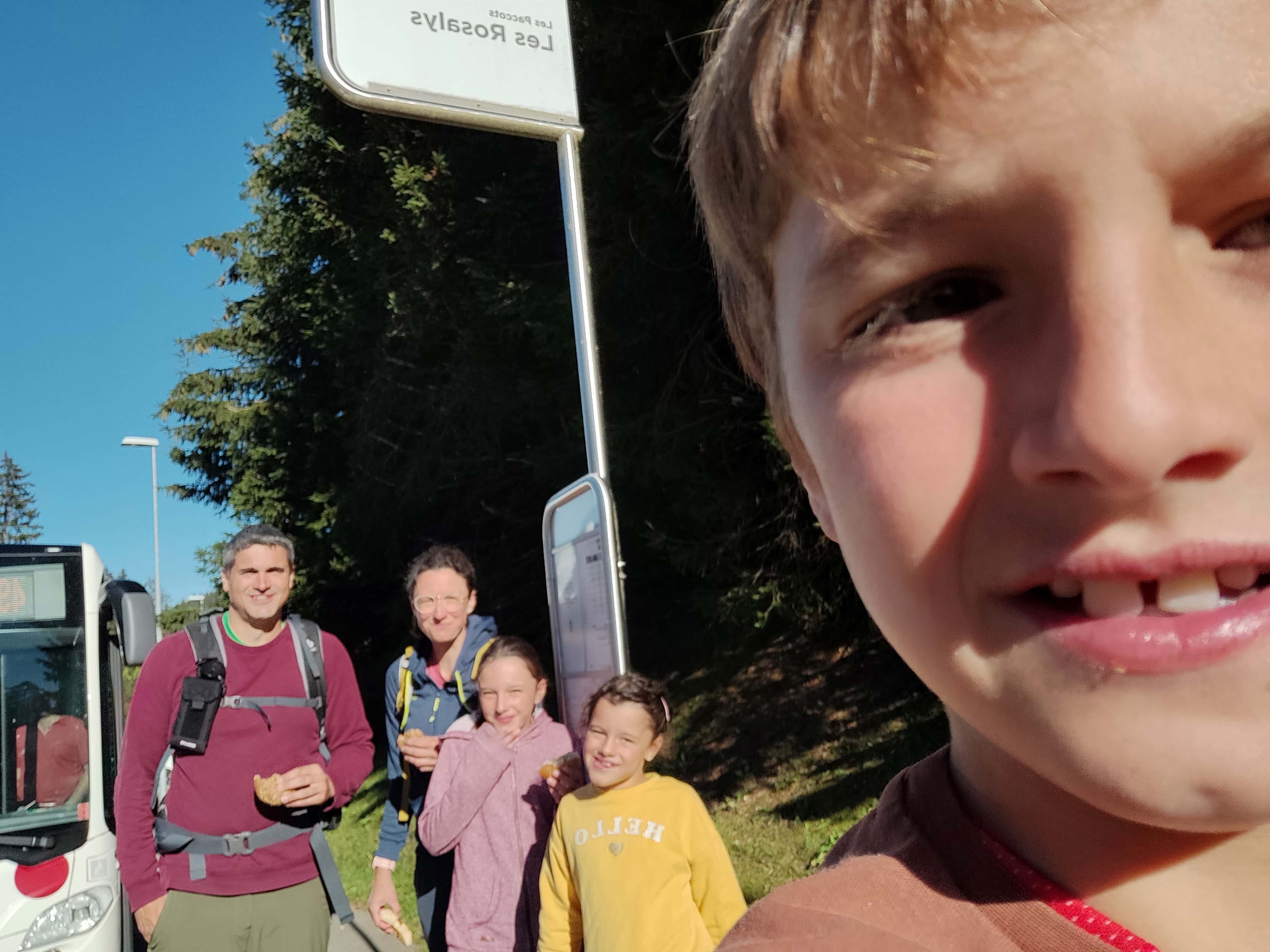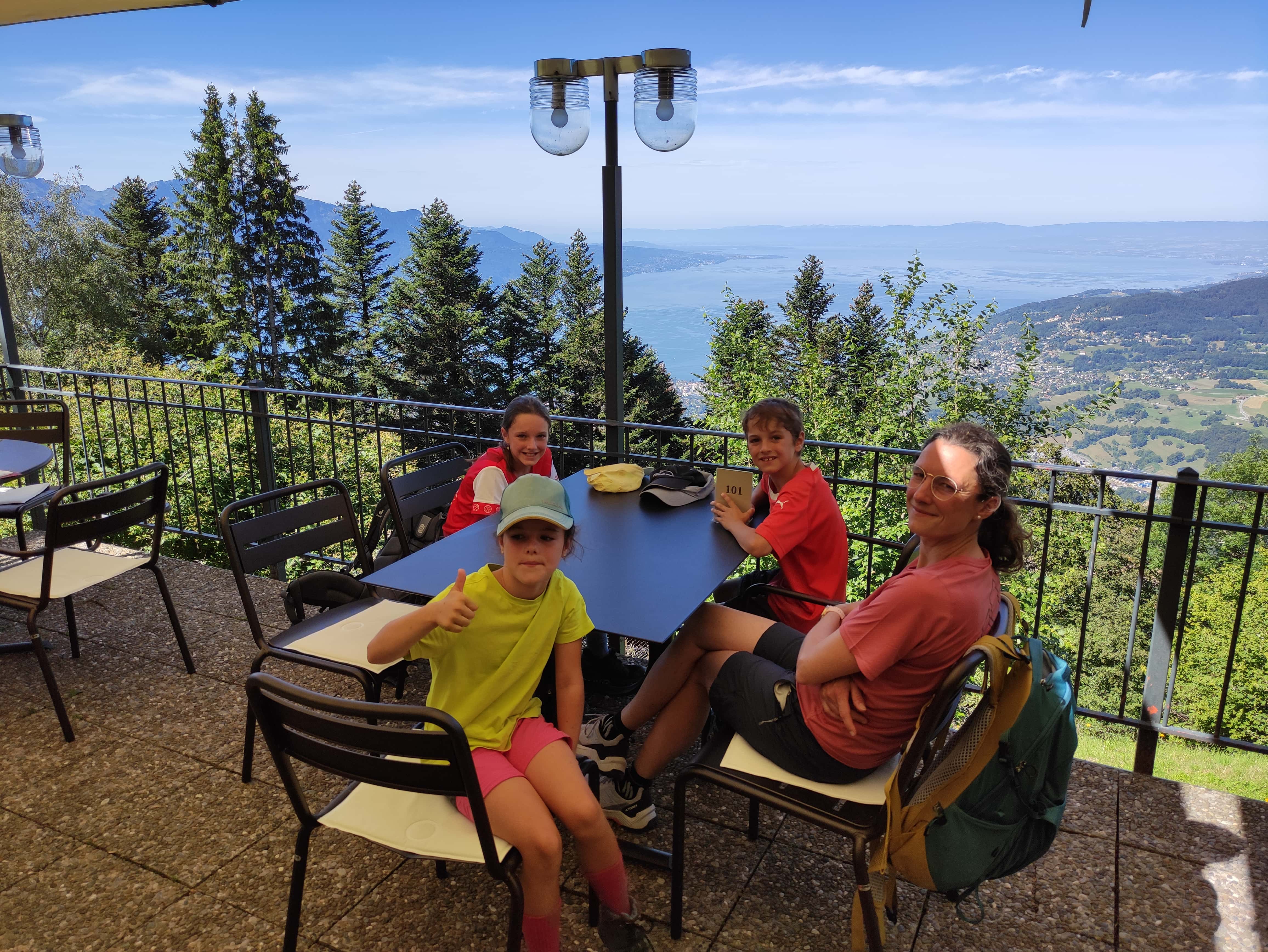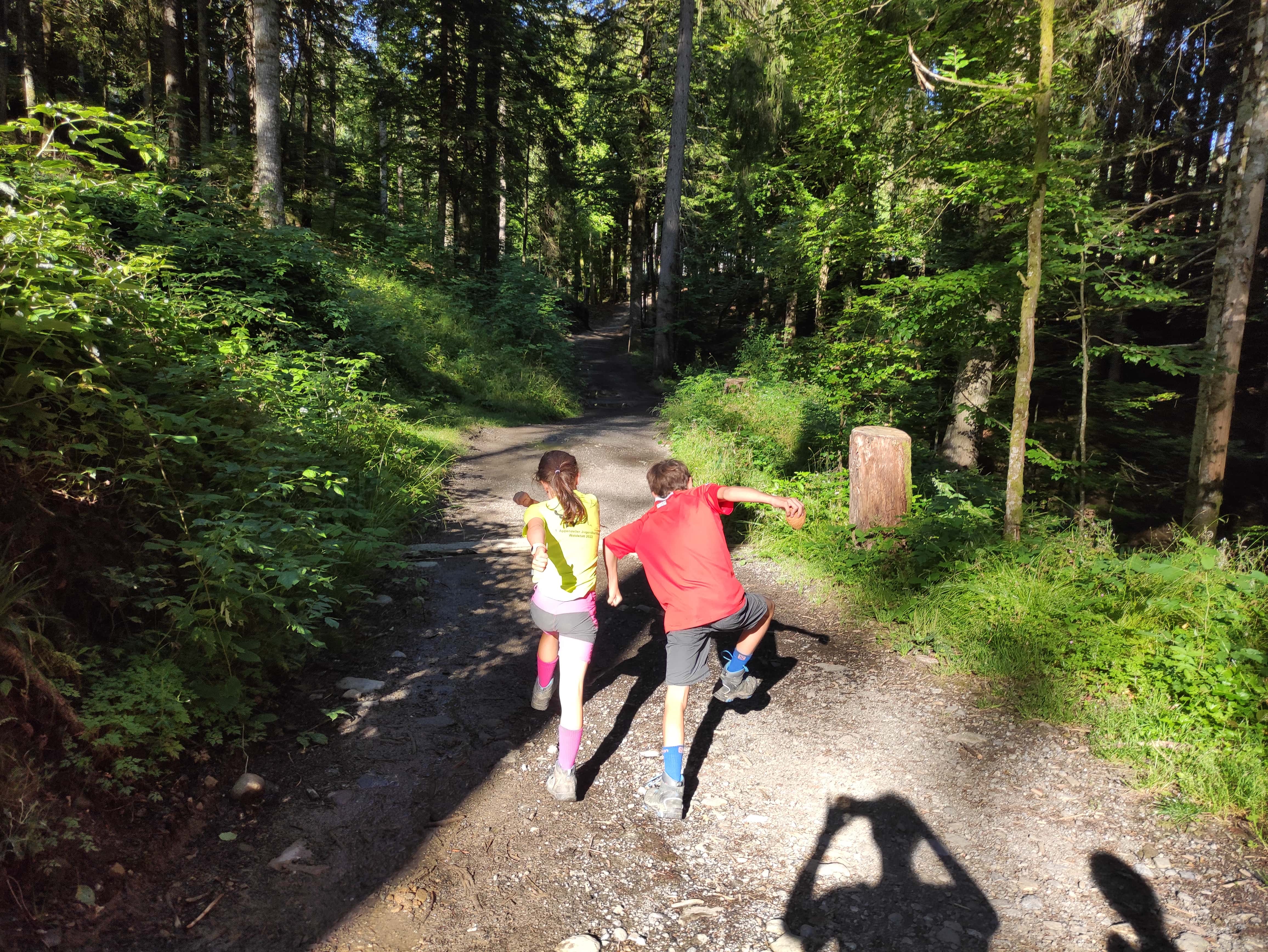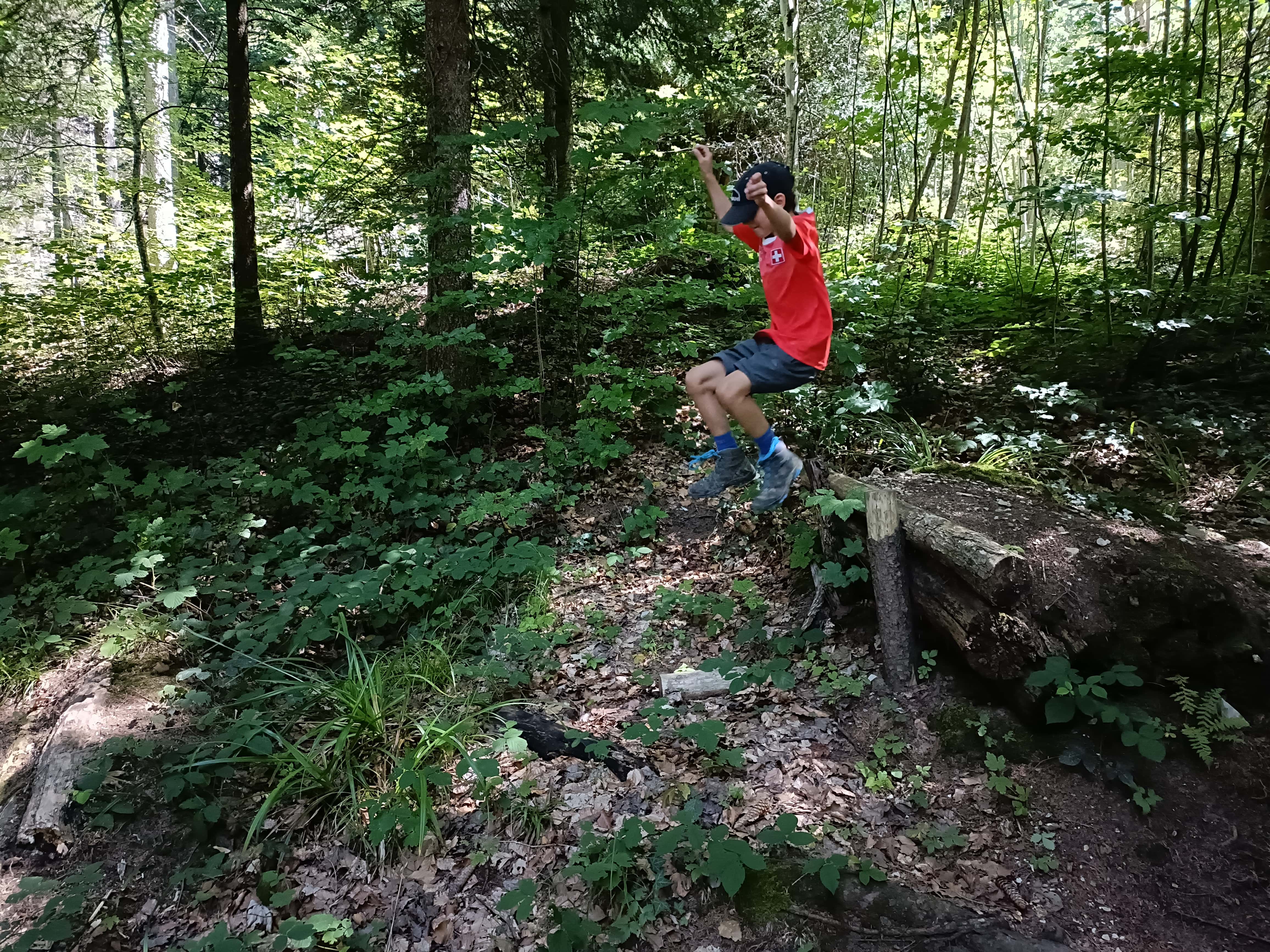 Diese Etappe hat uns sehr gut gefallen. Vor Les Pléiades gibt es ein schönes Naturschutzgebiet mit einem Steg. Die ganze Etappe war äusserst abwechslungsreich. Den steilen Abstieg von Les Pléiades haben wir abgekürzt über einen Biketrail (den nicht mal Fabio fahren würde!). Die Kinder nutzten die grossen Chancen, ihre Sprungkünste zum Besten zu geben.