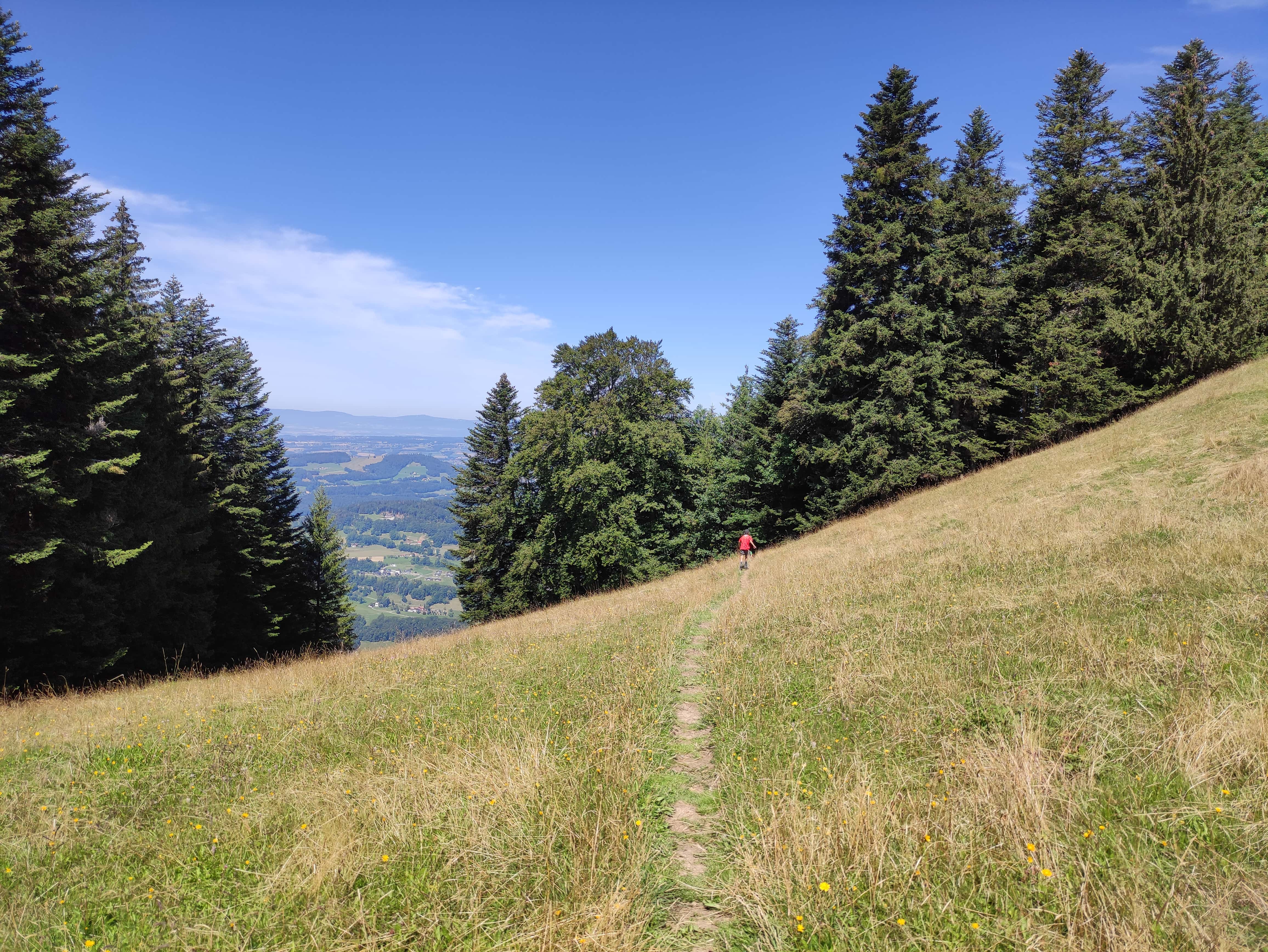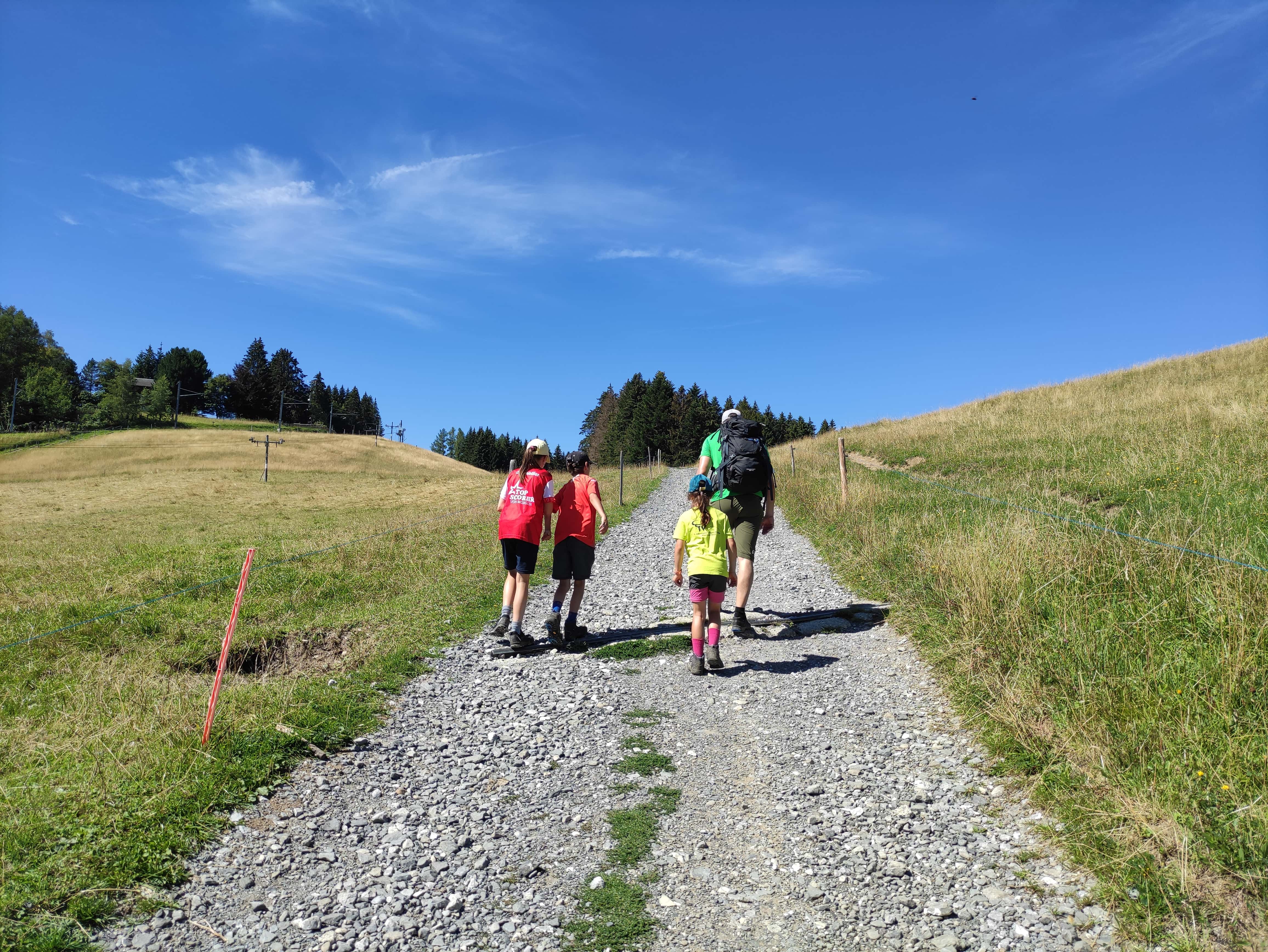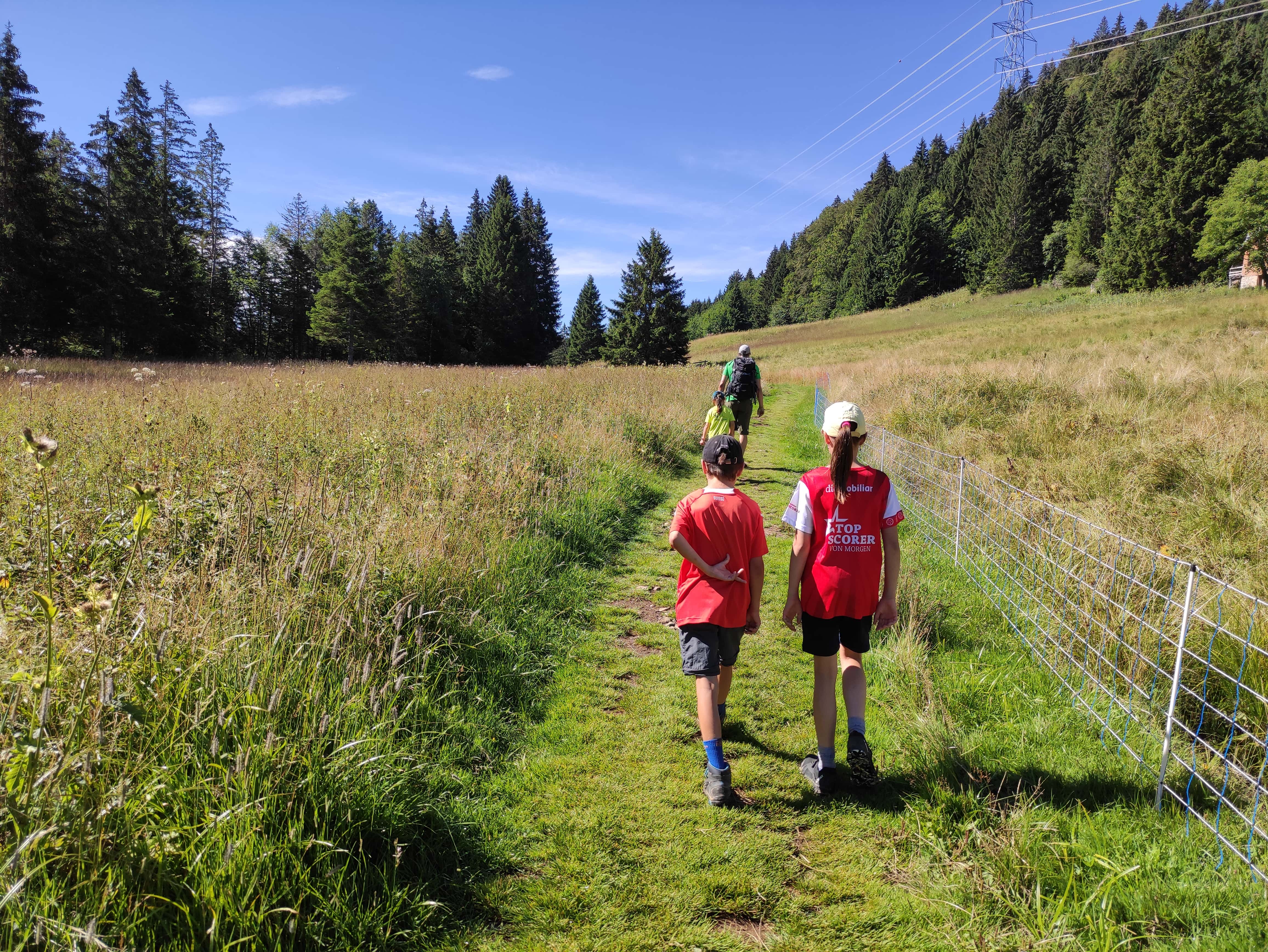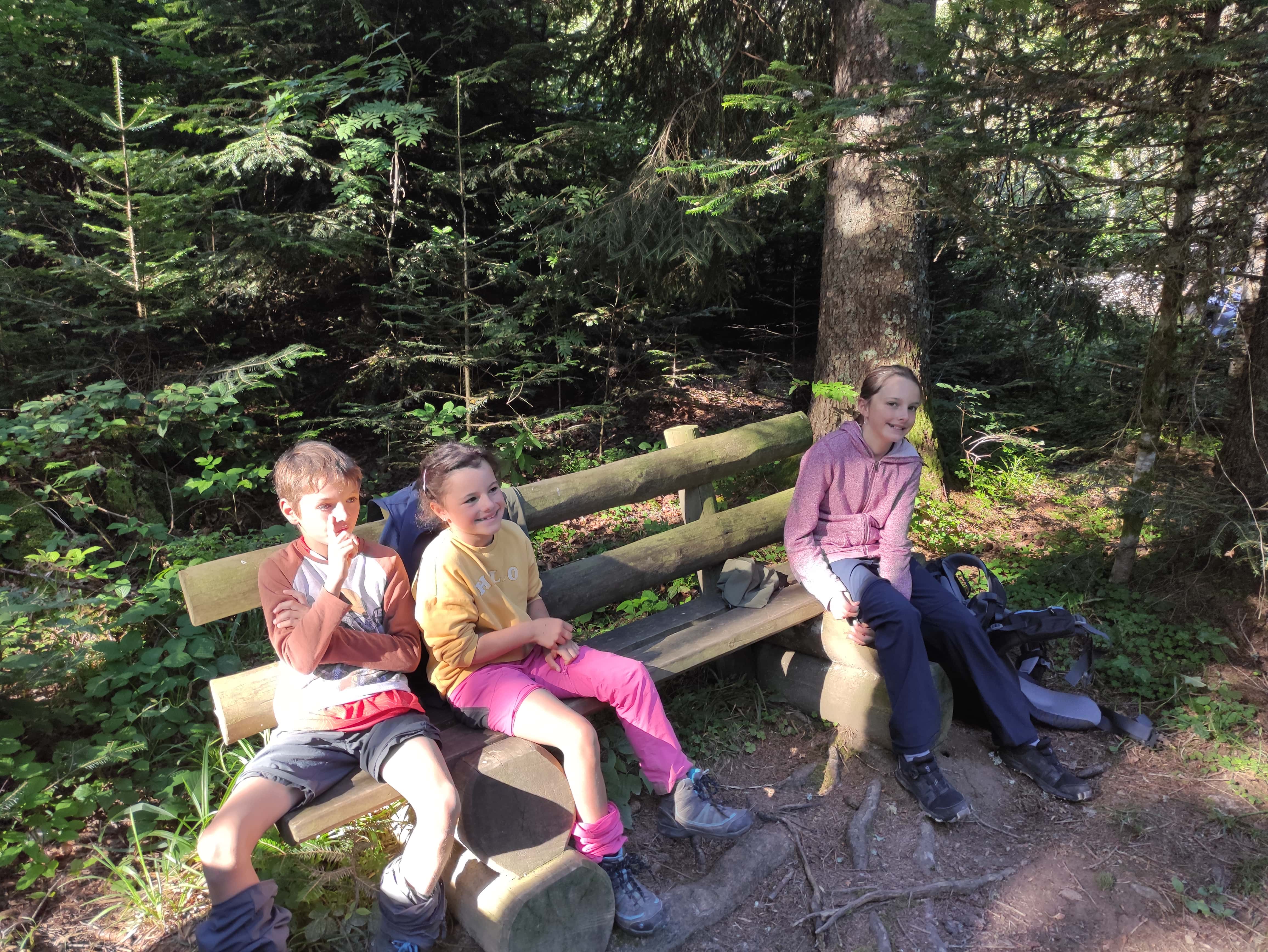 Diese Etappe hat uns sehr gut gefallen. Vor Les Pléiades gibt es ein schönes Naturschutzgebiet mit einem Steg. Die ganze Etappe war äusserst abwechslungsreich. Den steilen Abstieg von Les Pléiades haben wir abgekürzt über einen Biketrail (den nicht mal Fabio fahren würde!). Die Kinder nutzten die grossen Chancen, ihre Sprungkünste zum Besten zu geben.
