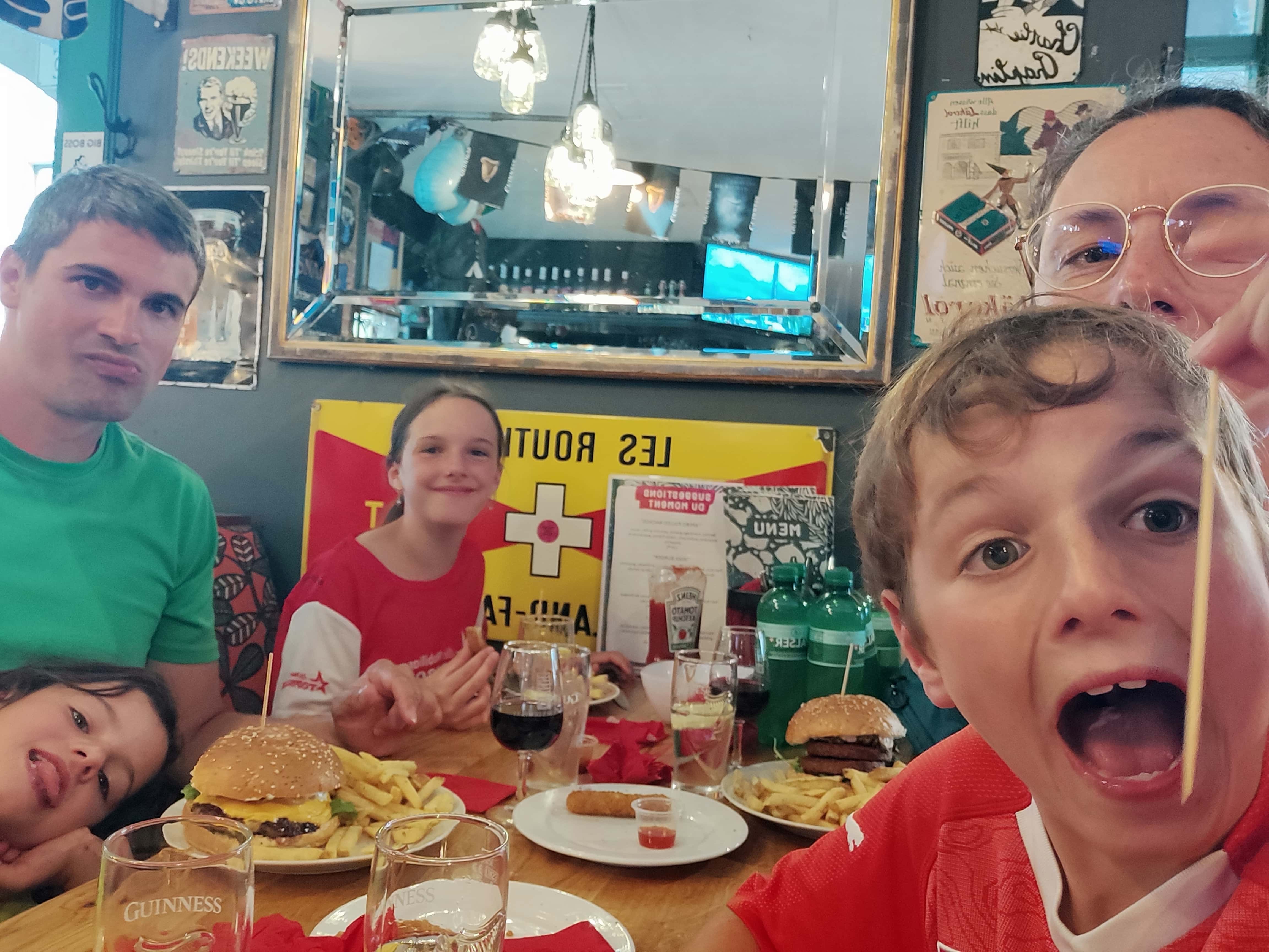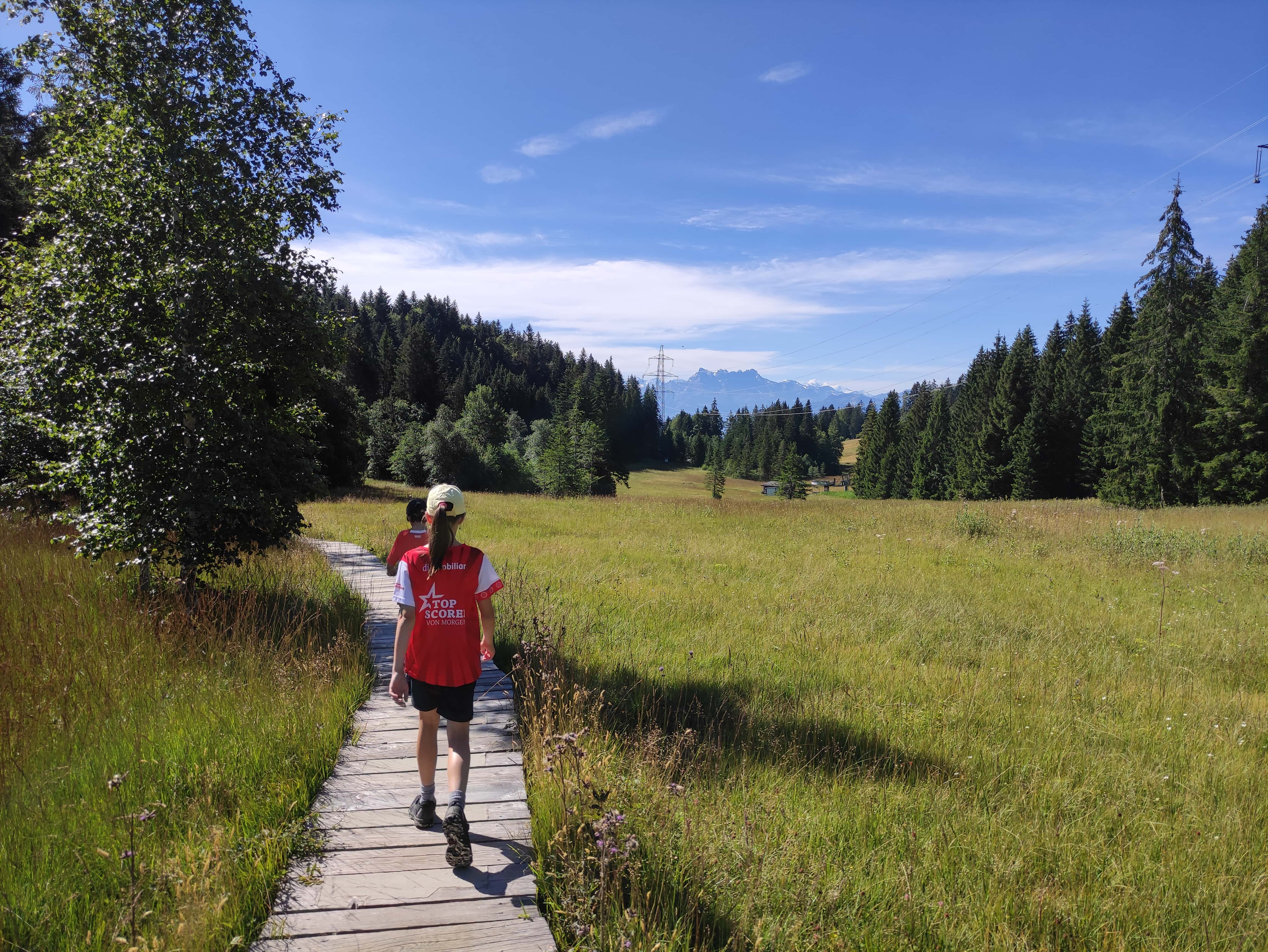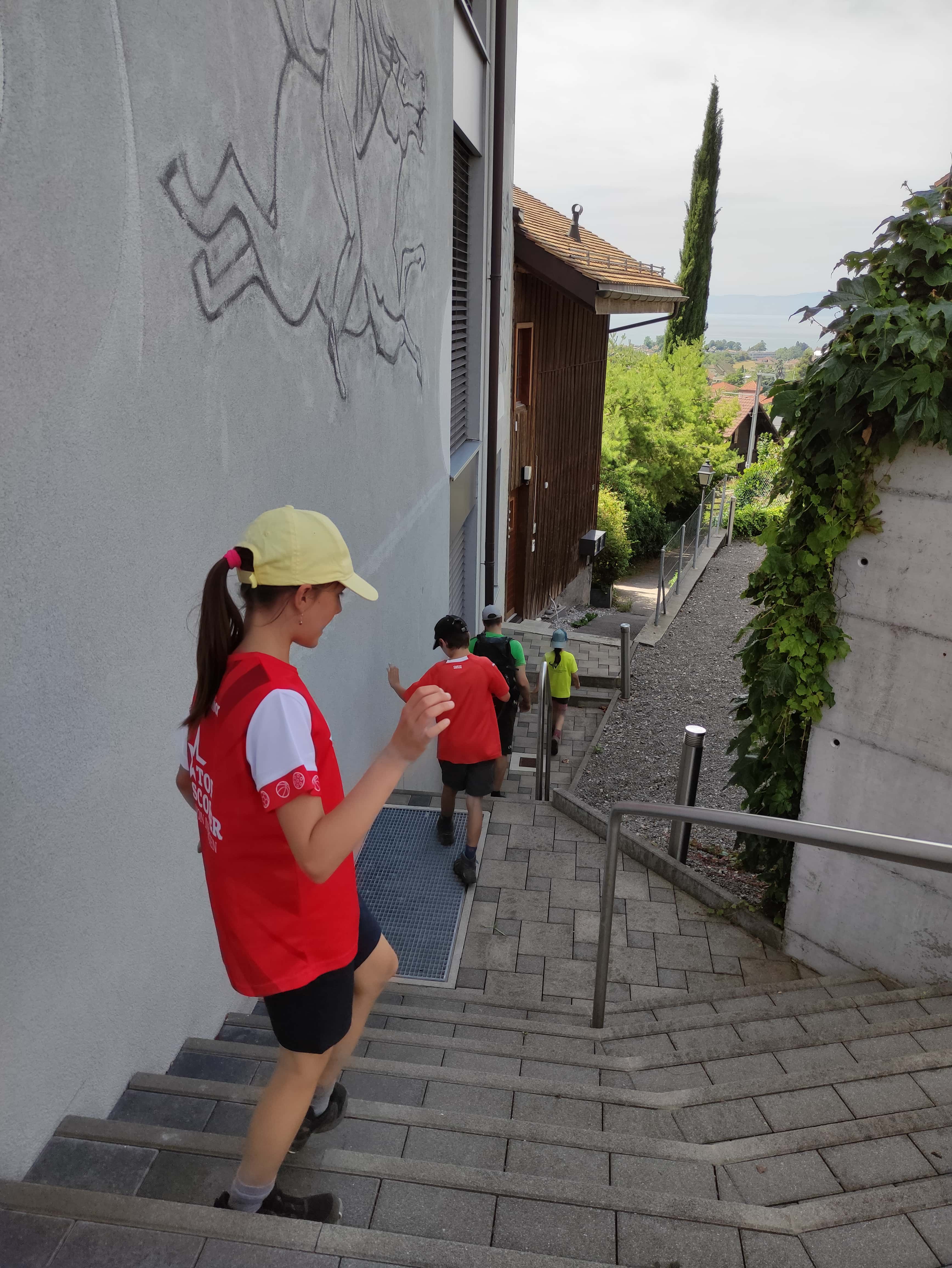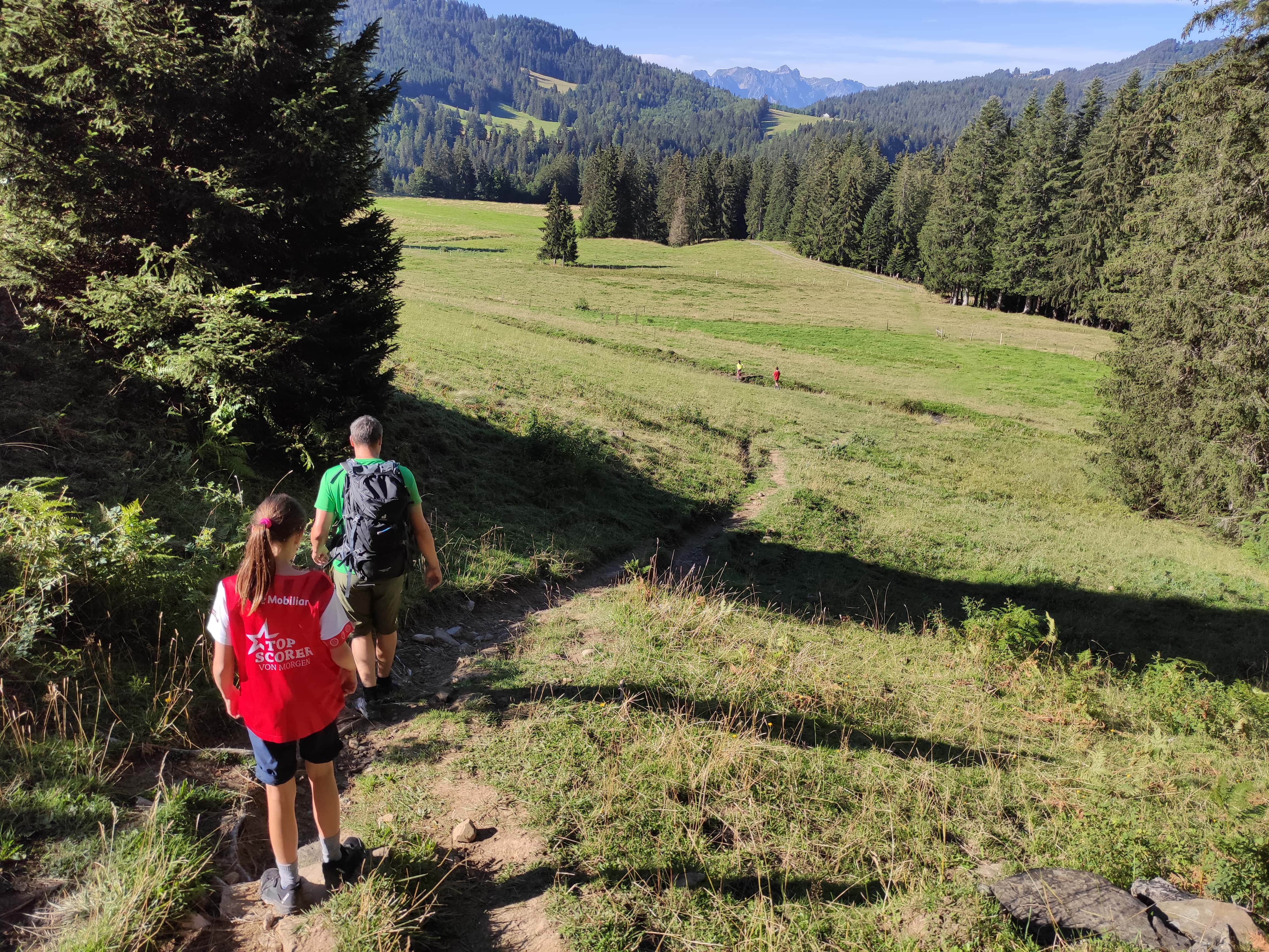 Diese Etappe hat uns sehr gut gefallen. Vor Les Pléiades gibt es ein schönes Naturschutzgebiet mit einem Steg. Die ganze Etappe war äusserst abwechslungsreich. Den steilen Abstieg von Les Pléiades haben wir abgekürzt über einen Biketrail (den nicht mal Fabio fahren würde!). Die Kinder nutzten die grossen Chancen, ihre Sprungkünste zum Besten zu geben.