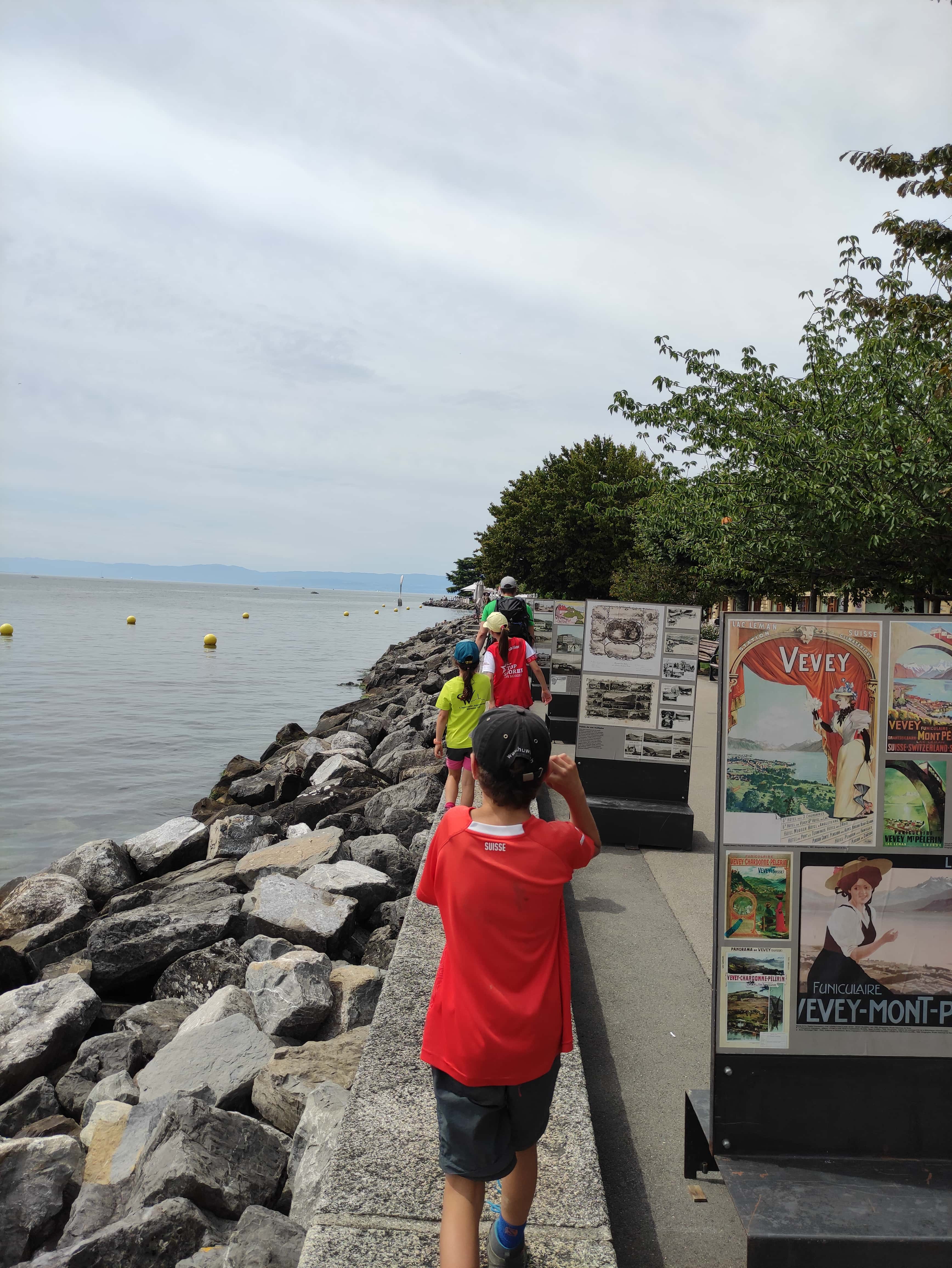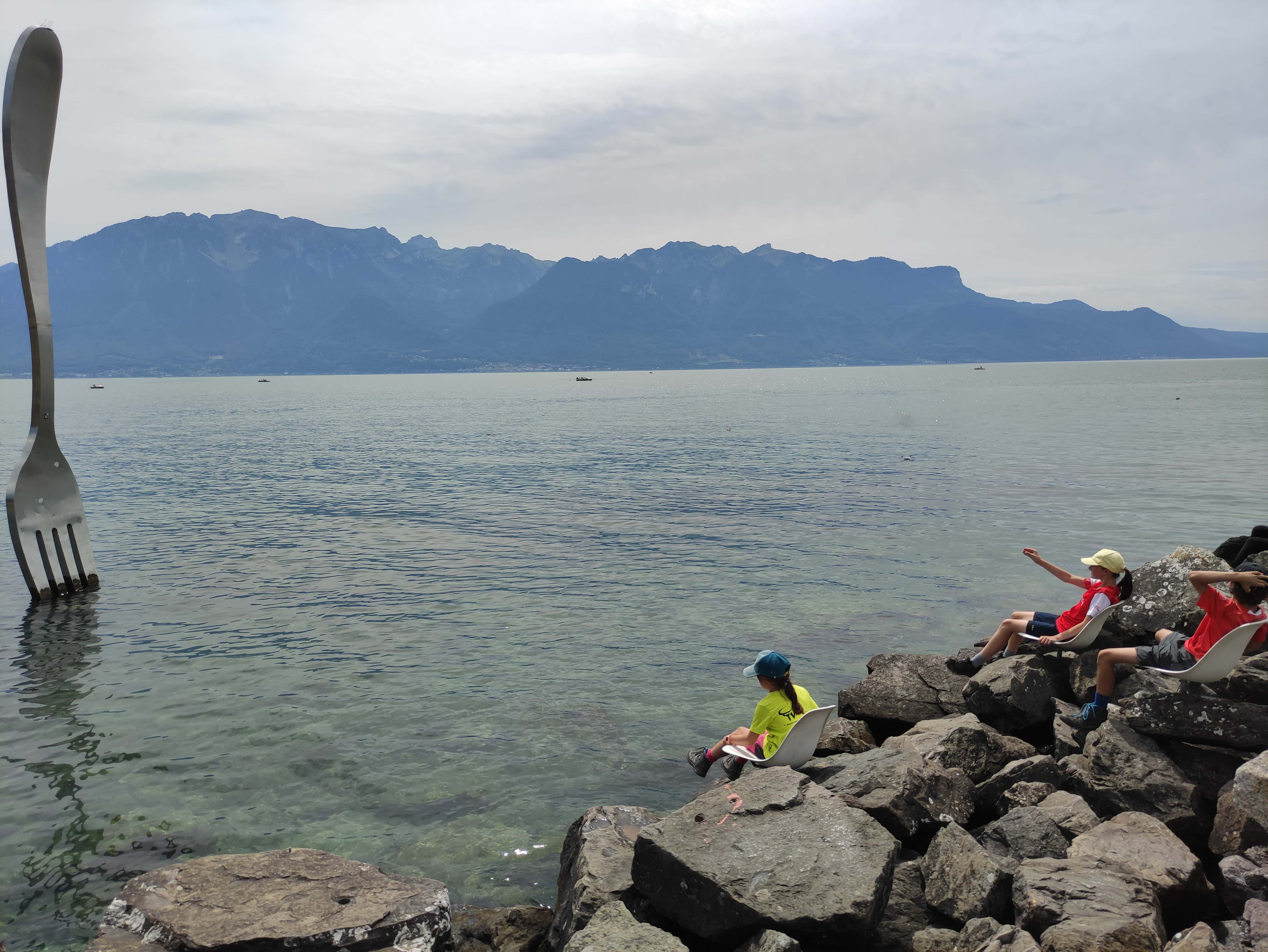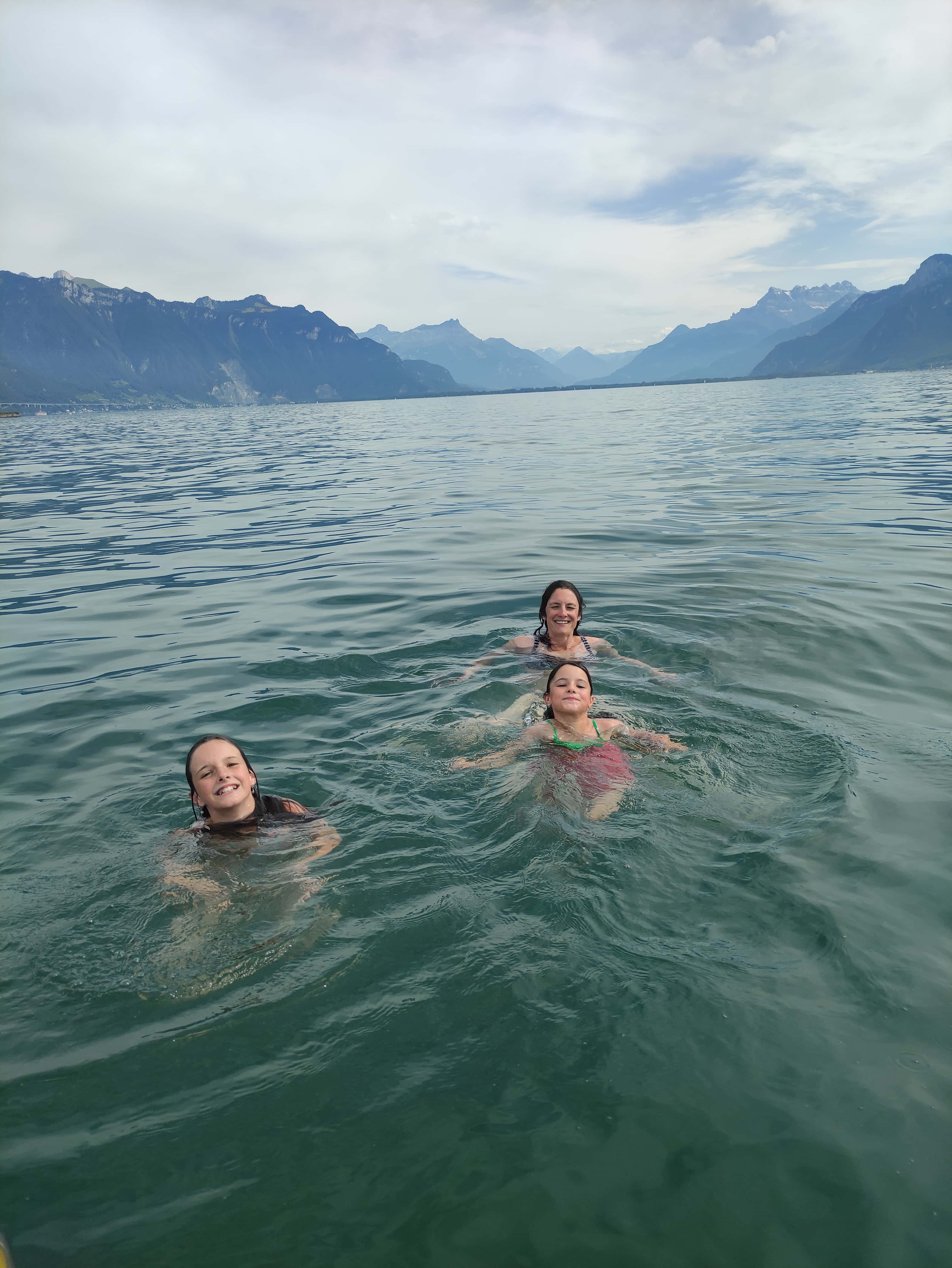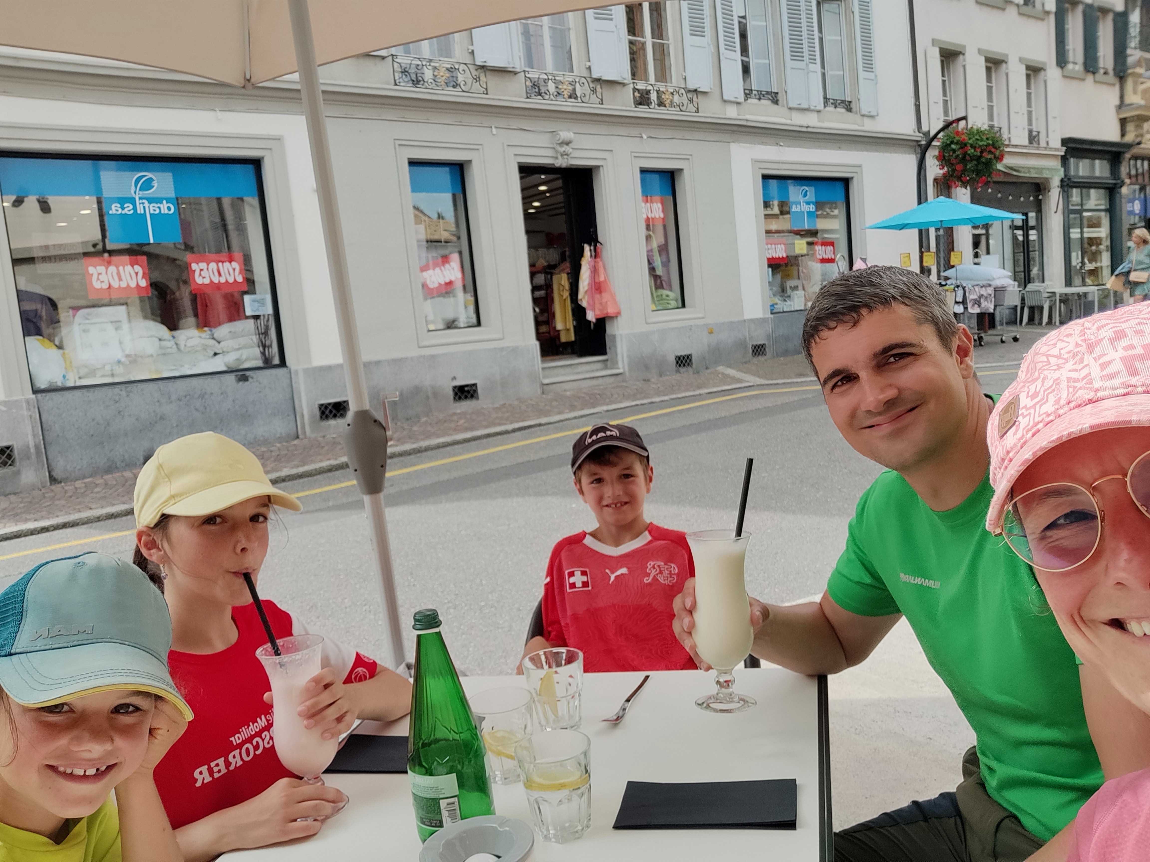 Was für ein Triumph! Wir haben es an den Genfersee geschafft. Mehr als 350 km liegen hinter uns (und stecken in unseren Beinen!). Stolz sind wir in Vevey einmarschiert. Wer hätte gedacht, dass wir das mit den Kindern schaffen würden? Und doch sind wir noch nicht am Ziel. Unser Ziel ist Genf, das wir in mindestens drei weiteren Etappen am französischen Ufer des Sees erreichen wollen. Als Belohnung für das bereits Geleistete haben wir ein Pedalo gemietet und uns ein Bad im Genfersee gegönnt.
