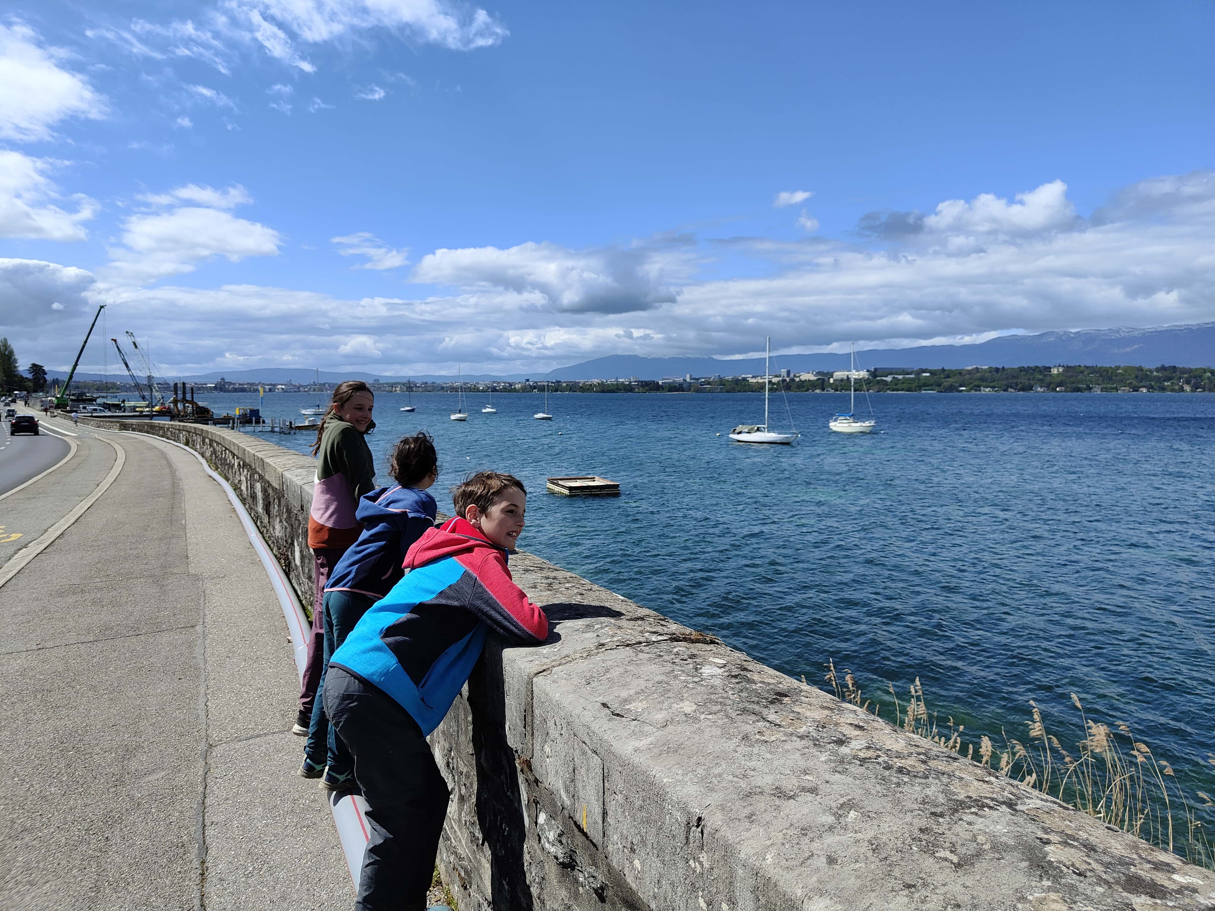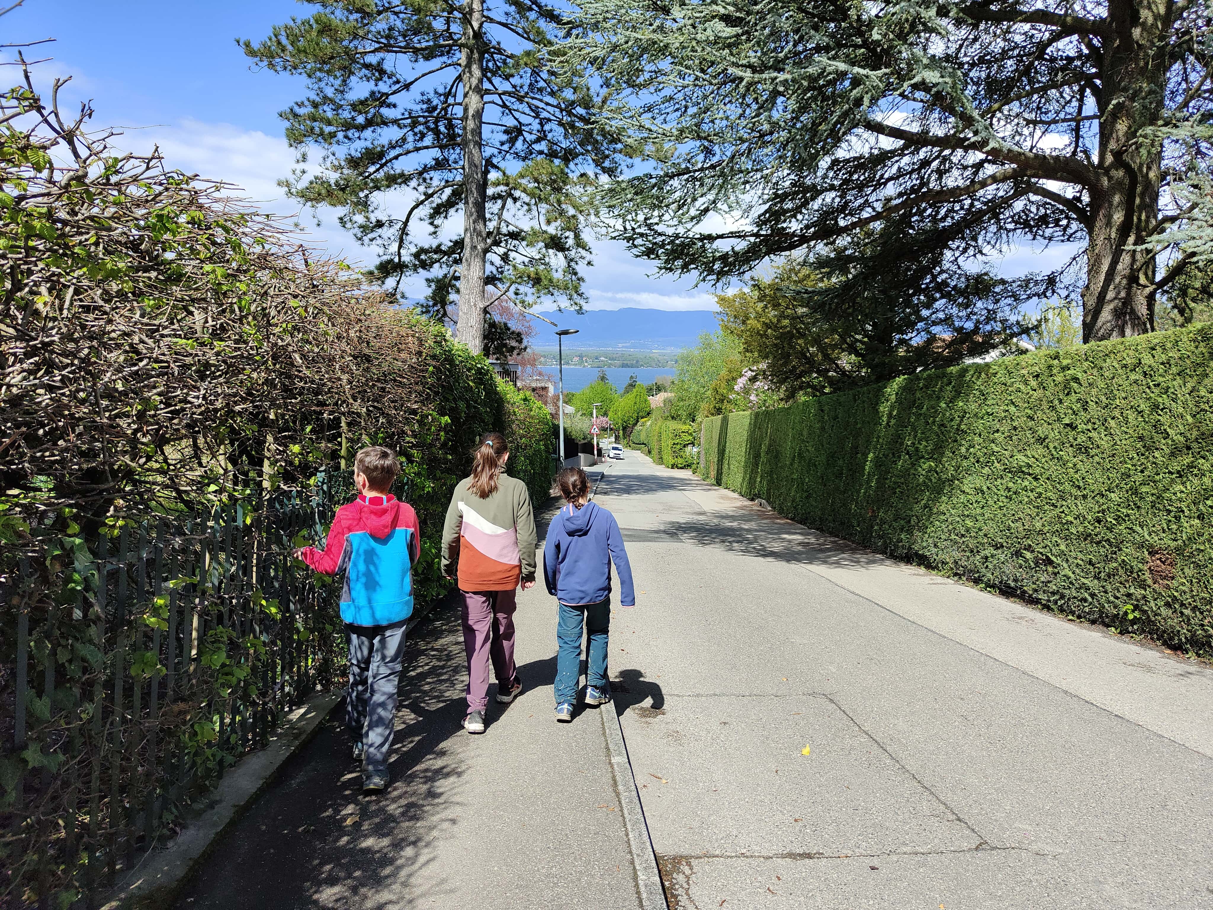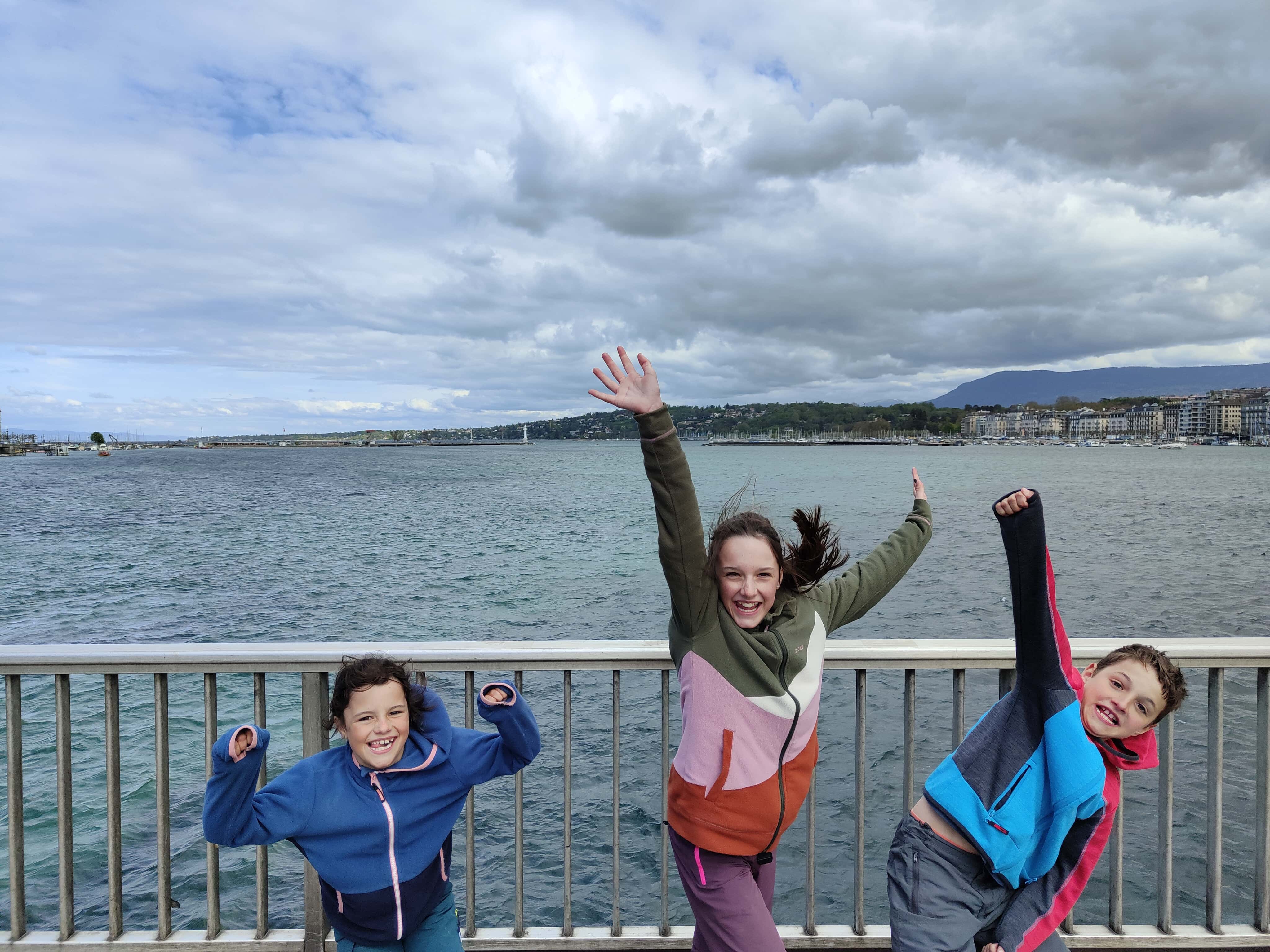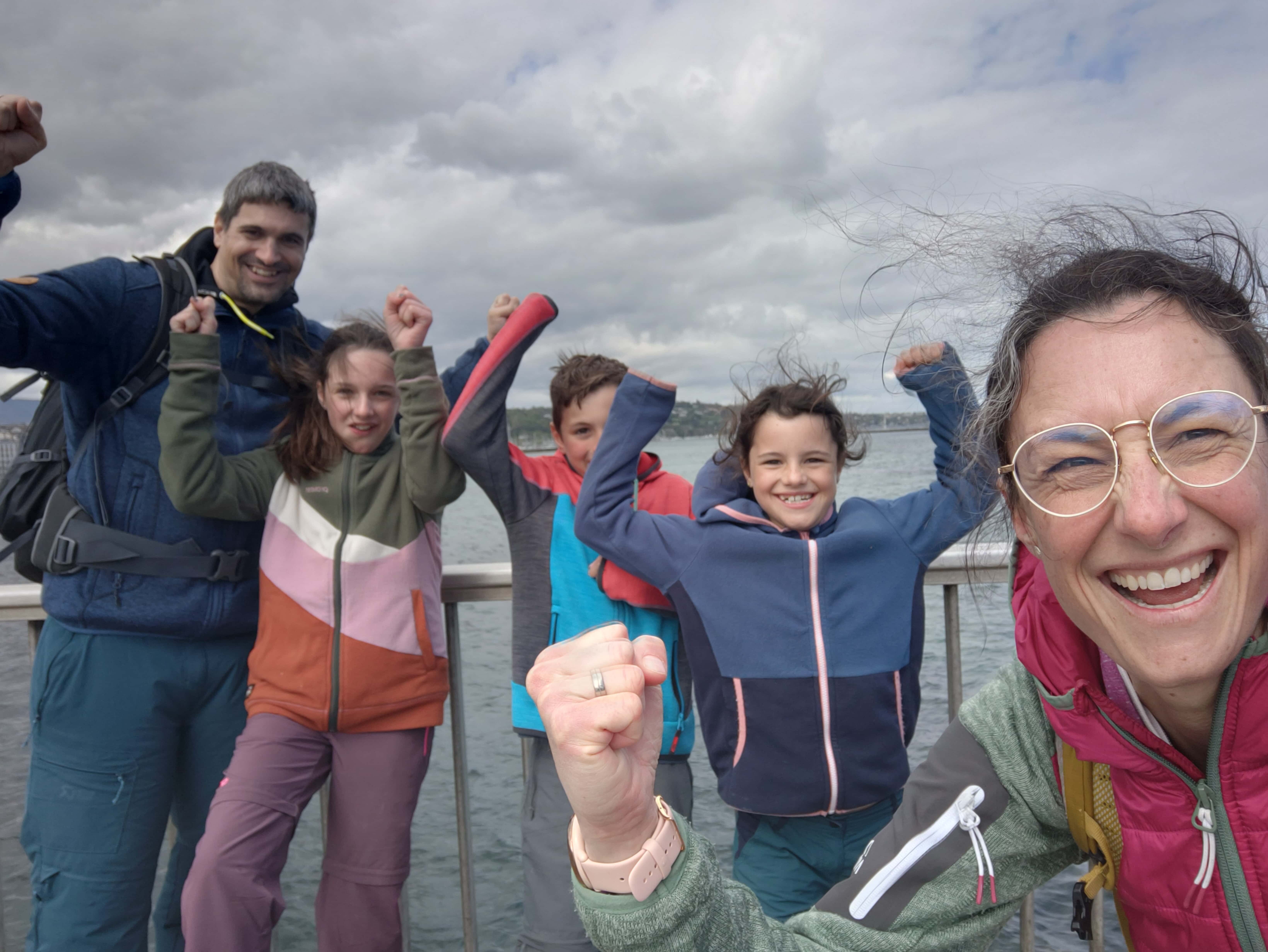 Und dann war es soweit: die letzte Etappe stand uns bevor. Das Wetter in unserer Ferienwoche meinte es wirklich gut mit uns. Kalt, aber trocken war es heute. Die heutige Etappe war eigentlich ein langer Spaziergang. Keine Höhendifferenzen mehr, die überschritten werden mussten. Das Restaurant Cheval Blanc in Carre d’Arval gibt es noch immer – mit stattlichen Preisen! Auch können wir die exakt grandlinig angeordneten Reben bestätigen. Wir schritten dem Genfersee in zügigem Tempo entgegen und der Moment, als dieser in unser Blickfeld kam, ist unbeschreiblich. Die letzten Kilometer spazierten wir in Schlendertempo dem Quai entlang und genossen den Blick auf die immer näher kommende Stadt Genève. Wir beschlossen unsere Schweiz-Durchquerung auf der Pont du Mont-Blanc. Was für ein wunderschöner, würdiger Schlusspunkt.