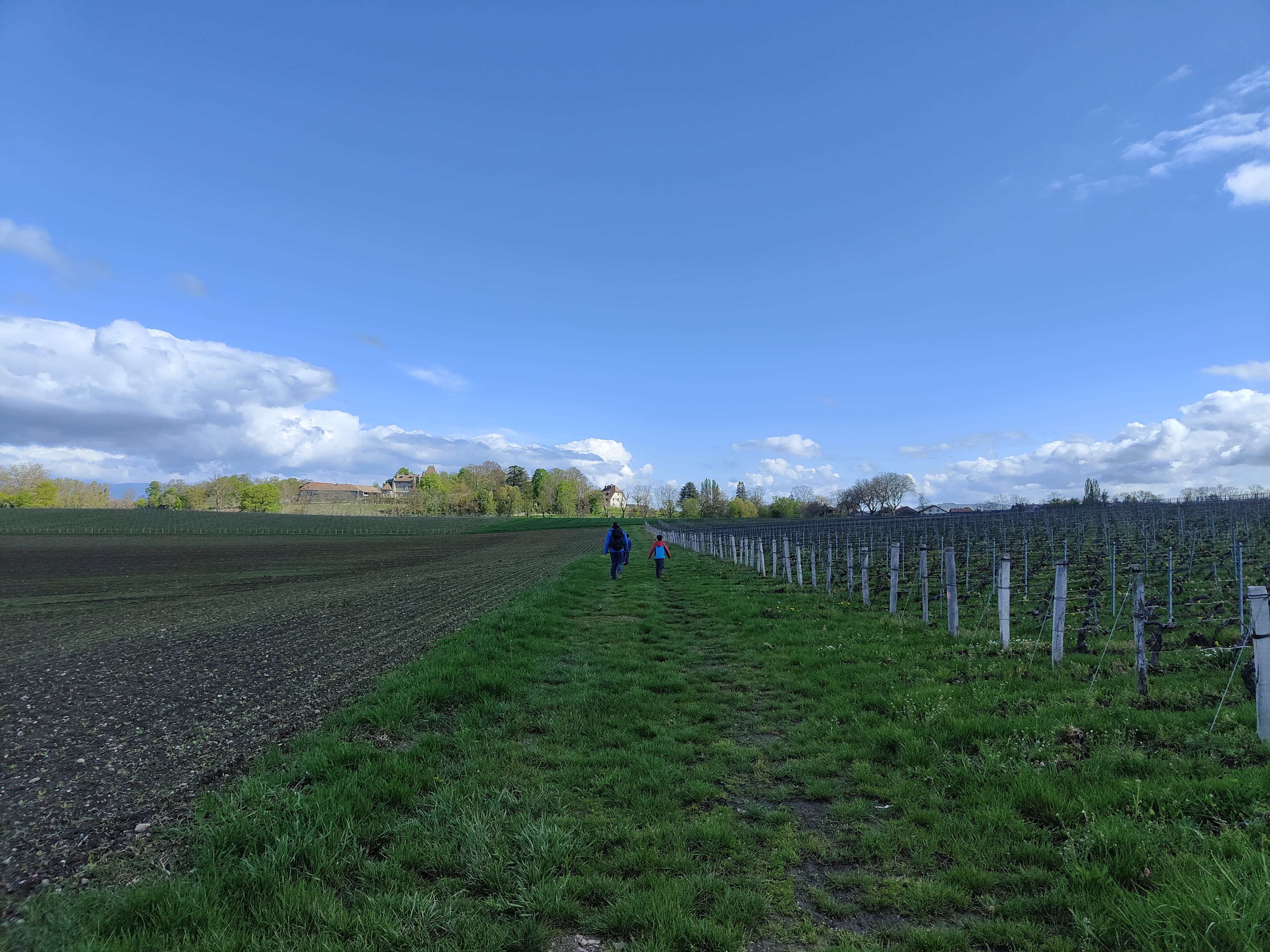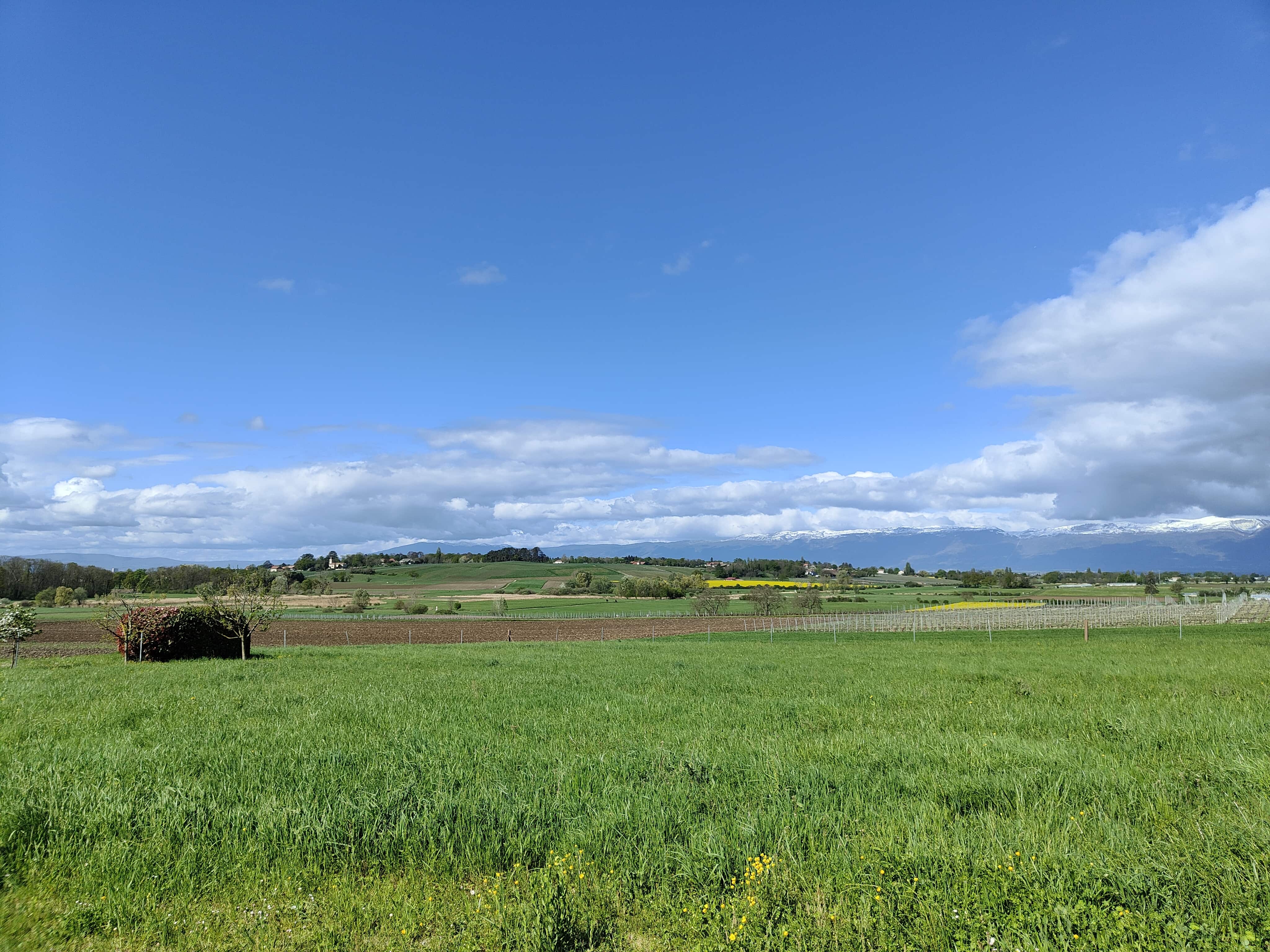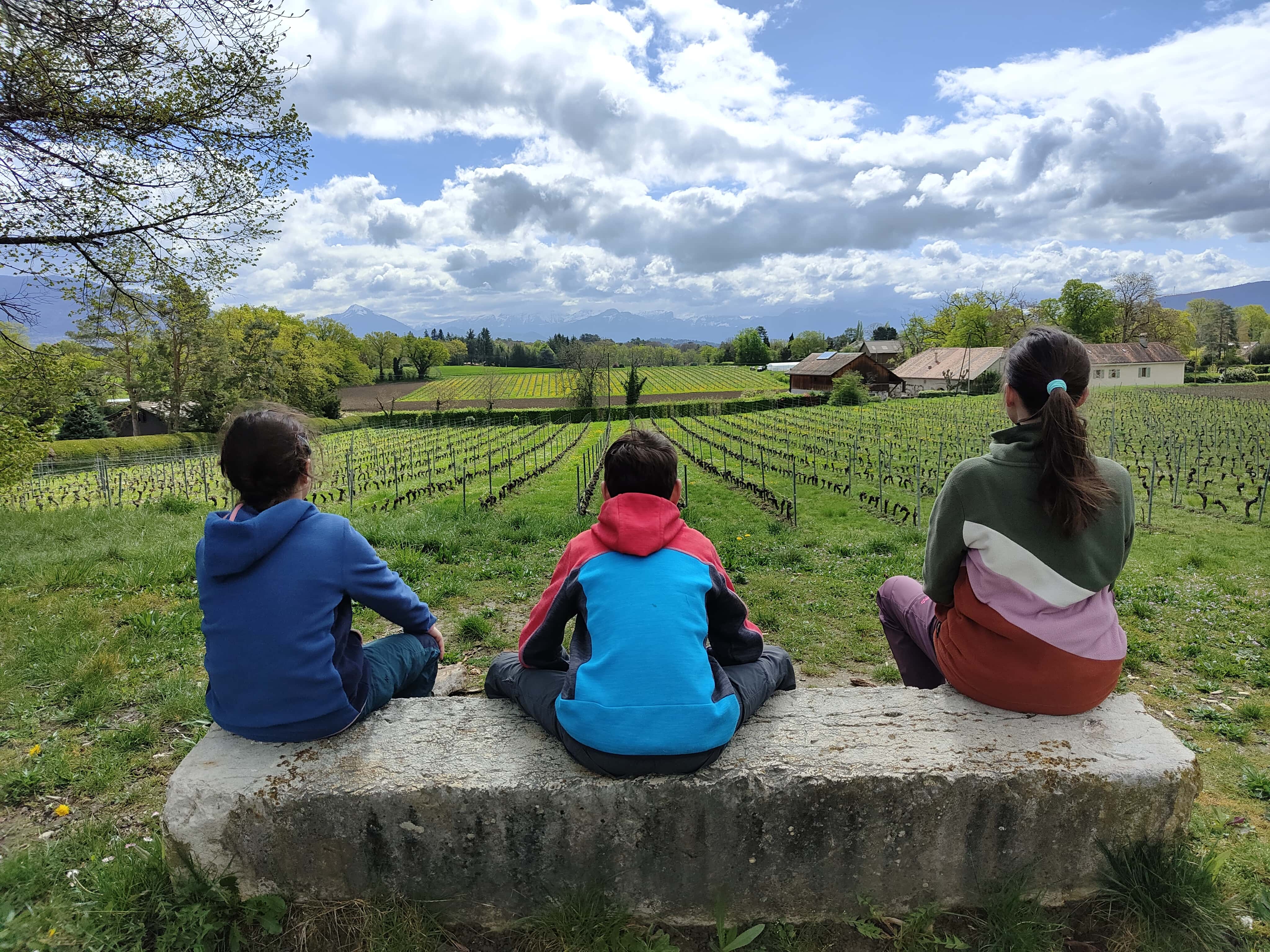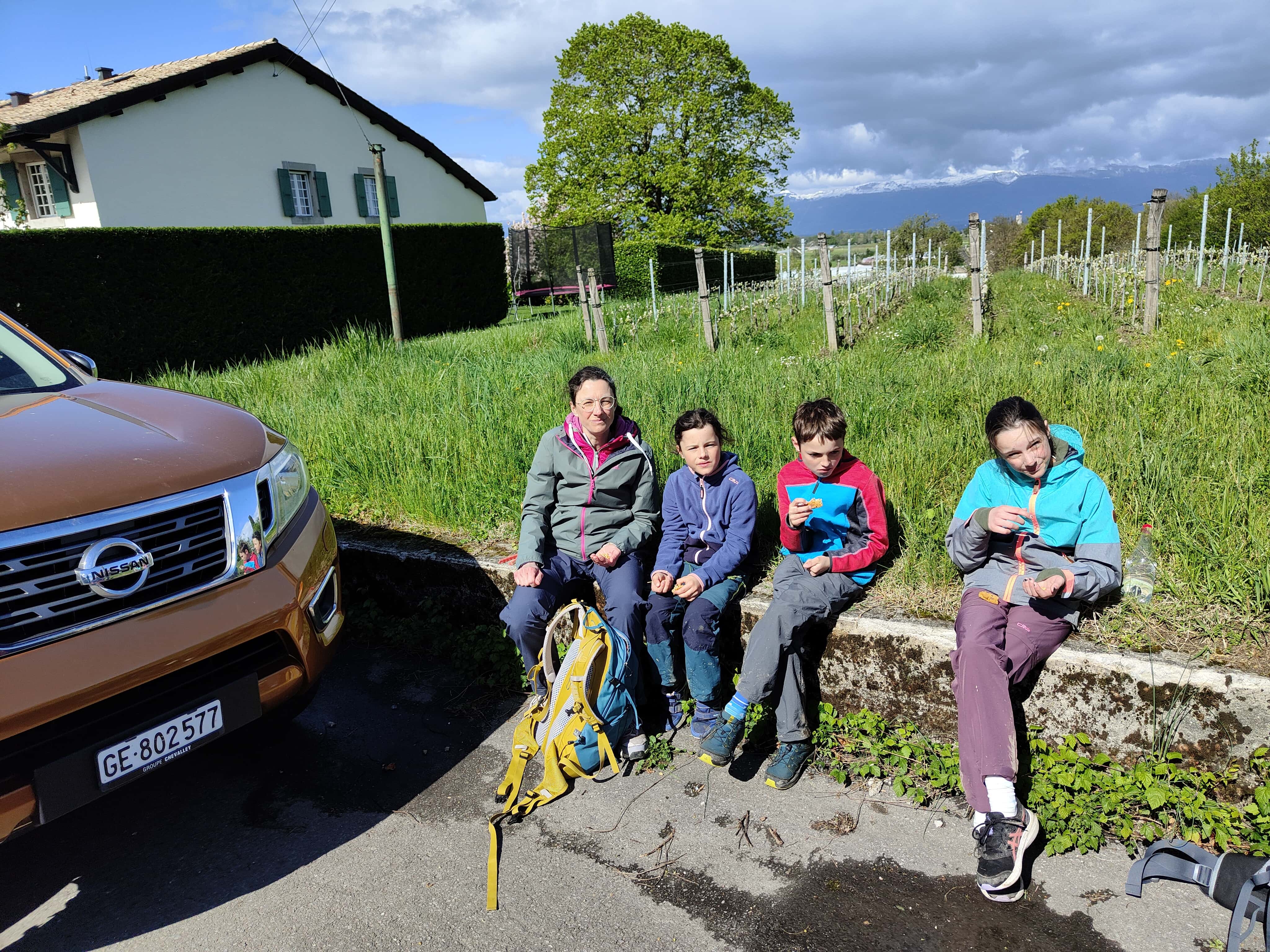 Und dann war es soweit: die letzte Etappe stand uns bevor. Das Wetter in unserer Ferienwoche meinte es wirklich gut mit uns. Kalt, aber trocken war es heute. Die heutige Etappe war eigentlich ein langer Spaziergang. Keine Höhendifferenzen mehr, die überschritten werden mussten. Das Restaurant Cheval Blanc in Carre d’Arval gibt es noch immer – mit stattlichen Preisen! Auch können wir die exakt grandlinig angeordneten Reben bestätigen. Wir schritten dem Genfersee in zügigem Tempo entgegen und der Moment, als dieser in unser Blickfeld kam, ist unbeschreiblich. Die letzten Kilometer spazierten wir in Schlendertempo dem Quai entlang und genossen den Blick auf die immer näher kommende Stadt Genève. Wir beschlossen unsere Schweiz-Durchquerung auf der Pont du Mont-Blanc. Was für ein wunderschöner, würdiger Schlusspunkt.