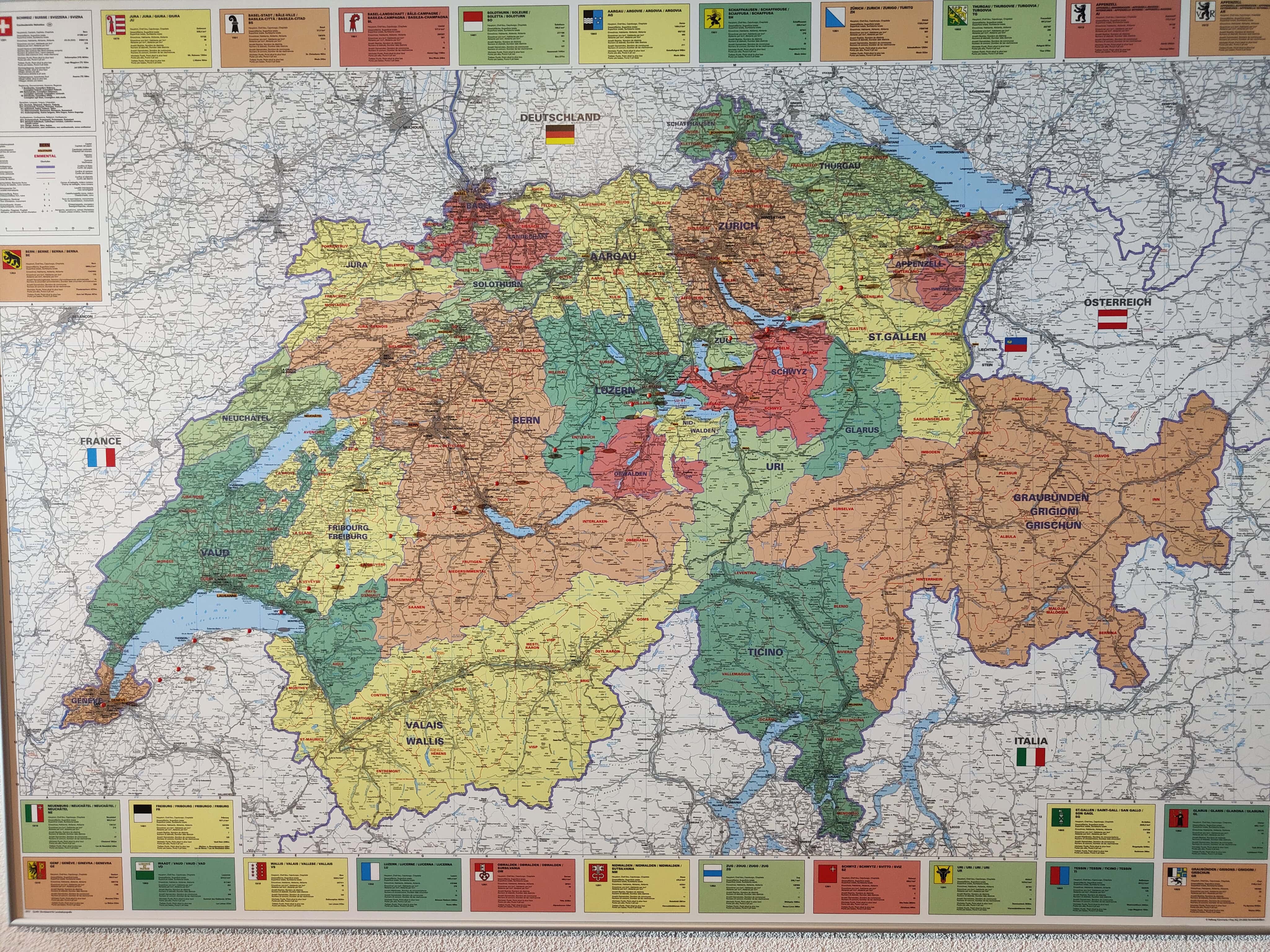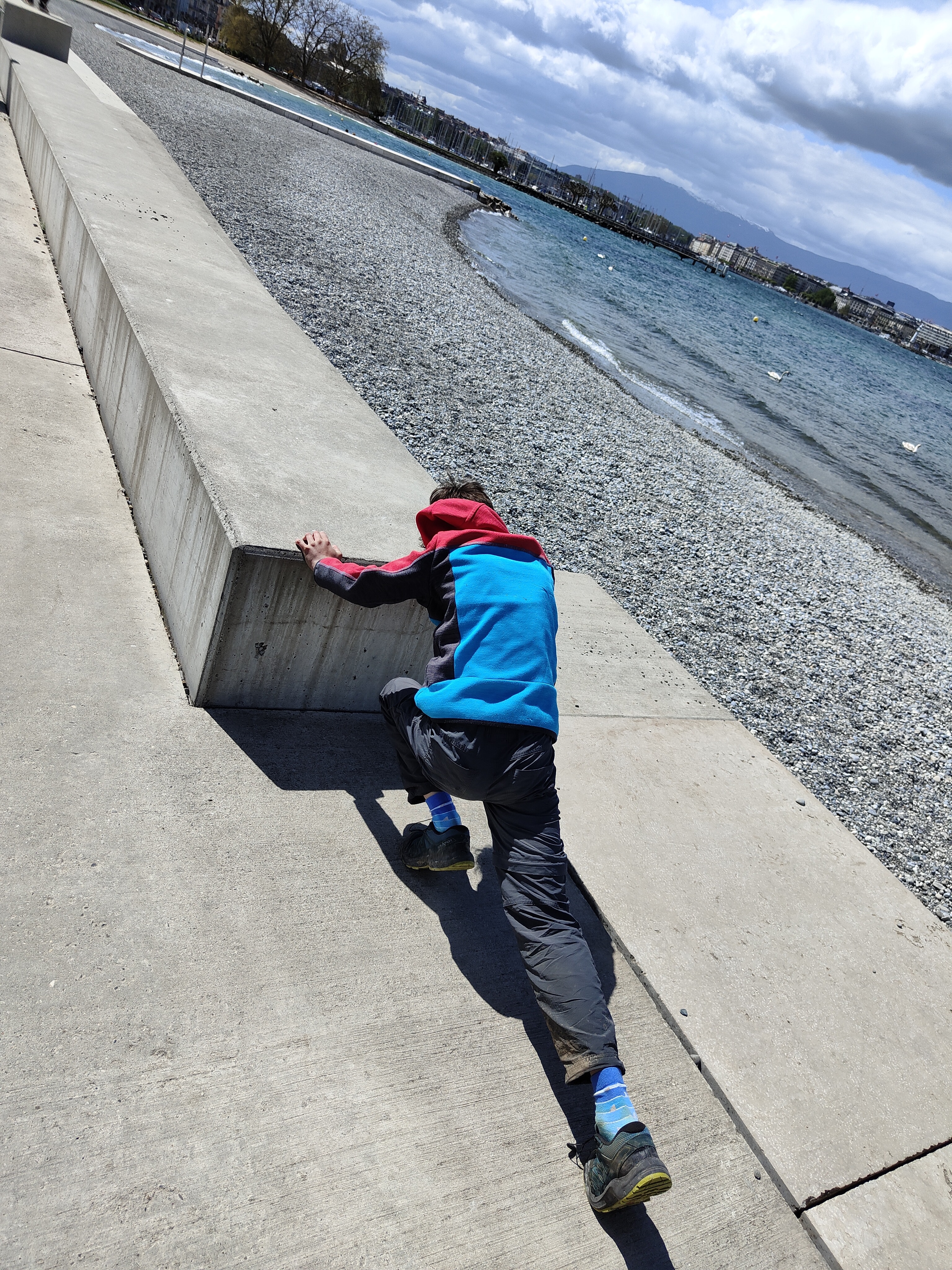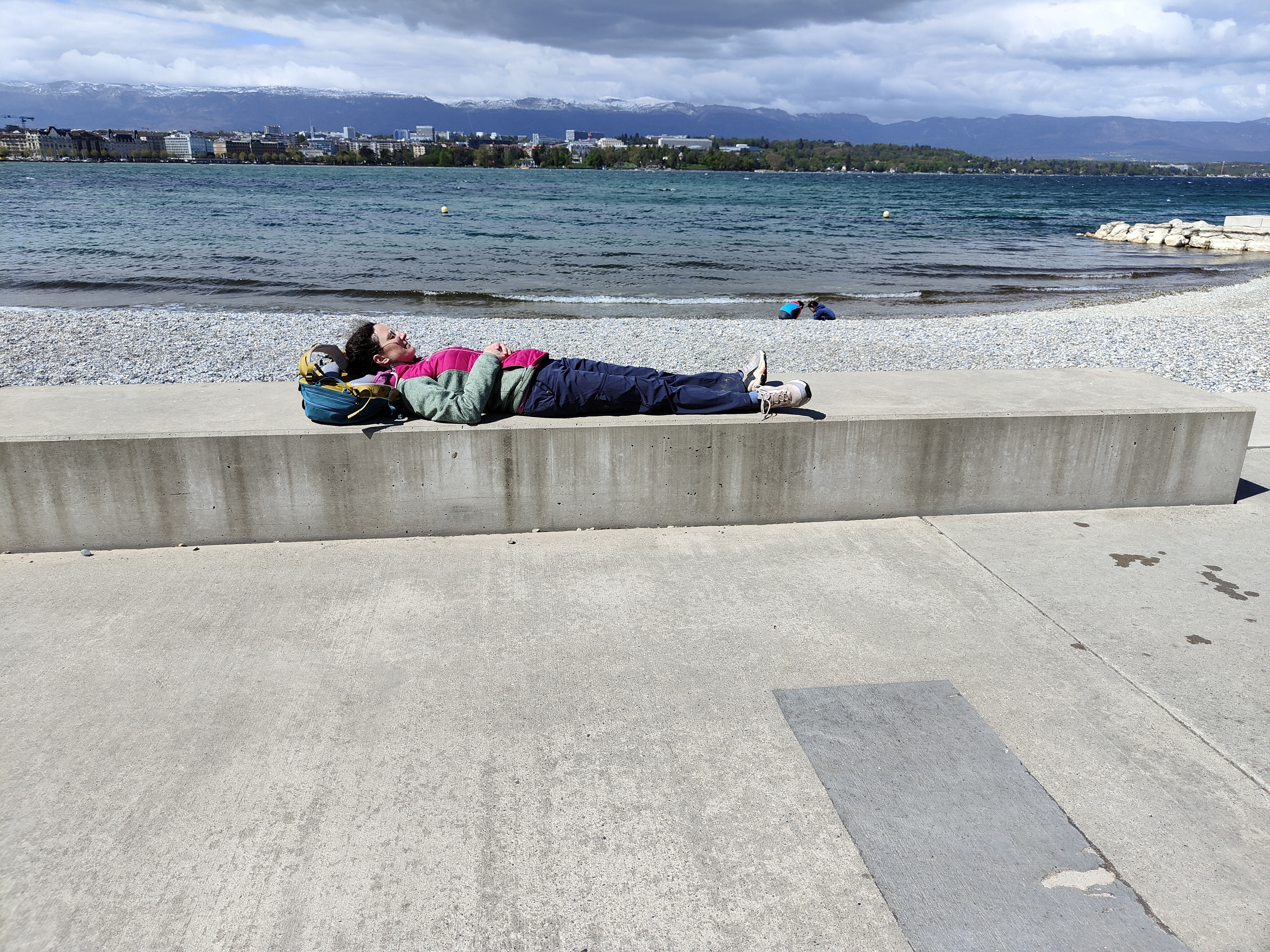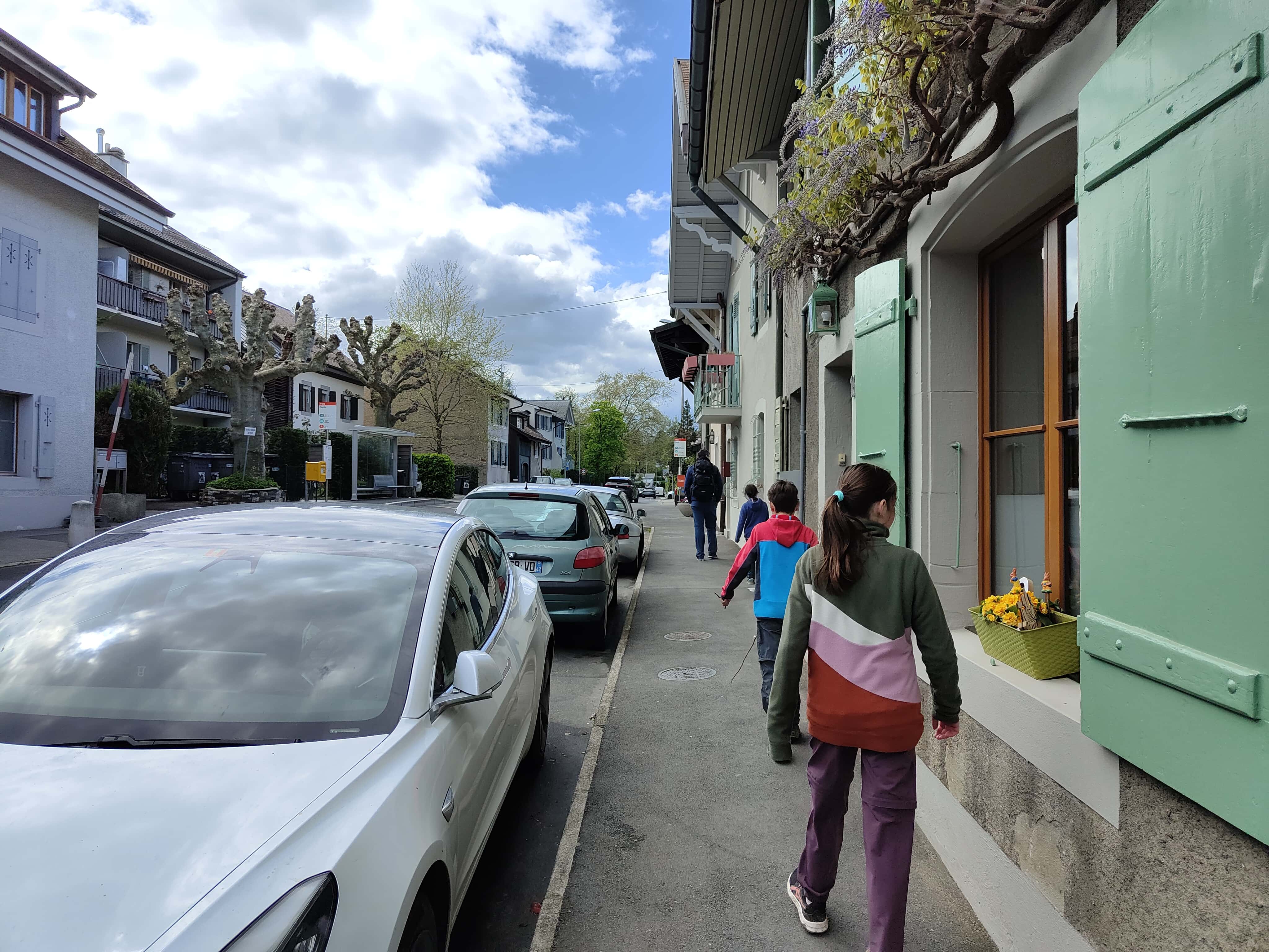 Und dann war es soweit: die letzte Etappe stand uns bevor. Das Wetter in unserer Ferienwoche meinte es wirklich gut mit uns. Kalt, aber trocken war es heute. Die heutige Etappe war eigentlich ein langer Spaziergang. Keine Höhendifferenzen mehr, die überschritten werden mussten. Das Restaurant Cheval Blanc in Carre d’Arval gibt es noch immer – mit stattlichen Preisen! Auch können wir die exakt grandlinig angeordneten Reben bestätigen. Wir schritten dem Genfersee in zügigem Tempo entgegen und der Moment, als dieser in unser Blickfeld kam, ist unbeschreiblich. Die letzten Kilometer spazierten wir in Schlendertempo dem Quai entlang und genossen den Blick auf die immer näher kommende Stadt Genève. Wir beschlossen unsere Schweiz-Durchquerung auf der Pont du Mont-Blanc. Was für ein wunderschöner, würdiger Schlusspunkt.