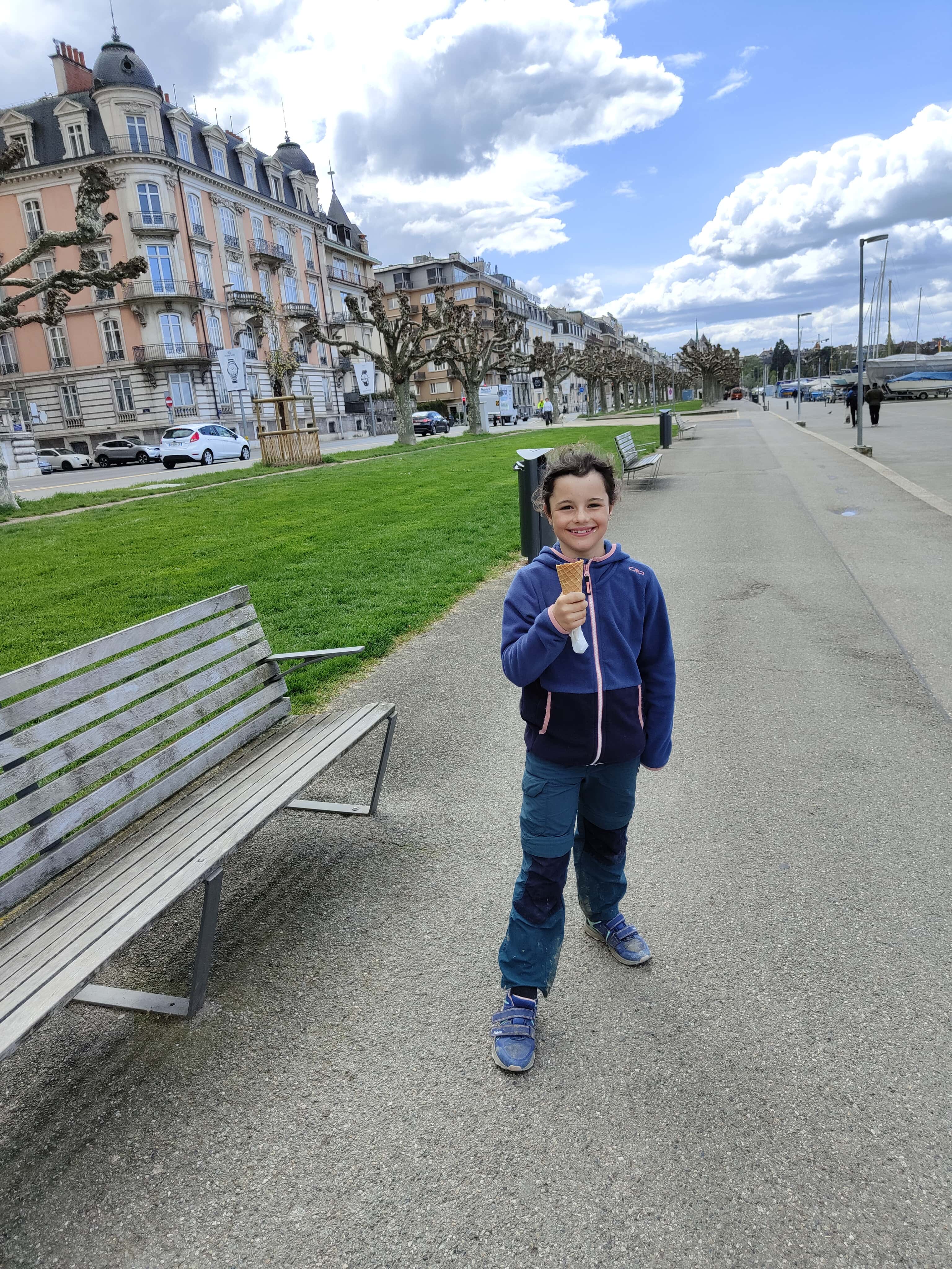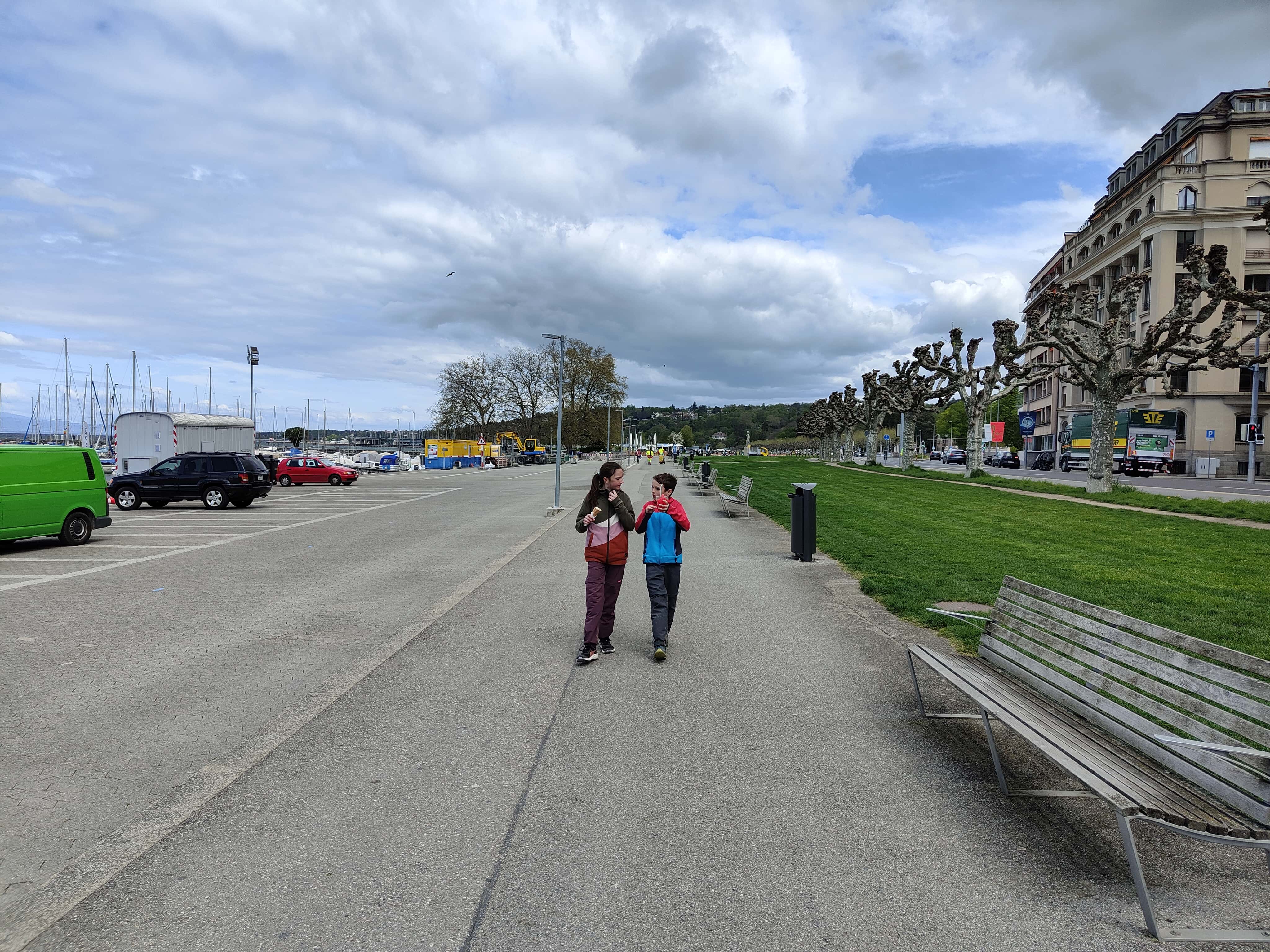 Nach dem Wetterumschwung tags zuvor, war es jetzt kalt. 4°C zeigte das Thermometer am Morgen bei Marschbeginn an. Es begleitete uns ein frischer Ostwind, der in Genf richtig stark und kalt blies. Wir blieben aber trocken und konnten den Einmarsch in Genf entlang des Quais geniessen!
